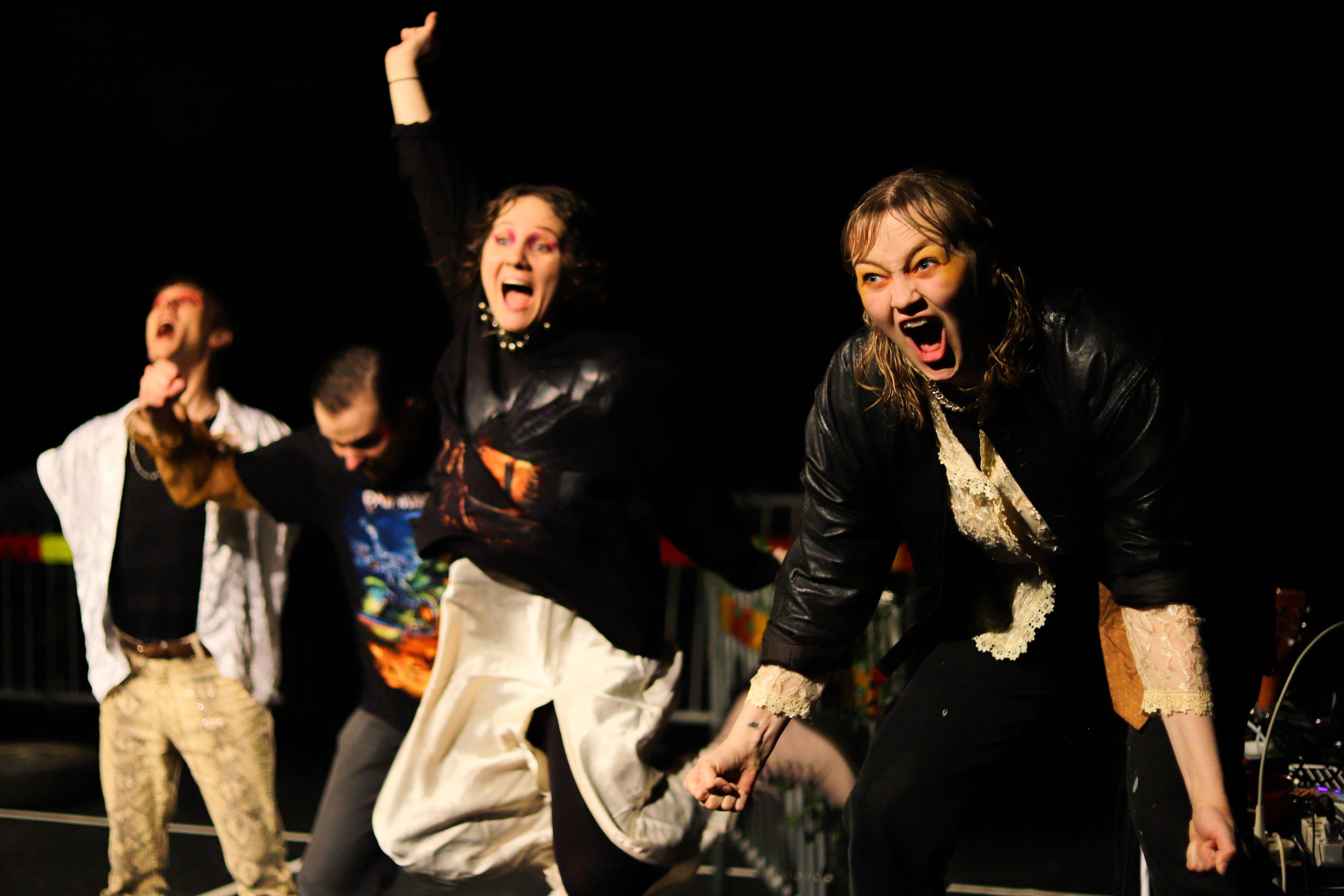 Skådespelarna Hanna Ingman, Peter Hjelm, Alicia Jardine (som också är musiker) och Osborne Petersson gör sig själva, ett slags reflekterande över var och ens egen resa, för att lika snabbt växla över till olika karaktärer.