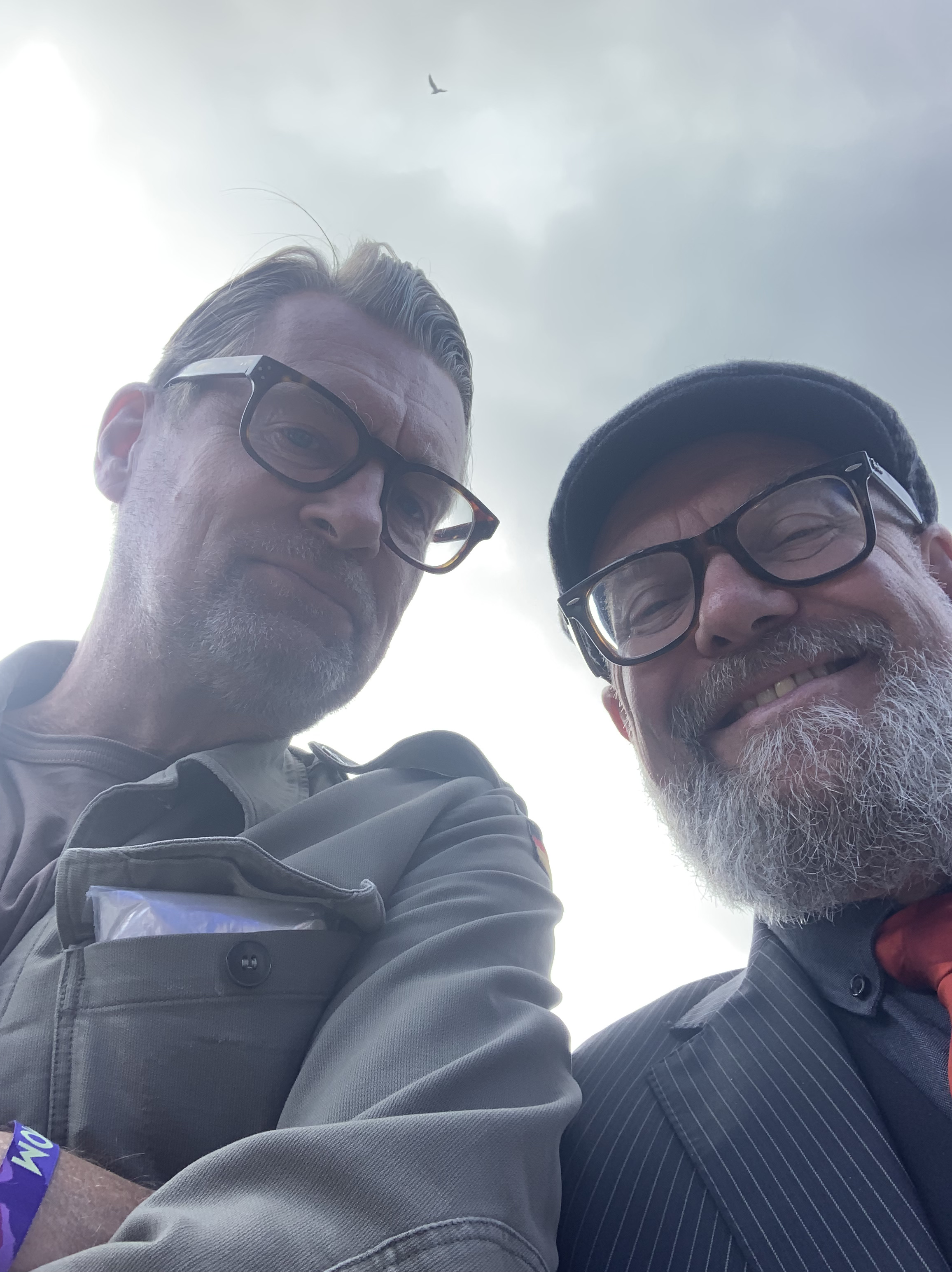 Way out West-vimmel, fredag, från vänster högst upp. Konstnären Ulf Kihlander, vän sedan 80-talet. P-O Ström, musikkonnässör av rang, före detta manager för Kai Martin & Stick!. Ser och hör mer musik än någon jag känner. Min hustru och förtrogna. Musikern – och konstnären – Love Antell, göteborgare sedan några år, med min kära kollega Lina Isaksson från tiden på GöteborgDirekt. Kreatören, musikern, formgivaren, snobben Joakim Thedin, som jag hade bandet Paria med några år i mitten av 80-talet. Foto: KAI MARTIN och ZEBA PEDERSEN LÖWEN-ÅBERG