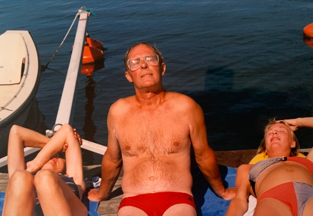 Vi levde ett gott liv med boende i Änggården och på Onsala nära Kungsbackafjorden. Han tog med familjen ut på fjorden i sin snipa, först Kalvön med sin sandstrand, men senare Yttre och Inre Lönn med magiska klippor. I slutet av 60-talet tog han och mamma med oss på skidresor till Alperna tillsammans med mina gudföräldrar och deras barn. Min gudmor och mamma var vänner sedan tidig barndom och mina föräldrar och gudföräldrarna älskade att umgås med varandra.