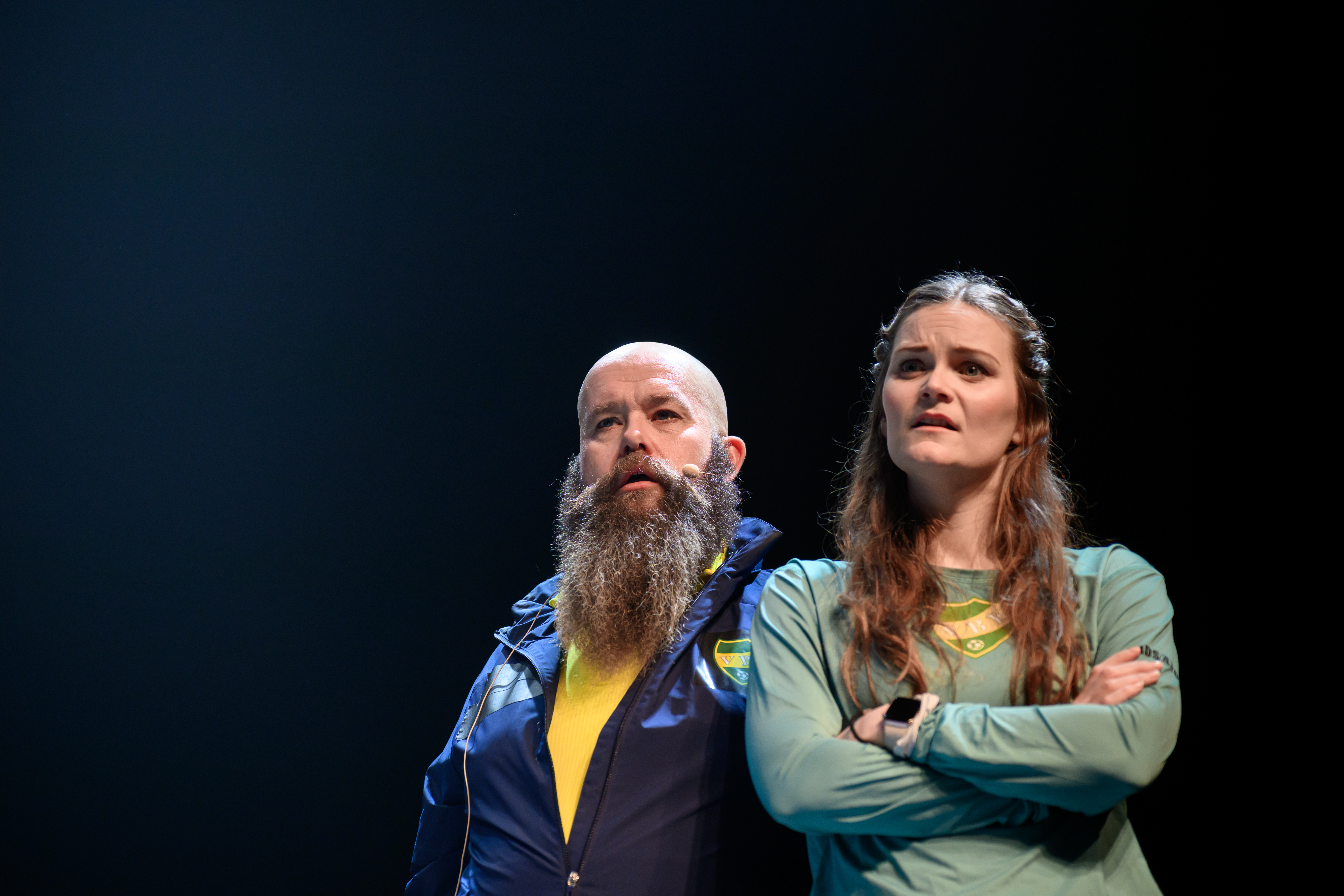 Det är förstås djärv att ha Lotta Schelin, som fixstjärna till den här nyskrivna musikal. Och, ja, det är modigt av henne, denna svenska fotbollslegendar, att utmana sig själv med en huvudroll. Men hon överraskade på publiken och – kanske – sig själv i ”Masked singer” 2021. Hon kan inte bara spela boll, hon är också en alldeles utmärkt sångare. Men att gå från scenframträdande bakom en mask till att stå i fotbollskläder på en scen… håller det? Absolut. Hon går en fin balansgång mellan sina repliker och de solosånger hon har på ett utmärkt vis.