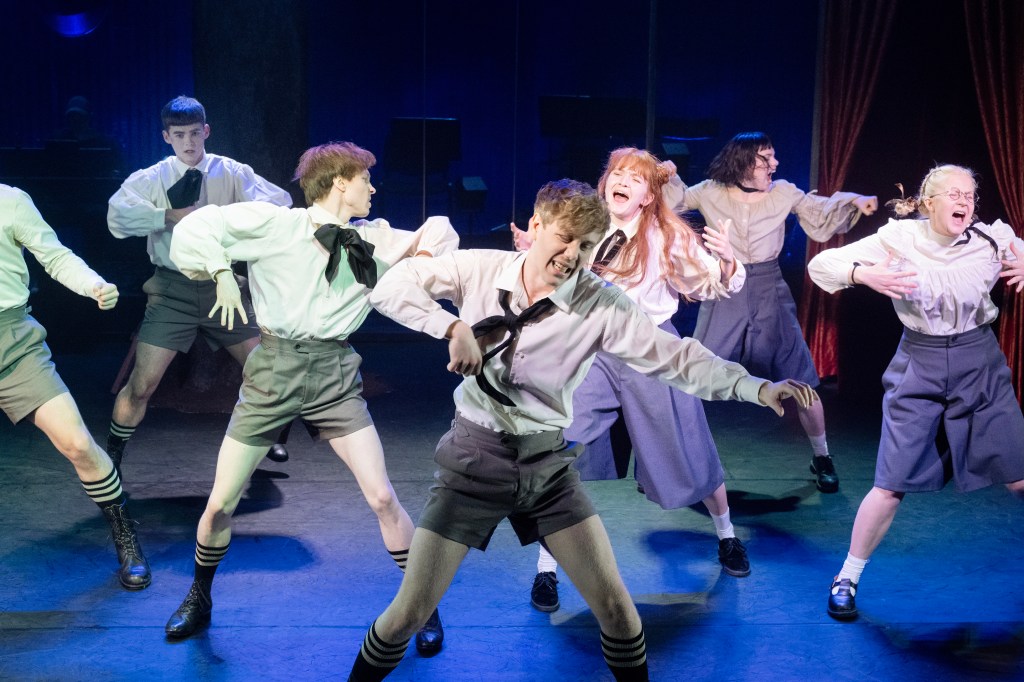 Musikalstudenterna gör en imponerande insats med fenomenala ensemblescener. Här ska agerande paras med sång och med koreografi – den sistnämnda excellent skapad av Mike Gamble. Fortfarande är många inte färdiga med sina röster, har inte hittat tonen och självsäkerheten. Ibland är skådespeleriet mer självklart än sjungandet. Emellanåt precis tvärt om. Men det finns några, som alltid, som sticker ut. Som Alva Palm, som gör sin Wendla osäker, smärtsam och lustfylld, som tonårstiden bjuder. Karin Gjørv Røraas har skapat en svart sårig Ilse, hon som sexuellt utnyttjats och av självförakt söker sig djupare och djupare ner. Även Nora Aurdal har smärtsam karisma med sin Martha. De har alla starka röster, som berör. Och jag skulle gärna höra mer av Bobbi Lindahl, som har en ljus, klar och känslig musikalröst som tjusar och är i fin samklang med Jesper Larsson.