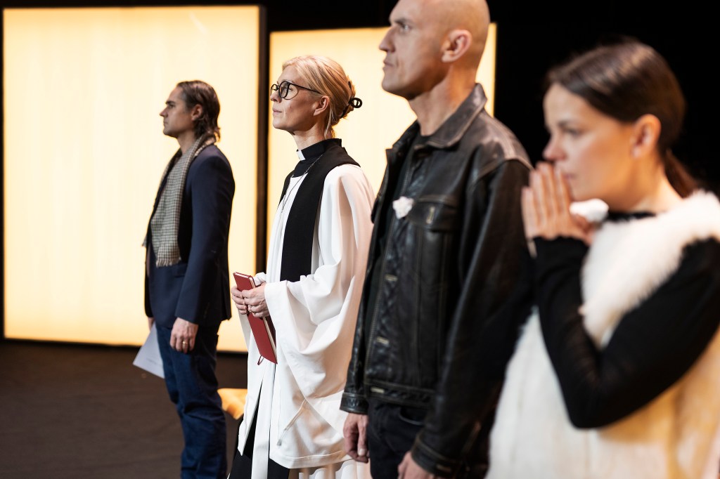 Ja, det är en tung text som de fyra skådespelarna bär fram. För det är en tungt drabbande story. Men i allt finns både humor och försoning, som en kontrast mot den apokalyps som Uppenbarelseboken flaggar för.