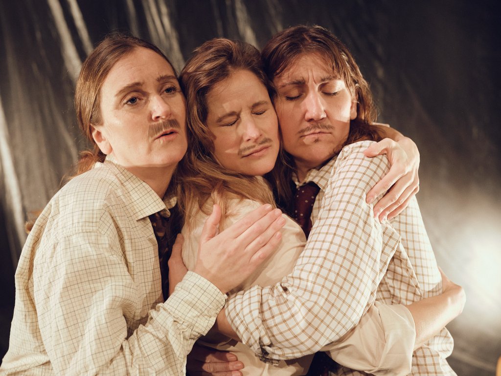 Ingen av Elin Bornell, Ida Hackzell och Hanna Holmqvist raljerar när de försiktigt förvandlas från kvinnor till män, från döttrar till farsor. Små ändringar i ansiktsuttryck, hållningen som förändras. hur huvudet hålls, händernas placering. Det är skickligt. Elin Bornell växlar till skånska, som man får förmoda att hennes pappa pratar. Det är detaljer, men aldrig oväsentliga.