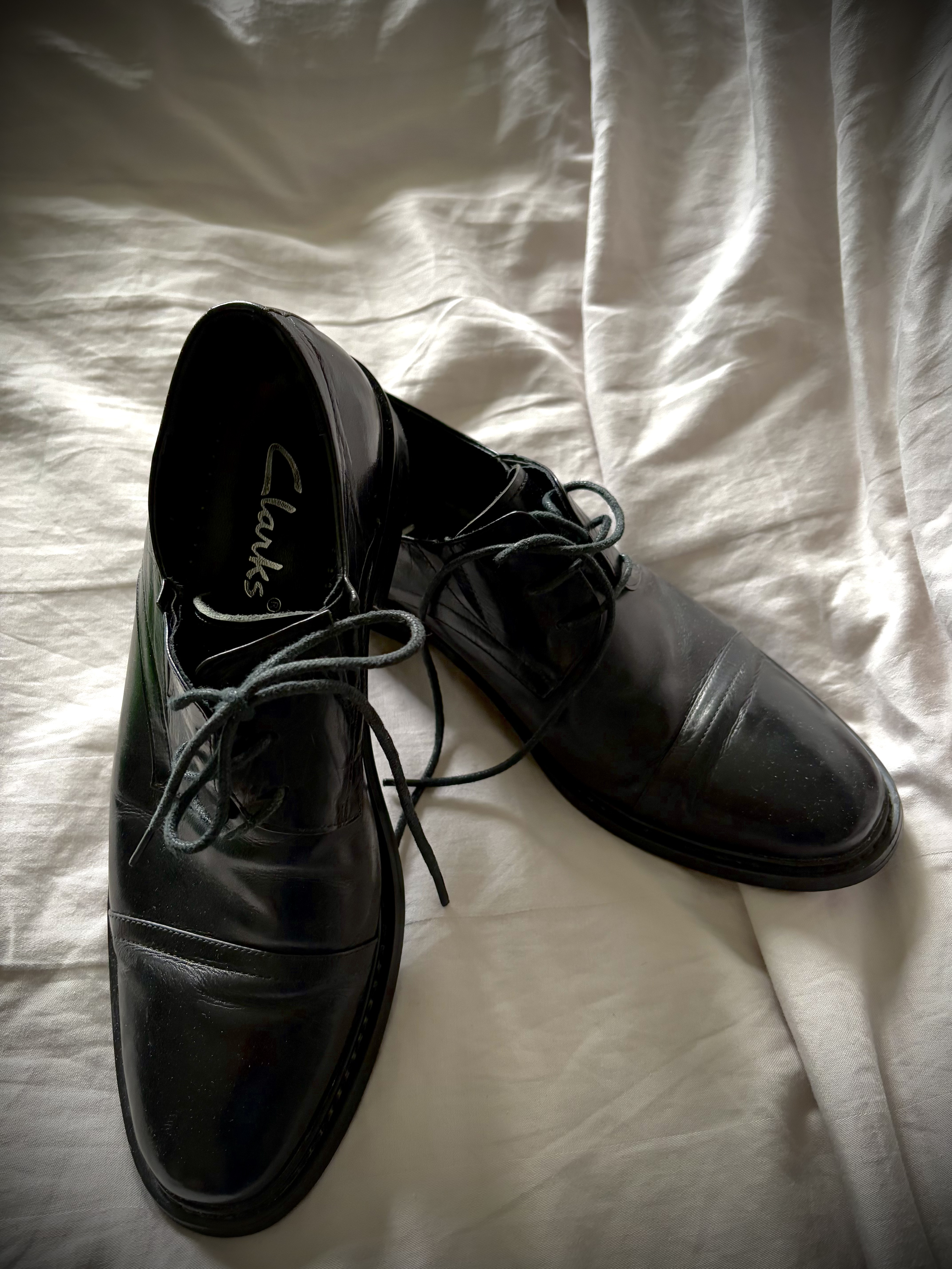 Köper kläder, eller snarare skor, i modest skala. Men ett par Clarks, som nya, gör ju inte ont för fötterna.
