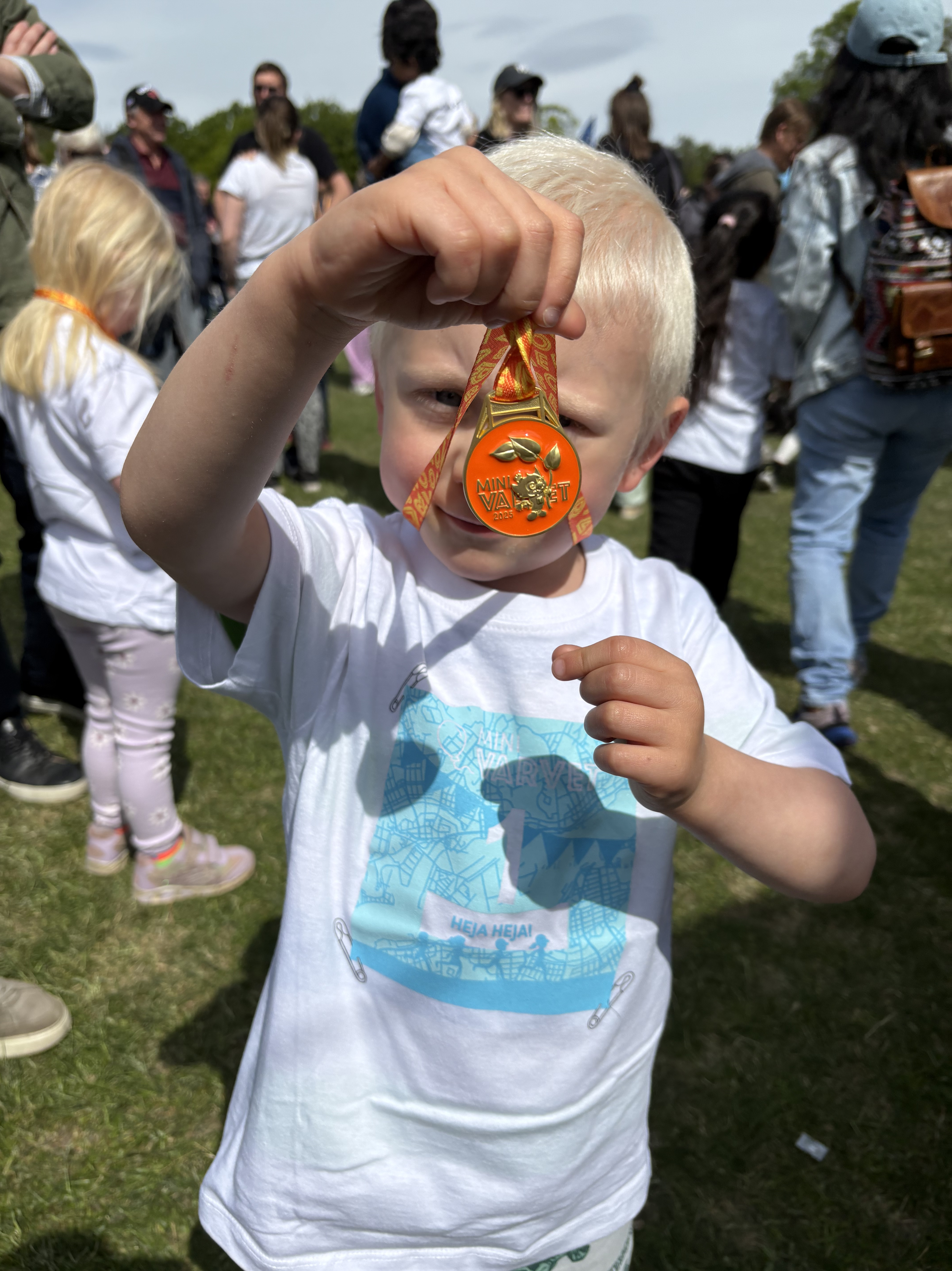 Z går Göteborgsvarvet och barnbarnet springer Lilla Göteborgsvarvet med medalj som pris och bevis.