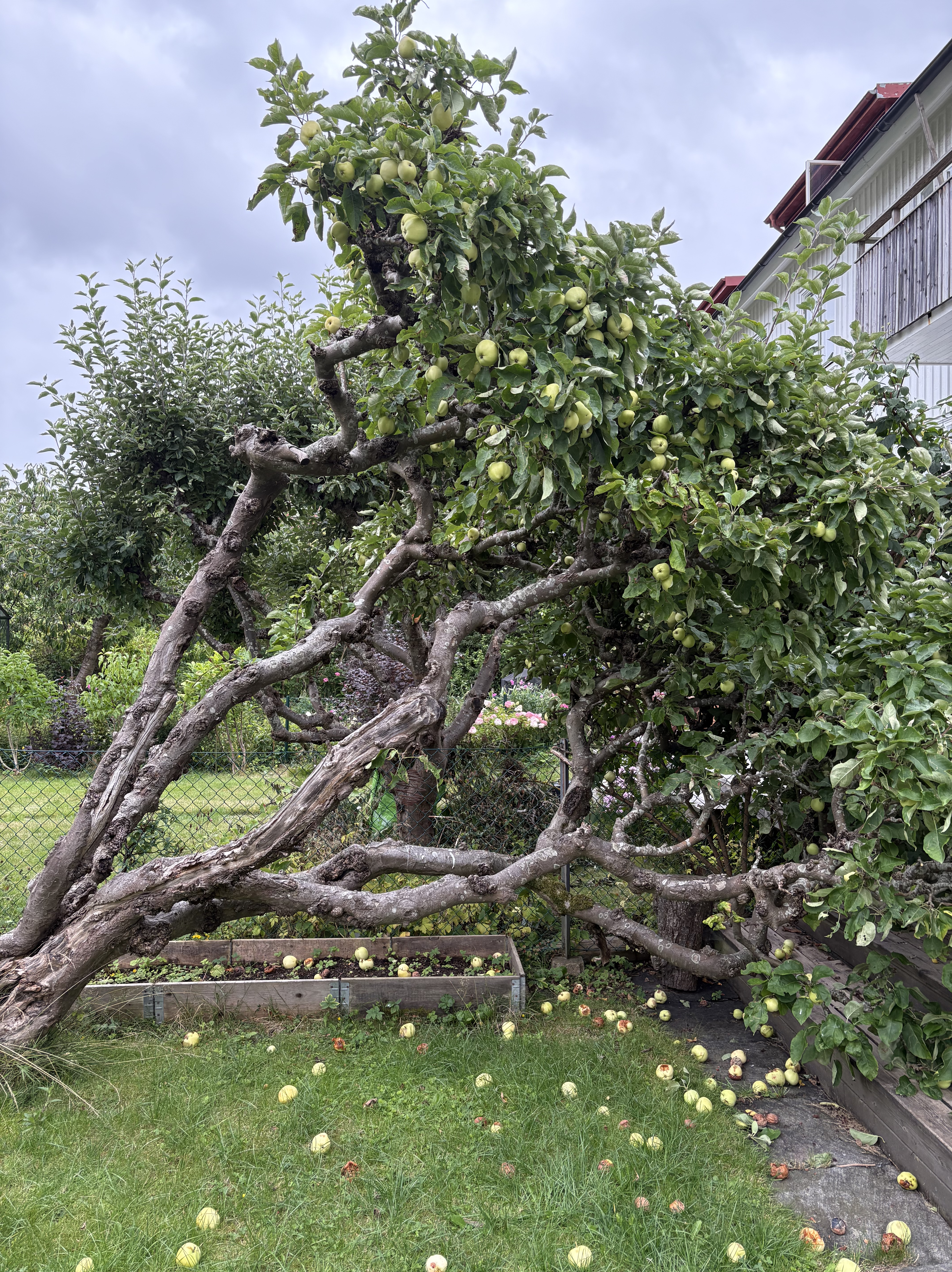 Våra transparant blanche-träd har gett rikligt med äpplen, men det ena (av två) har gett vika vid en storm. Mycket äppelmos blir det. Och dito must. Z och jag kommer iväg på ispremiären för Frölunda med match mot HV i Frölundaborg. Längtar efter hockeyn. Får trösta mig med rehab. Vi njuter av sommaren, badar och har det härligt. Samtidigt som Z börjar jobba är det fest hos min mæstro Mattias Bylund med hustru Helena Stjernström i Jonstorp. Det är en varm, kvav dag, men det blir en fantastisk tillställning. Upp för frukost hos värdparet, men innan dess ett dopp i Skälderviken. Så hem via loppisar i Ängelholm och Laholm. J, på nedvägen blev det en avstickare till en i Varberg. Varför ha bråttom och jag skulle ändå tanka…