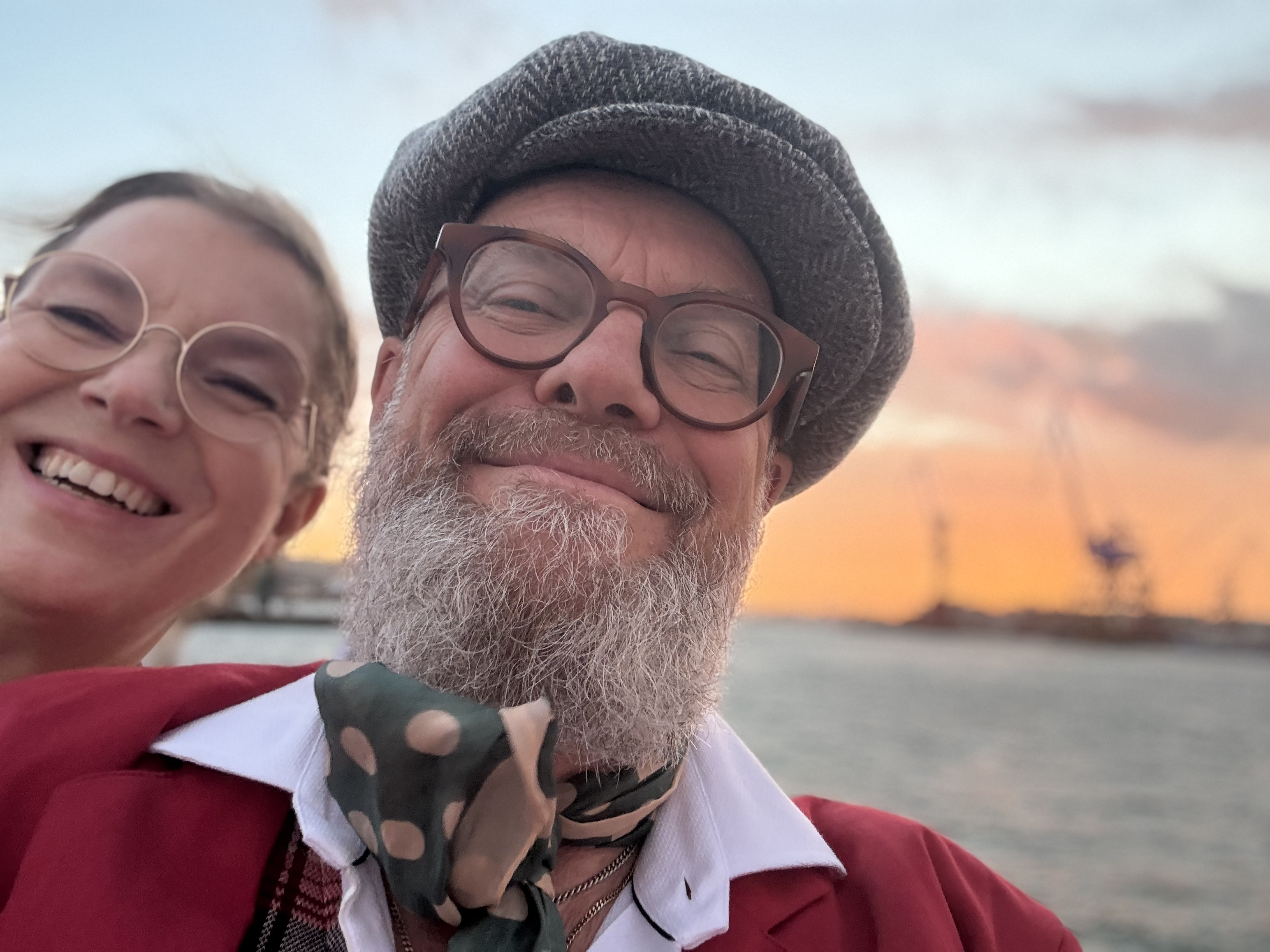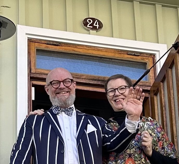 22 mars firar hustrun och jag kopparbröllop. Det är något alldeles speciellt i Danmark, varifrån hon ju kommer, så det ska bli något extra. Det handlar alltså om halva vägen till silverbröllop – 25 år – och eftersom vi gifte oss 22 september 2012 blir 22 mars 12 och ett halvt år. Det går ju inte att göra allt enligt den danska traditionen, men vi firar bland annat med att bjuda familjen på lunch i Waterfronts matsal, hotellet där vi hade vår bröllopsfest. Men först en överraskning. Hustrun har berättat att en blåsorkester brukade komma och spela för det jubilerande paret på morgonen. Så det fick jag ju fixa. Vi fantastiska Mia Samuelsson från Kur Olssons Damorkester och Stella blev det en surprise till frukosten som hette duga. Hela gatan stannade av denna soliga, men köldslagna marsmorgon. Så vackert.