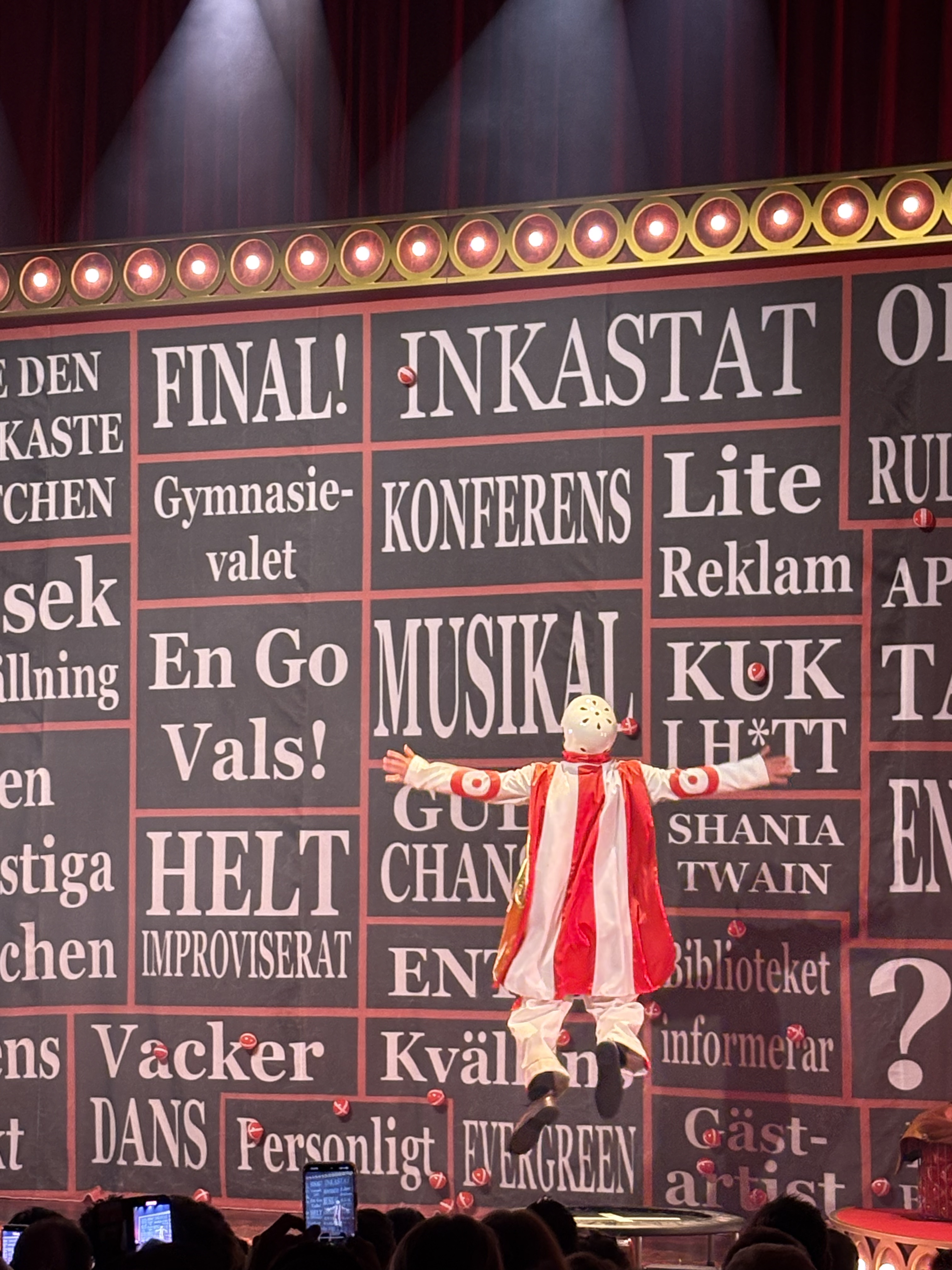 Det blir fler föreställningar. Januari är ju späckat med revyer och däremellan ska teatrarna sätta upp sitt, Kajskjul 8 har premiär på sin storsäljare (den här gången en repris på Stefan Andersson ”Flygblad över Berlin”). ”Paraden” i Varberg med bland andra Annika Andersson gör sin andra säsong, snäppet bättre än den utmärkta starten 2024. (Läs här.) Samma dag (!) hann jag med en utomhus-cup i Fritsla (läs här). Oerhört roligt. Oerhört jobbigt. Ingenting hade gått utan min förstående och uppmuntrande hustru, som lämnade mig tidigt och sedan hämtade mig. Jag hann svida om och galaklä mig för färden till Varberg.