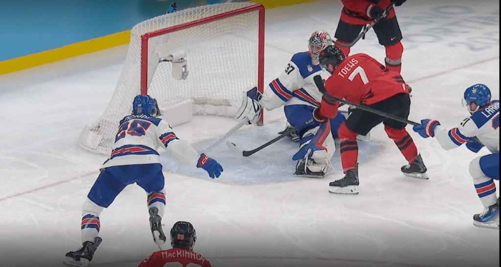 Visst. Kanadensarna kvitterar. Men båda målvakterna –St Louis Blues Jordan Binnington för Kanada och USA Hellebuyck – är strålande i sitt spel. Plus att båda lagen spelar självuppoffrande i försvaret. Det är en fröjd för ögat och det oavgjorda resultatet står sig ordinarie matchtid ut.