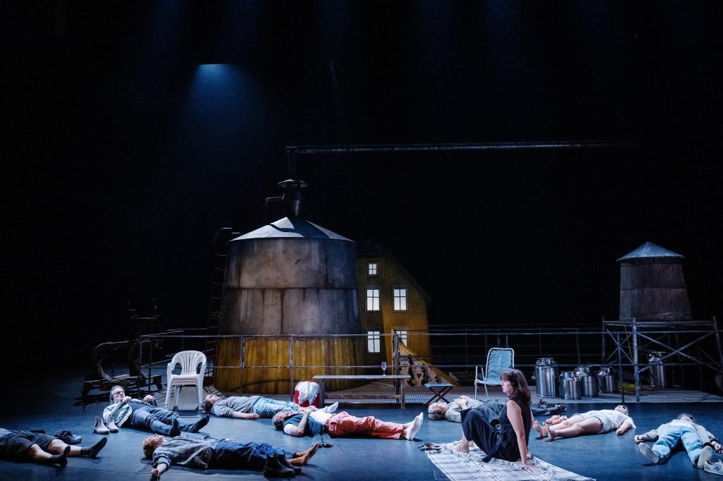 I Yana Ross uppdaterade version befinner vi oss i ett nu. Texten refererar till 2025, men scenografen Zane Pihlströms gård mer ekar från något farm i mellanvästern med silor som fallossymboler i det erotiska spelet.