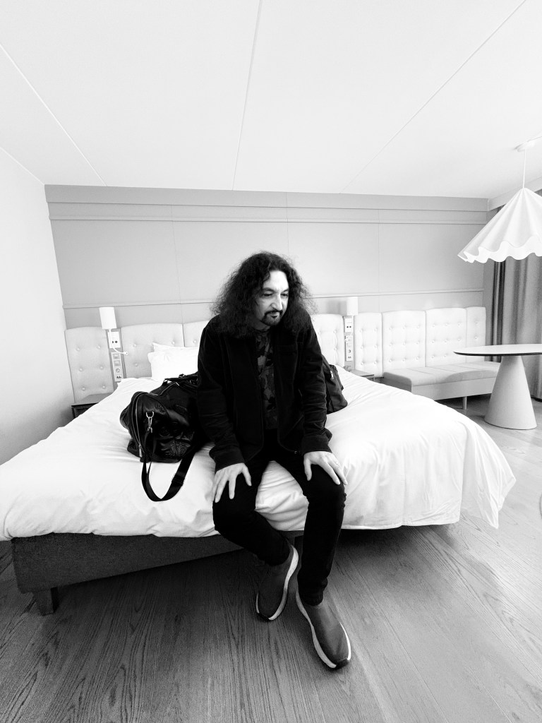 Jag ligger och scrollar igenom mobilen, tackar med ett hjärta för alla gratulationer som kommit och i en strid ström fortsätter att komma. Så kommer ordern. Vi ska iväg. Jag klär mig. Hämtar yllekostymen, en grårutig Boss, som jag köpte när jag ensam for till Göteborg efter att ha tagit farväl av Z:s far som avlidit på Herlev Hospital. Jag kom till Kungsbacka, kände mig mollstämd, åkte in på Hede outlet. Kom ut med ett par tjusiga, röda Clarksskor och denna Bosskostym. Ville köpa mig till tröst, det funkade väl så där, men stillade något. Till detta en Burburryskjorta (secondhandfynd), en vinröd slipover (italiensk lammull, secondhand), en randig Etonslips (secondhand), en Stetsonhatt (från Sop AB) samt på fötterna mina – av jack på Mölndal skomakeri och nyckel – nysulade, exklusiva, italienska värstingskor, Moreschi (secondhand, men helt i nyskick, förutom lätt slitage på sulor och klack). Jag var redo för dagen.