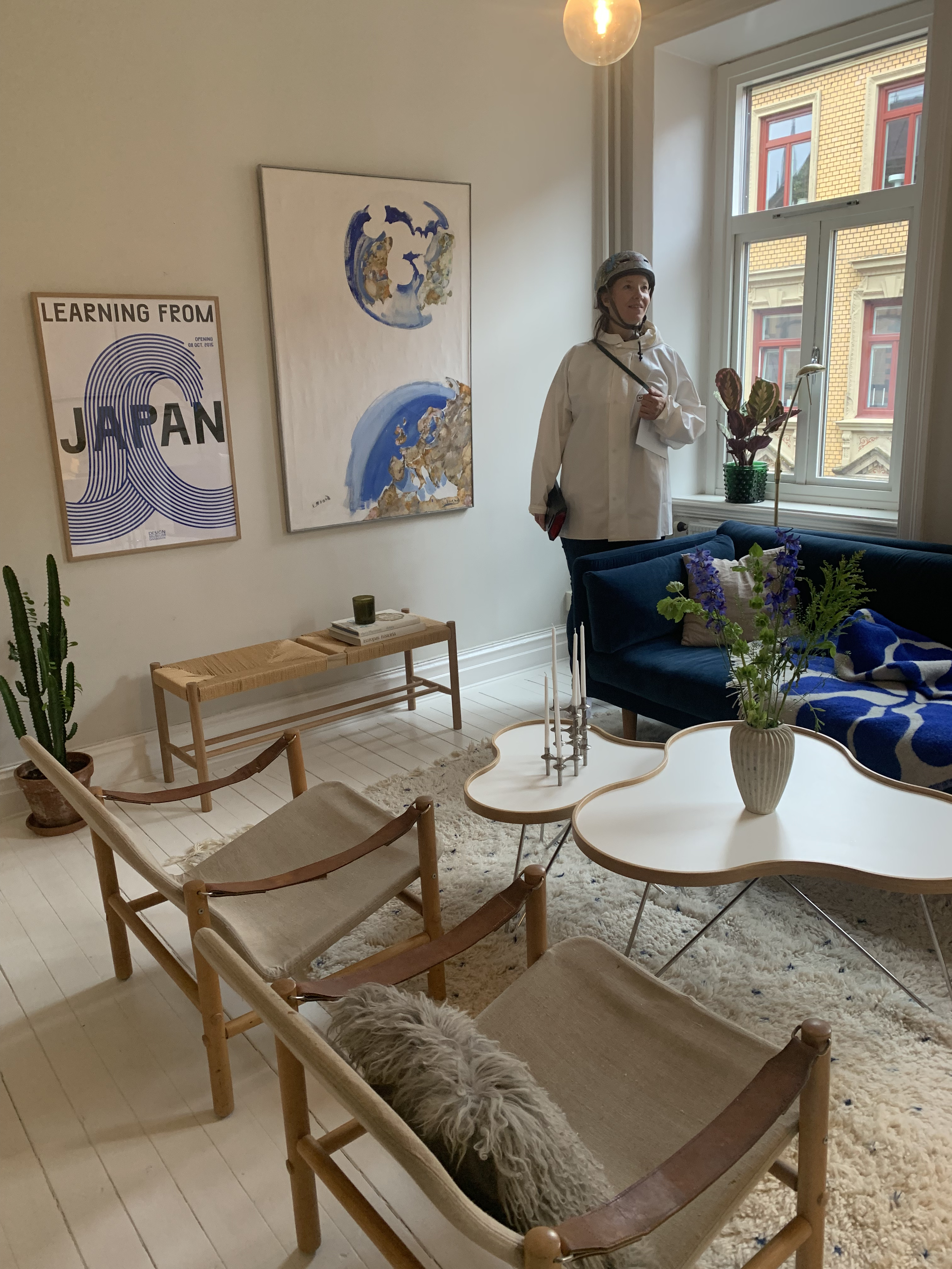 Vi hinner hem med våra kassar och får vila benen lite. Jag provar jackan en gång till och då märker Z att ett larm sitter kvar. Märkligt, för det tjöt inte då vi lämnade butiken. Nå, vi får försöka få tid att åka tillbaka till butiken för att få bort det.