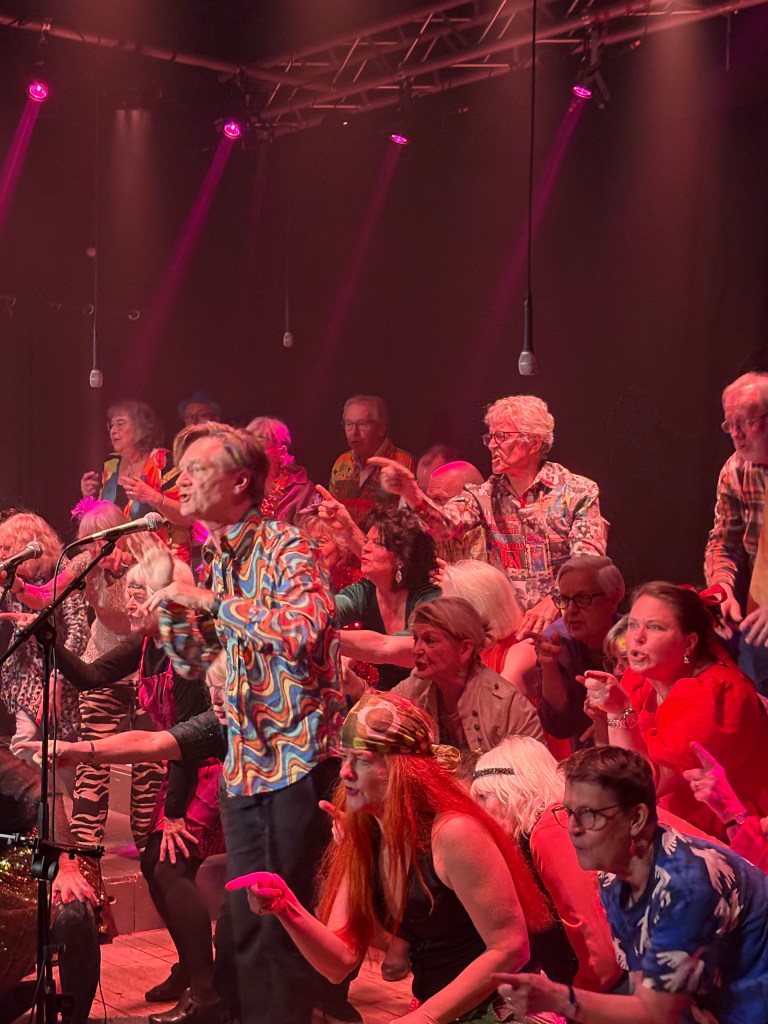 Martin Hamrén utmanar sin kör, där de flesta befinner sig i ålderskalan 50 år och uppåt (men vem som helst är välkommen), inte bara med stämmor. Här skapar hans snygga arrangemang och harmonier ett sätt att våga kasta sig ut och tillsammans med koreografin ta sångerna till högre höjder. Det är fantastiskt fint.
