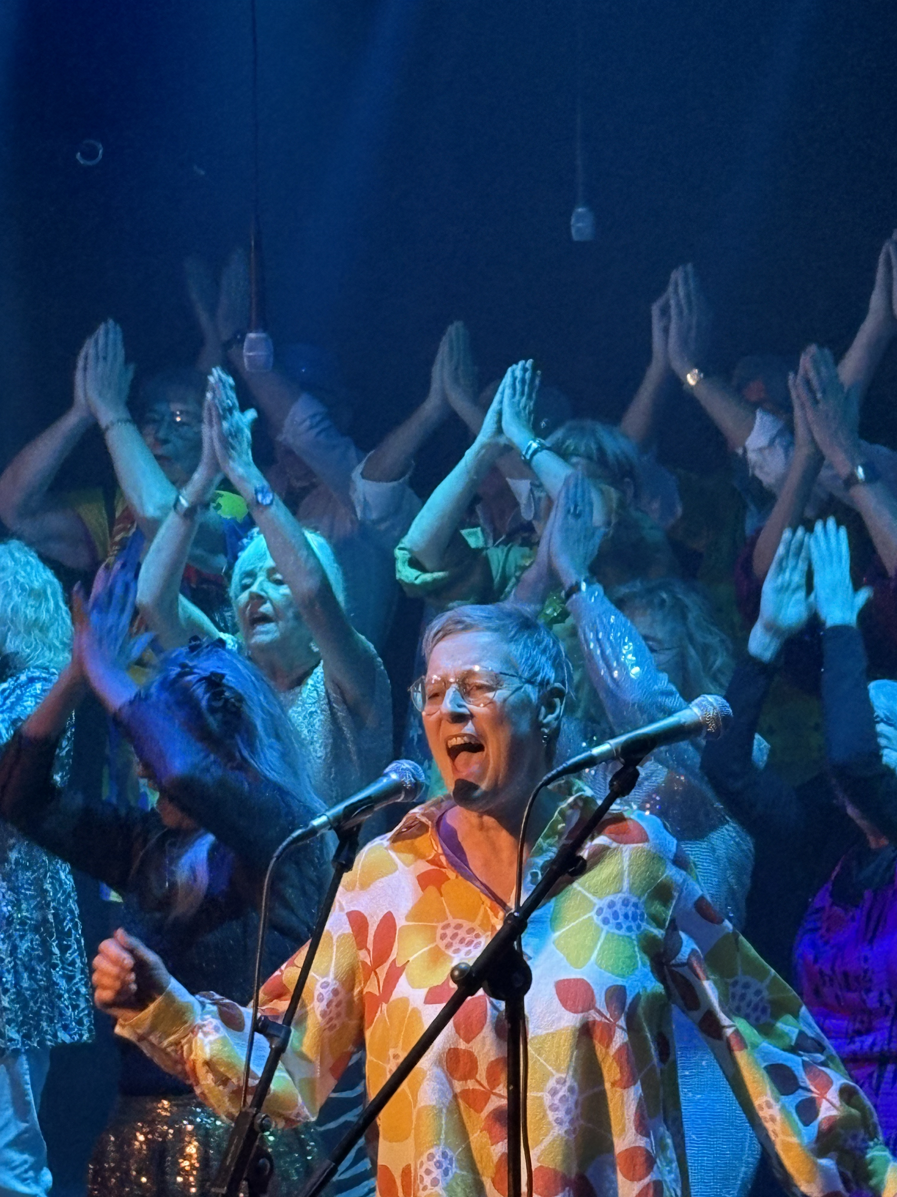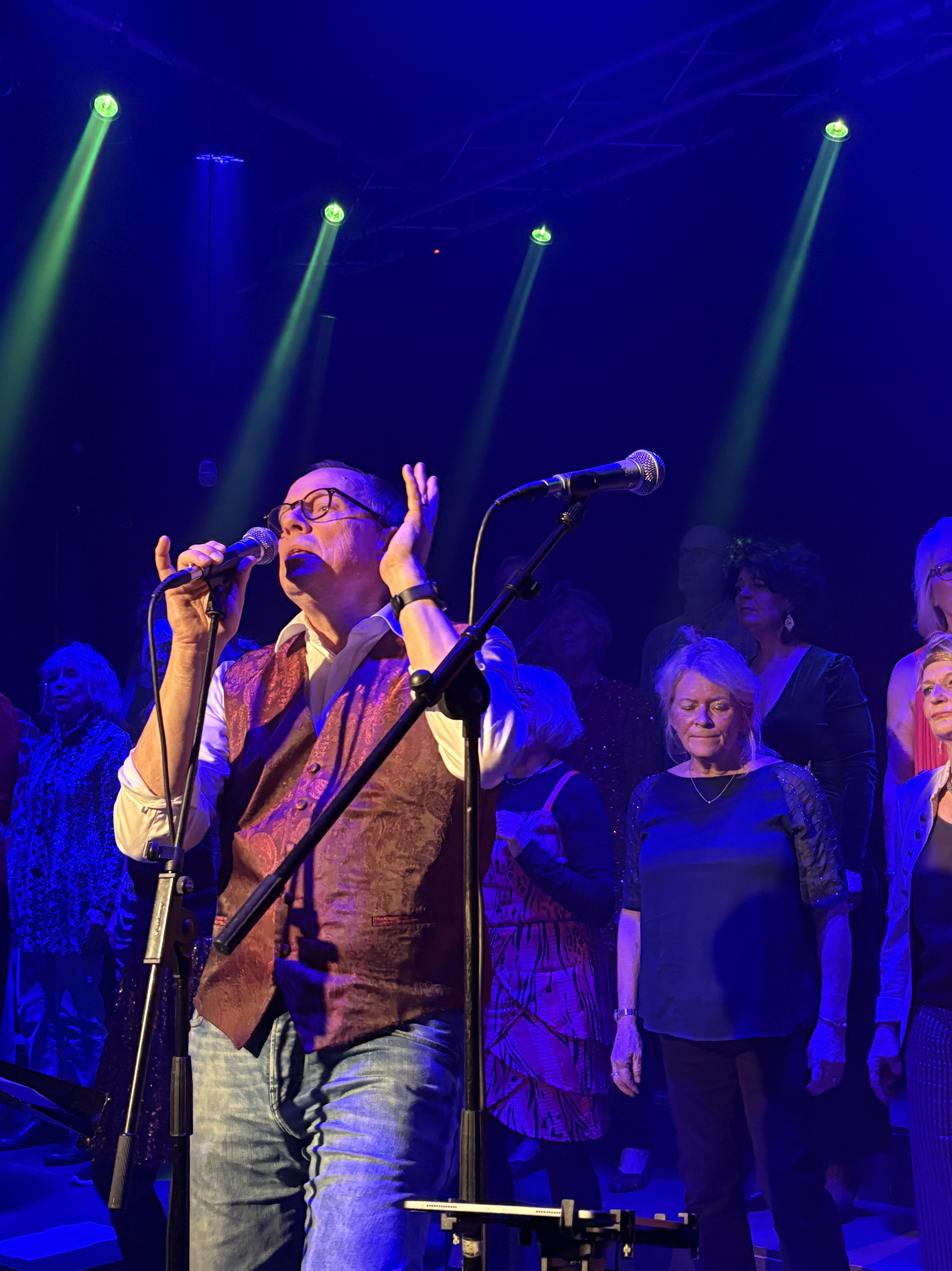 När jag så förenade med kören för att som solist få sjunga David Bowies ”Starman” och Beatles ”All you need is love” för först repetitioner och sedan konserter slog det mig: Vilken kraft! Jag omfamnades av kördeltagarna energi och sång. Det kändes inifrån och ut.