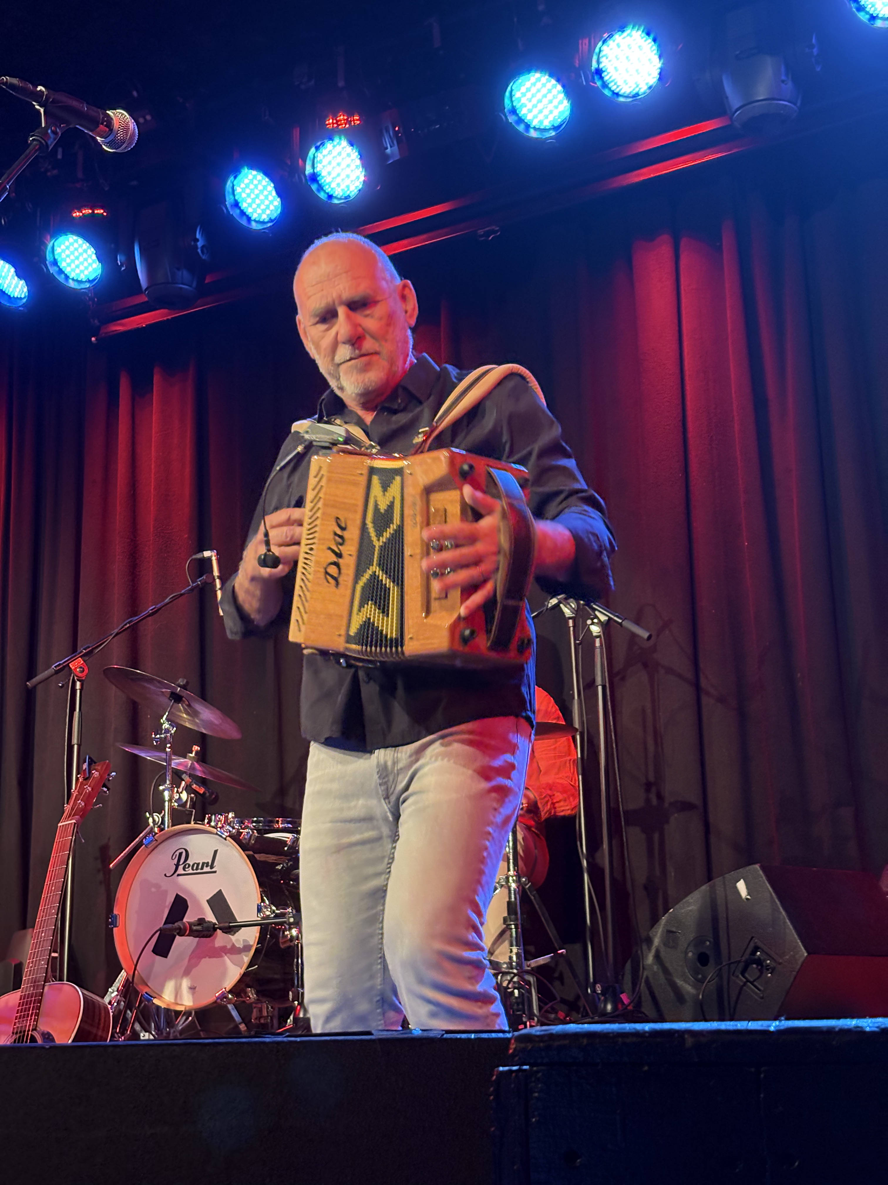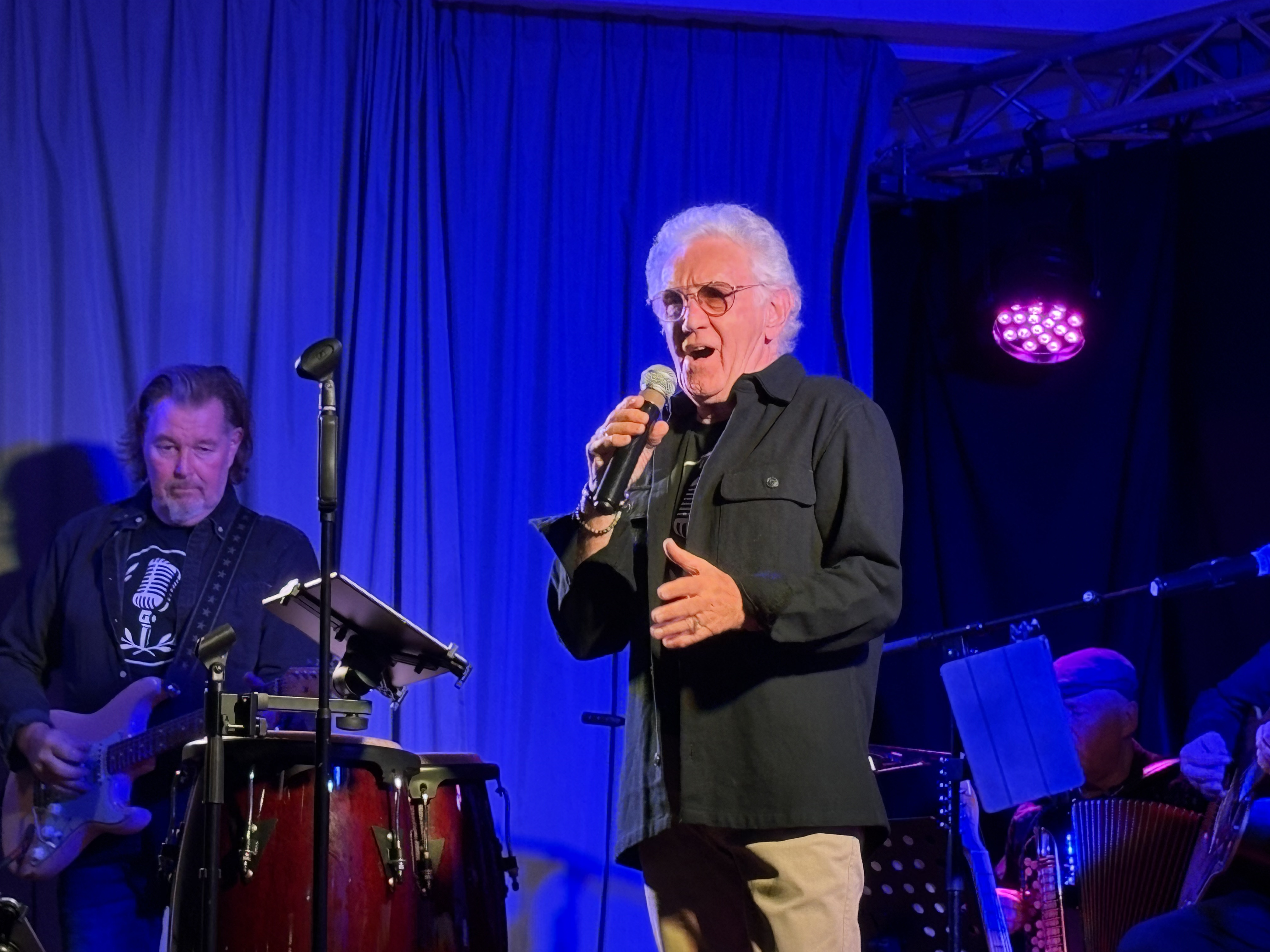 Det är ett test. Hur kan Kajskjul 8:s showscen fungera för en konsert av den här typen? En spelning som skulle satts på väsentligt intimare Slussen, Orust, hamnade här. Tack för det och tackar som frågar, scenen fungerar utmärkt för en konsert som den här.