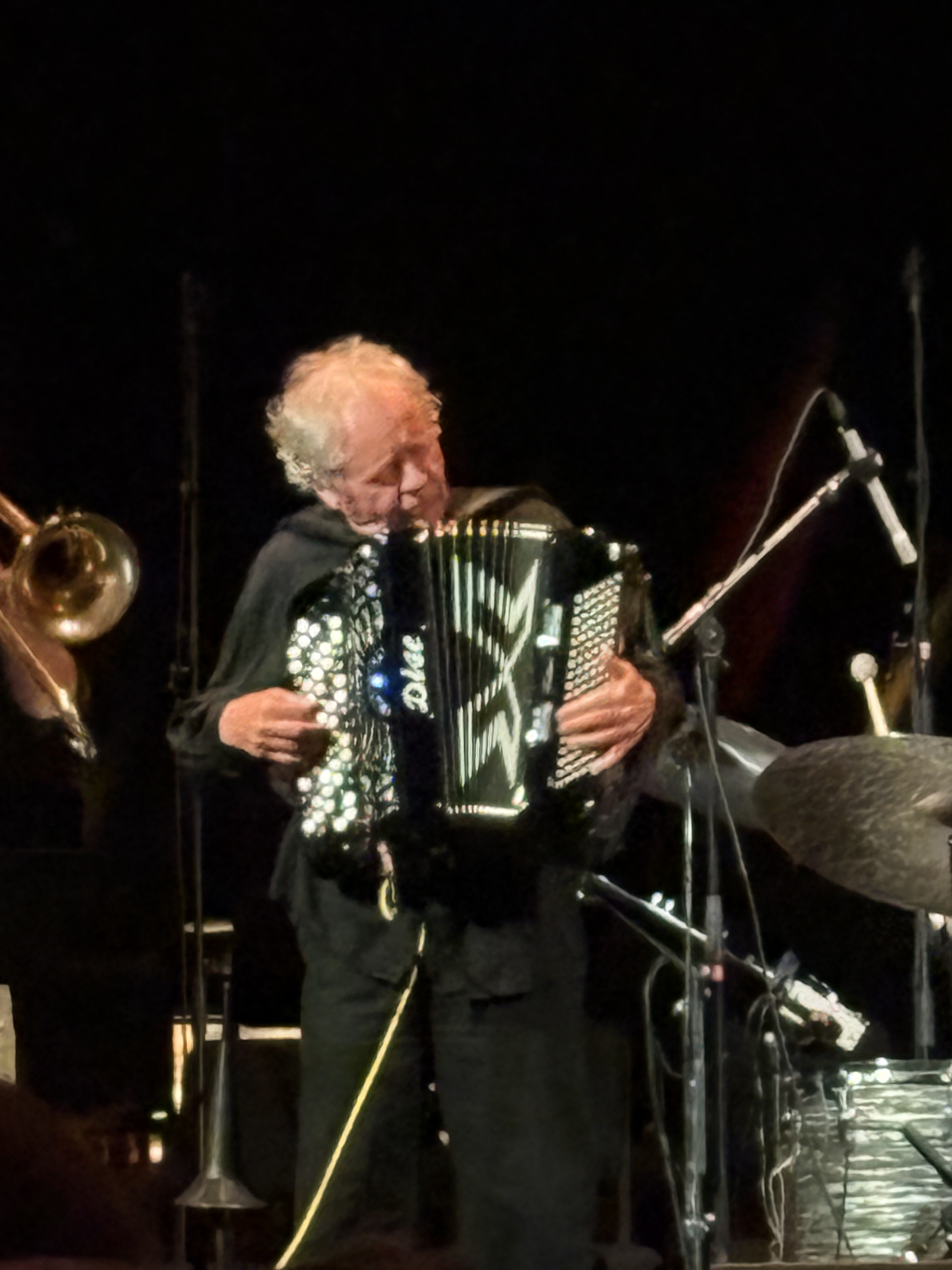 Han väver också in musik från sin egen solorepertoar. Fina ”Om du vågar”, som Peter Lundblad (1950–2015) skrivit till Bjarne Lundqvist, är som temat till en film. Den är utsökt orkestrerad, men visst hör jag ett stråkarrangemang i fantasin. Det blir även musik från karriären, som han fortfarande håller vid liv, med the Mule Skinner Band och samarbetet med Steve Eriksson.
