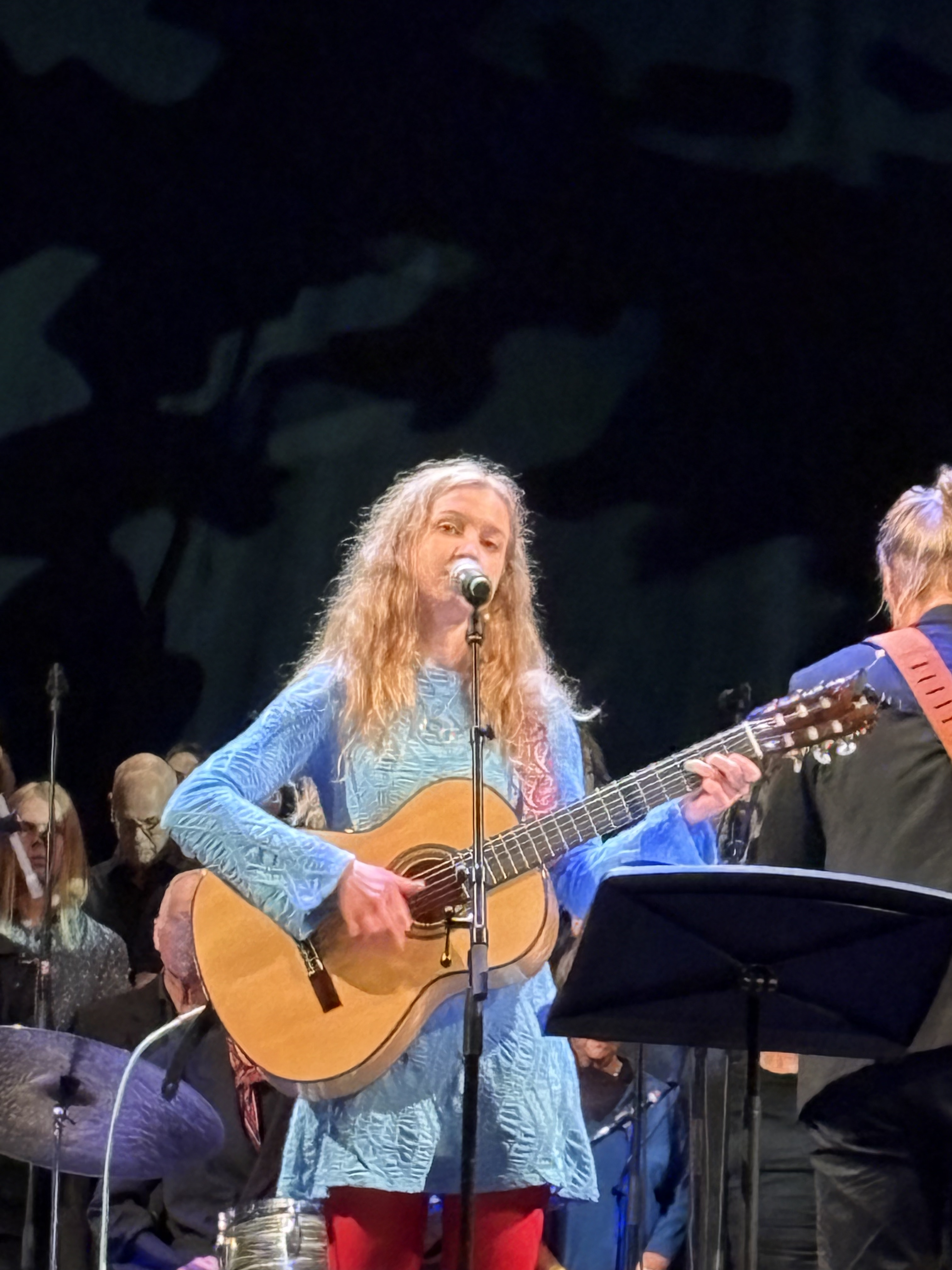 Hon har ju också, sedan just ”Lisa – kvinnan som jag”, utvecklat mellansnacket. Det är en konst i sig och hon är rolig, allvarlig och omfamnande. Kanske är det en utveckling av just hennes uttryck på sociala medier, där hon ju förutom att vara engagerad i exemeplevis folkmordet i Gaza också tillåter sig att vara privat. På scen blir det inga politiska pamfletter, inga slagord. Men ingen som känner kan undgå skärpan i det hon säger, som hon förenar med en inte så lite del med privata reflektioner om sitt eget liv.