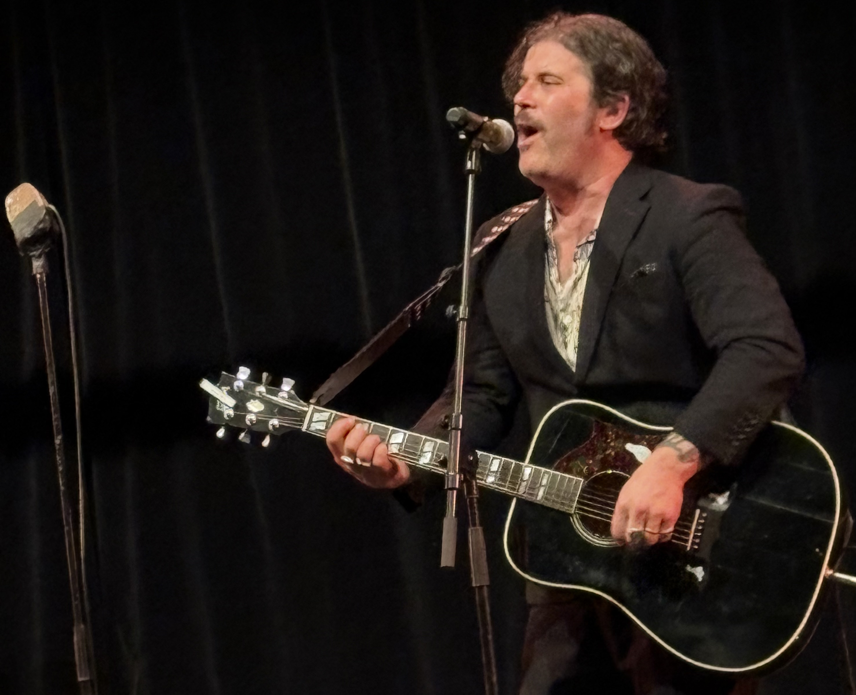 Han är åter ensam på scen. Ackompanjerad av sitt keyboard, munspel, akustiska gitarr, elgitarren och de tre – eller är det fyra – mikrofonerna, som bidrar till detta milda sjöslag på scen. På ett och ett halv år har britten Ed harcourt gästat Göteborg – och Sverige – tre gånger. Senast med band. Gången innan dess – april 2024 – på Jacy’z vid foajékonserten var det fullkomligt lysande med gästspel av Peter Jöback, bland andra. Då hade han dessutom spelat i Foggy Days, skivbutiken i Mölndal och delat sång med Peter Jöback på Draken Live under samma dag. (Läs om det här!)