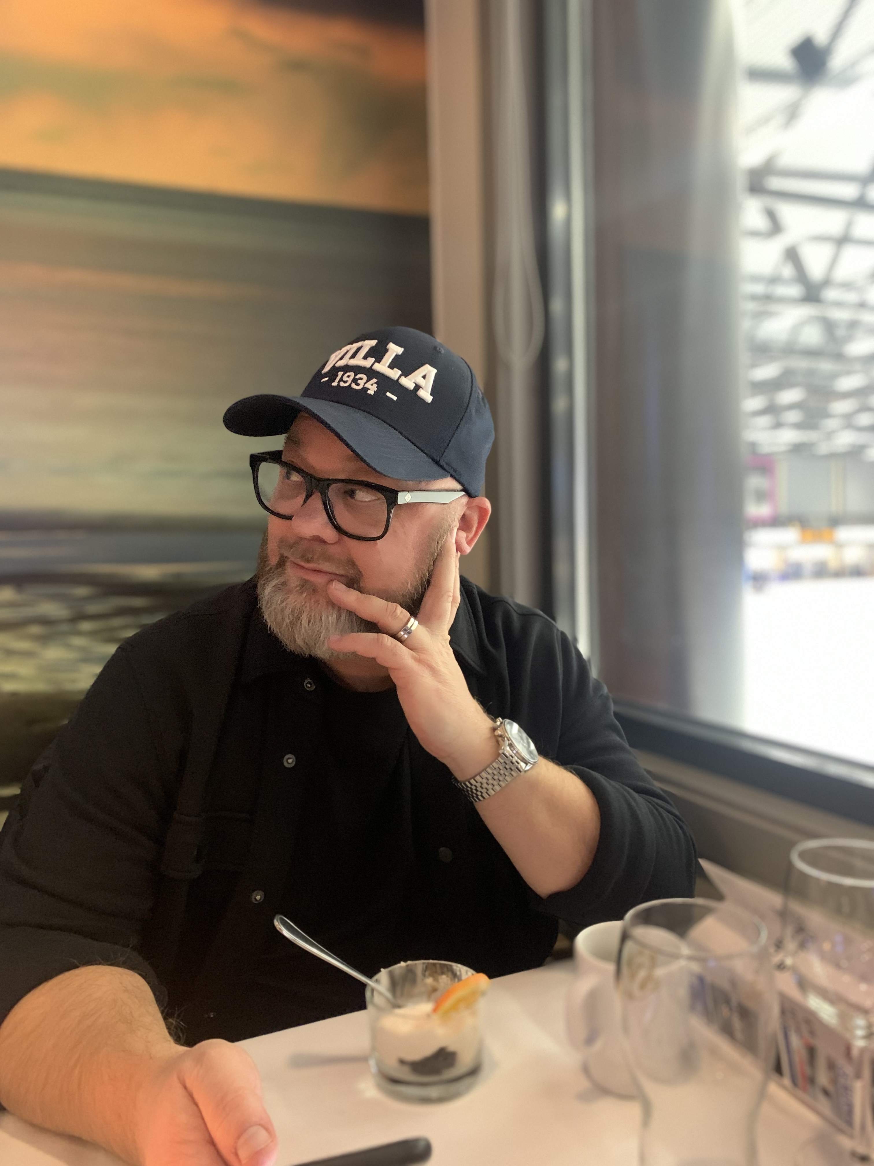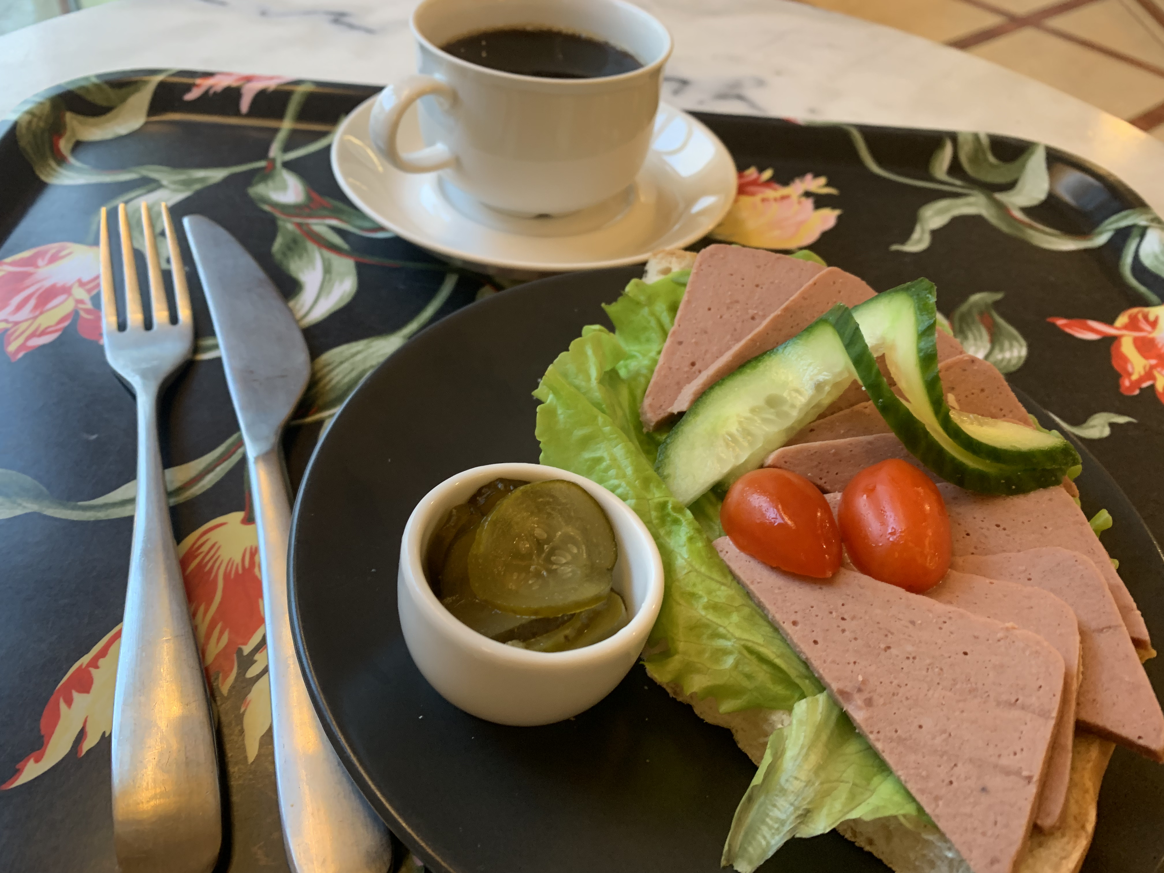 Checkar ut och mot Kastrup. Jag har fått övningar för mitt knä av fysioterapeuten och ett råd om att ha på mitt knäskydd – ett Baurefeind Genutrain som jag haft för att stärka vid en tidigare ledbandsskada. Ett brett gummiband är också nedpackat. Fortfarande ska jag ta det försiktigt med promenerande. Men säg det till flygplatserna. Vi går och går, checkar in bagage och går och går för att komma till säkerhetskontrollen och går och går för att komma till gaten. Innan dess går och går vi runt för att fördriva tid. Vi bestämmer oss för att äta för att inte helt hamna ur fas. Det blir den här gången i Kastrups Tivoli Food Hall, smørrebrød igen och en øl. Vi vänder oss till ett kafé runt hörnet för en kopp kaffe och möjligheten att äta upp de goda wienerbröden från igår. Just är står delar av Roxette, så det blir ett trevligt samtal innan take off. Z dokumenterar, förstås.