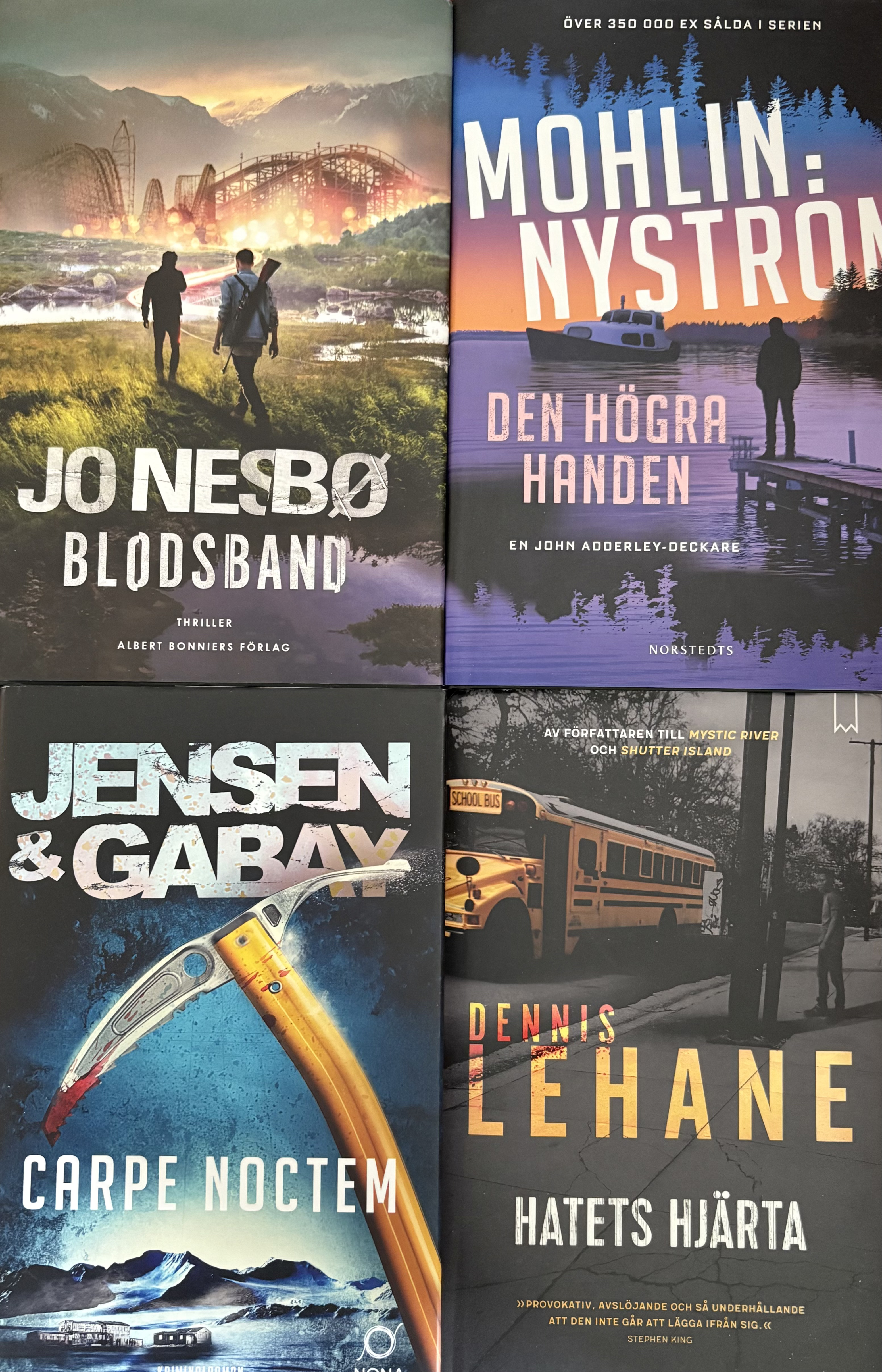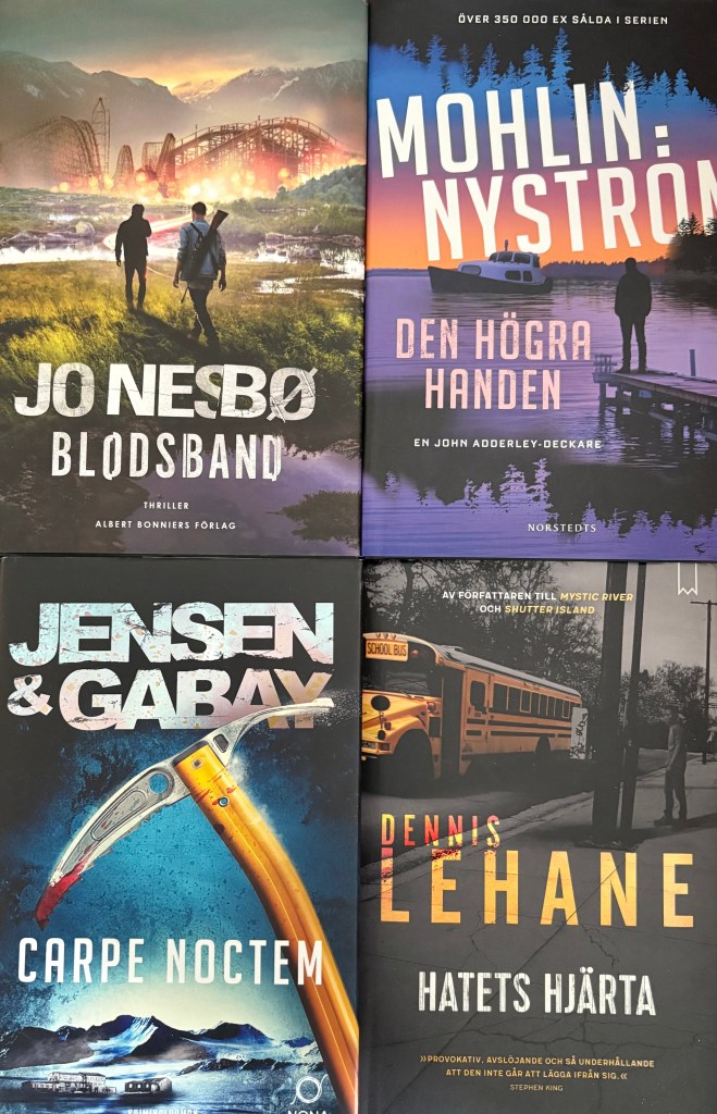 Fyra rykande aktuella spänningsromaner. Tre från Göteborgsområdet som också har häradet som plats – i stort sett – för händelsernas förlopp. Den fjärde från Stockholms skärgård. Alla väl värda sin läsning i olika form av temperament och spänning. Håll till godo!