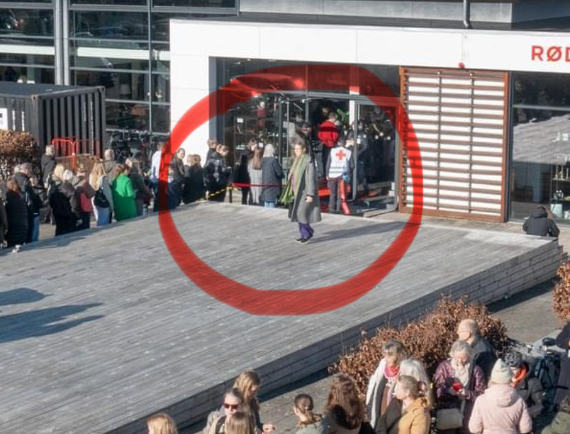 Denna danska lördag bjuder på strålande sol och vårkänslor. När vi kommer fram inser vi snabbt att vi inte är ensamma om att vilja besöka denna Røde kors nya, stolta butik. Kön ringlar längre än lång och det finns inte en p-plats att tillgå.