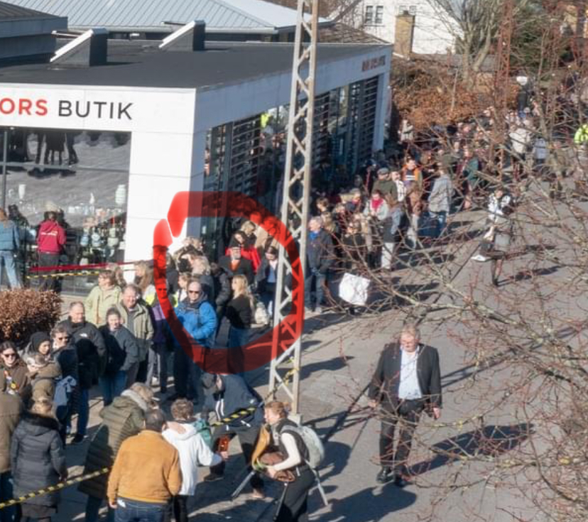 Så korsar vi den tvåfiliga leden med rusande trafik för att bli en av många i den rejäla kön. Vi är på plats en stund innan öppningsdags och kön rör sig sakta framåt. Vi är en salig blandning av hågade spekulanter: gamla, unga, män, kvinnor. Sådan som är ute efter klipp har förstås varit på plats tidigt. En bank är på plats och bjuder på kaffe, kakor och sötsaker. Dansk TV2 gjorde ett inslag om butiken redan på fredagen. Den har blivit omskriven i medier. Det är populärt med secondhand och jag kan förstå det. De Røde kors-butiker som vi har besökt genom åren har varit snyggt skötta med bra varor. Det här är ju något av juvelen i kronan.