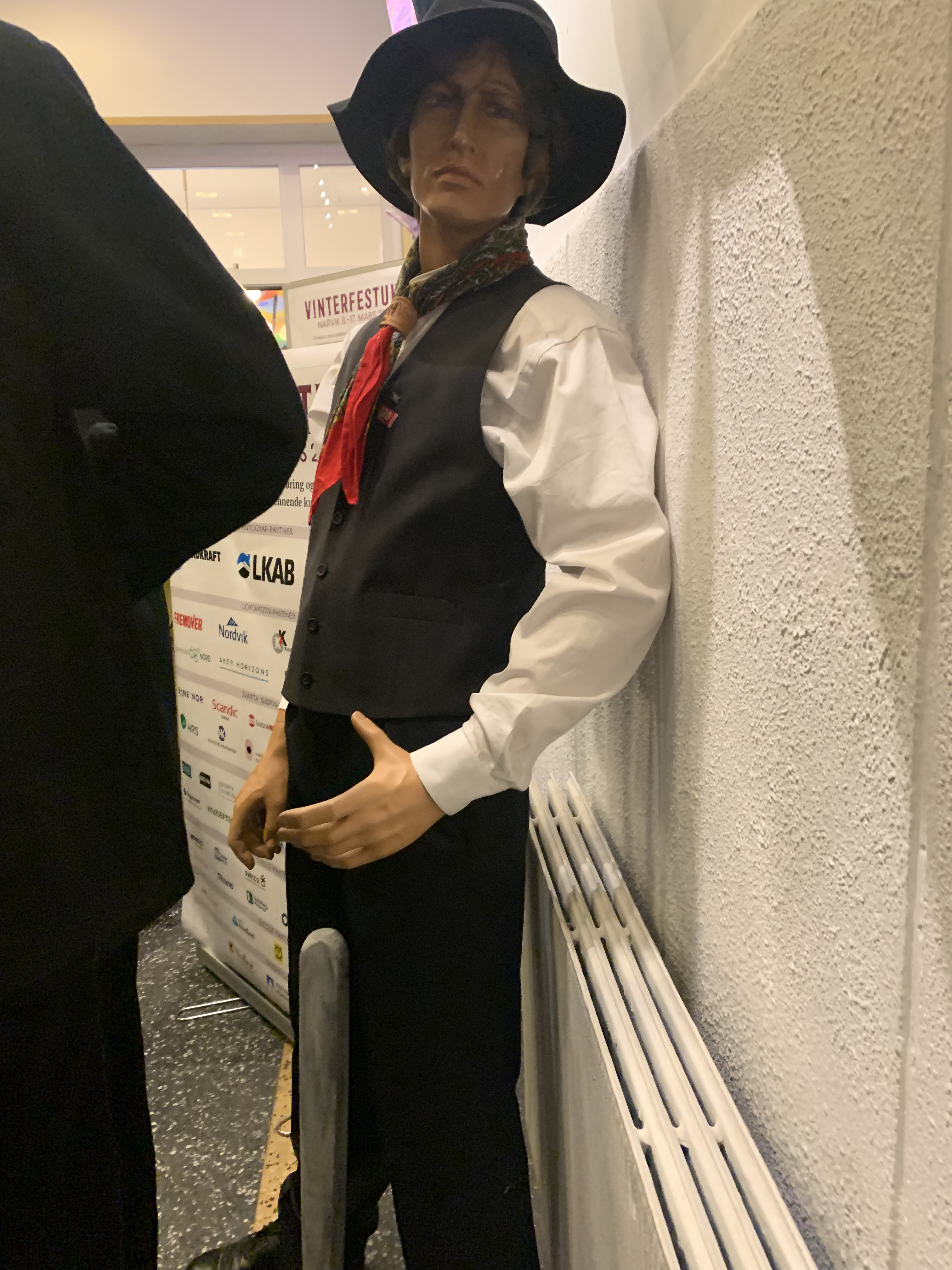 Så en promenad tillbaka till hotellet, en sväng in förbi snabbkedjan Joker för norsk choklad och Coca-Cola, en titt in i Røde kors-butiks mörka skyltfönster och upp till mitt hotellrum. Jag ska byta om för kvällen (samma outfit som kvällen innan, men så reser jag också lätt; bara en ryggsäck), lite läsning och vidare ut i Narvikskvällen för en andra dos ”Byen som forsvant”. Jag har gjort en intervju med Lars Bodén och Tony Naima, med förhoppning att sälja in den någonstans, och ska nu ta bilder på orkestern efter soundcheck.
