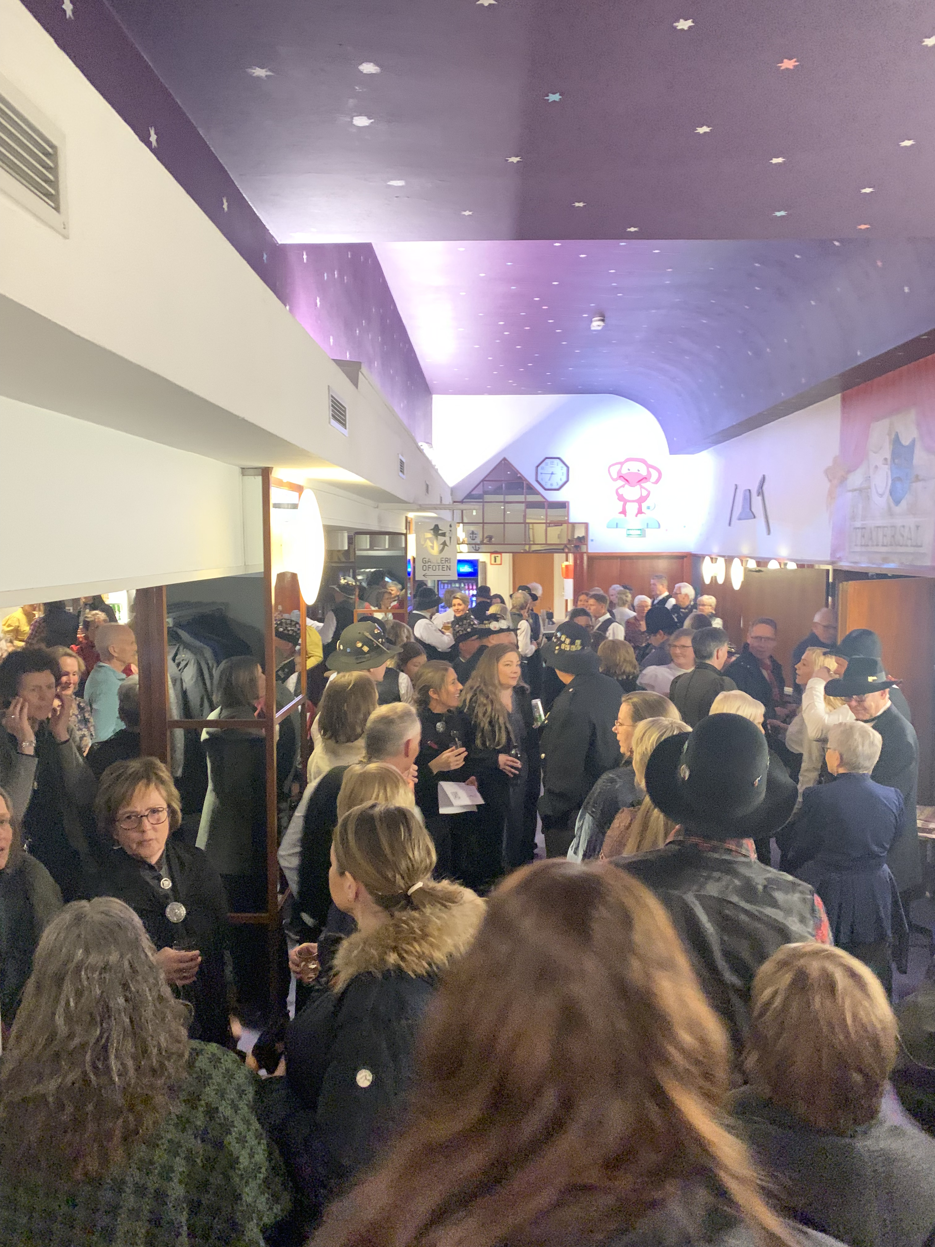 Jag tar reda på vad jag ska sitta och får en plats långt bak intill väggen i salongen. Bra, då får jag en ny upplevelse av föreställningen.