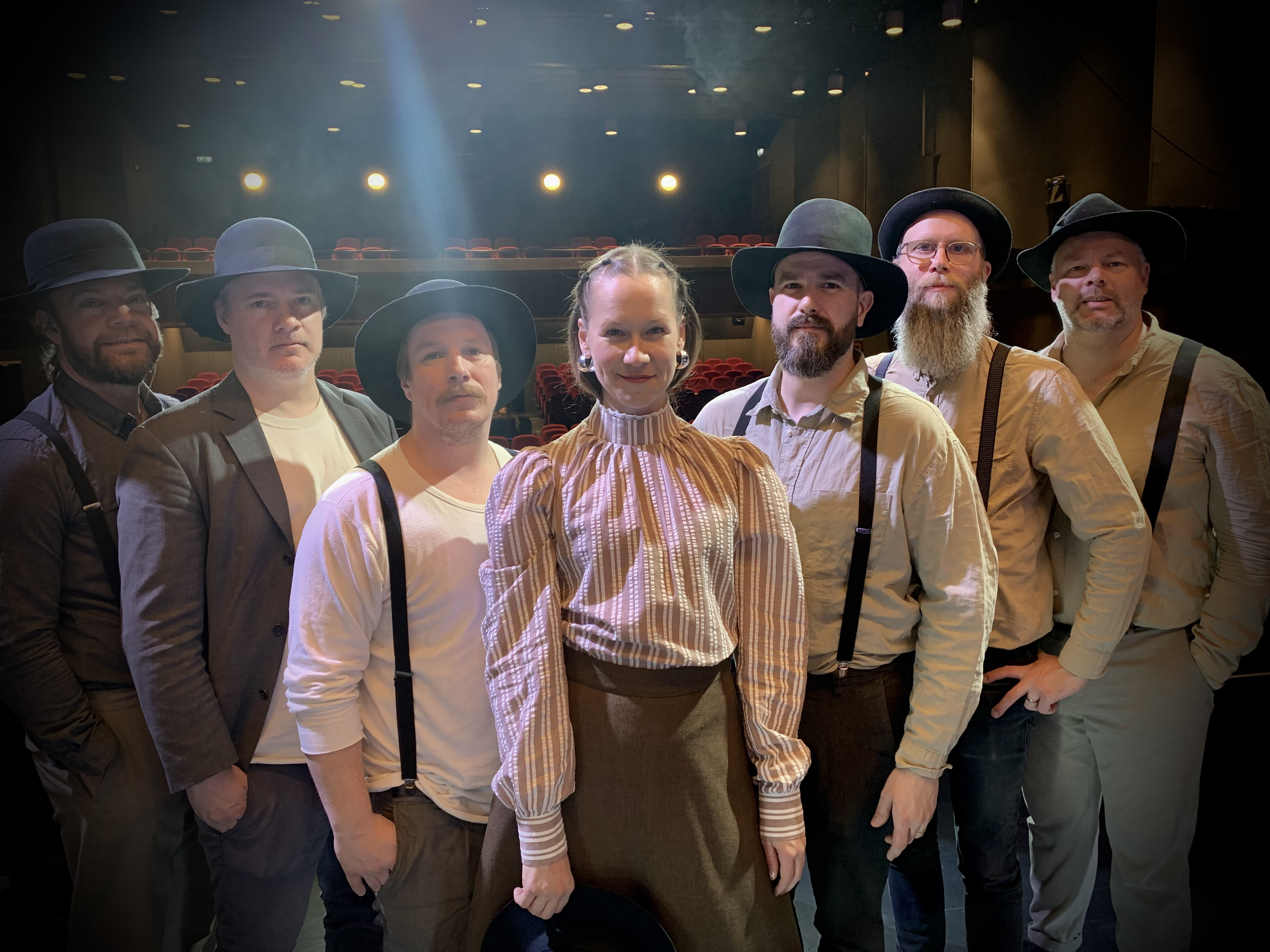 Ådalsbandet. Från vänster Stefan Wingefors, Tony Naima, Patrik Grundström, Mathilda Lindgren, Josef Eriksson, Christian Sundeqvist och Lars Bodén. Foto: KAI MARTIN