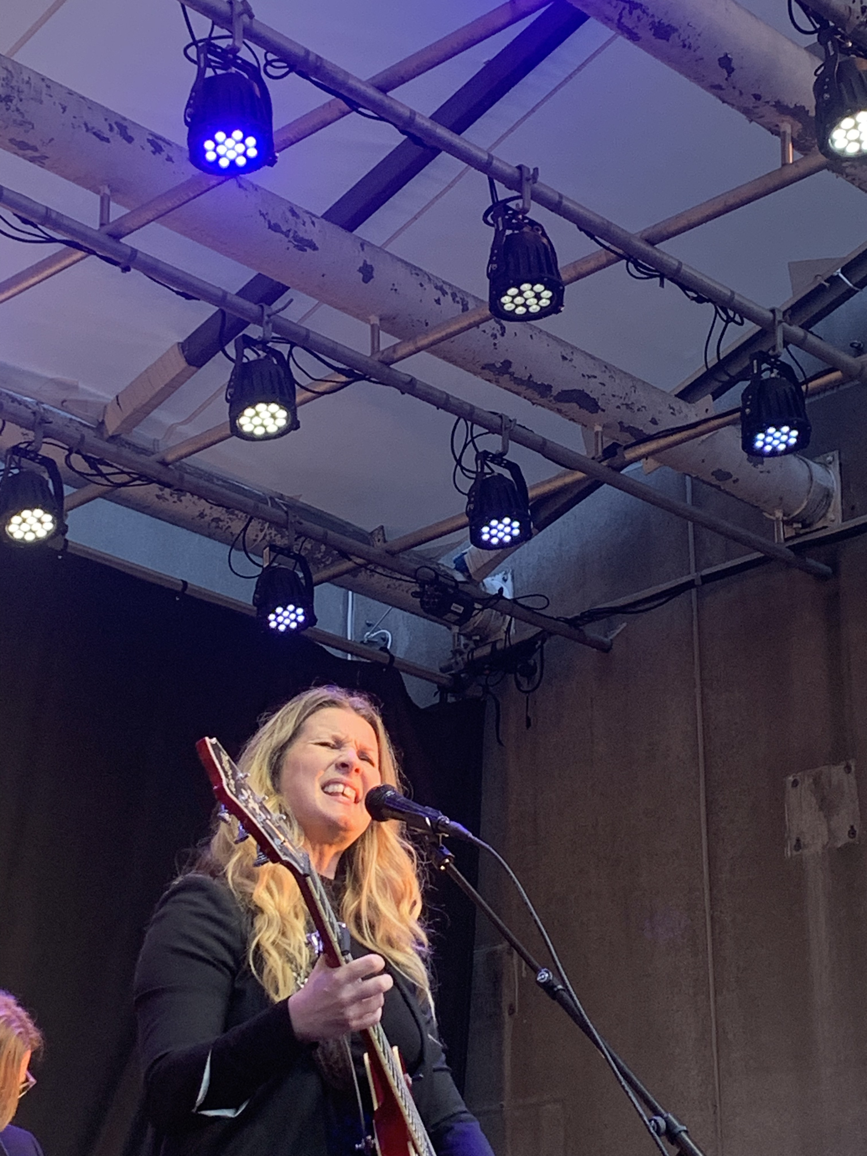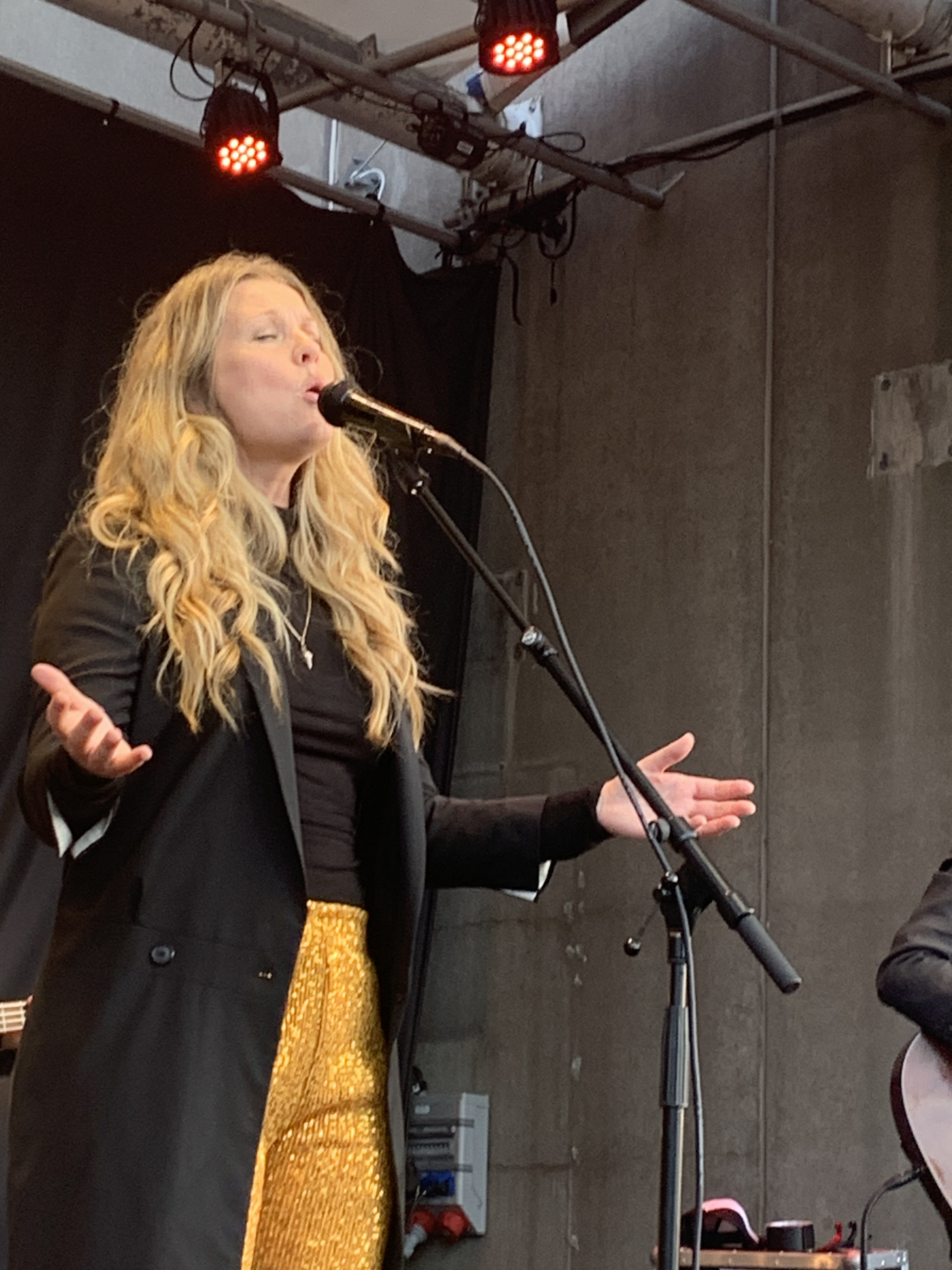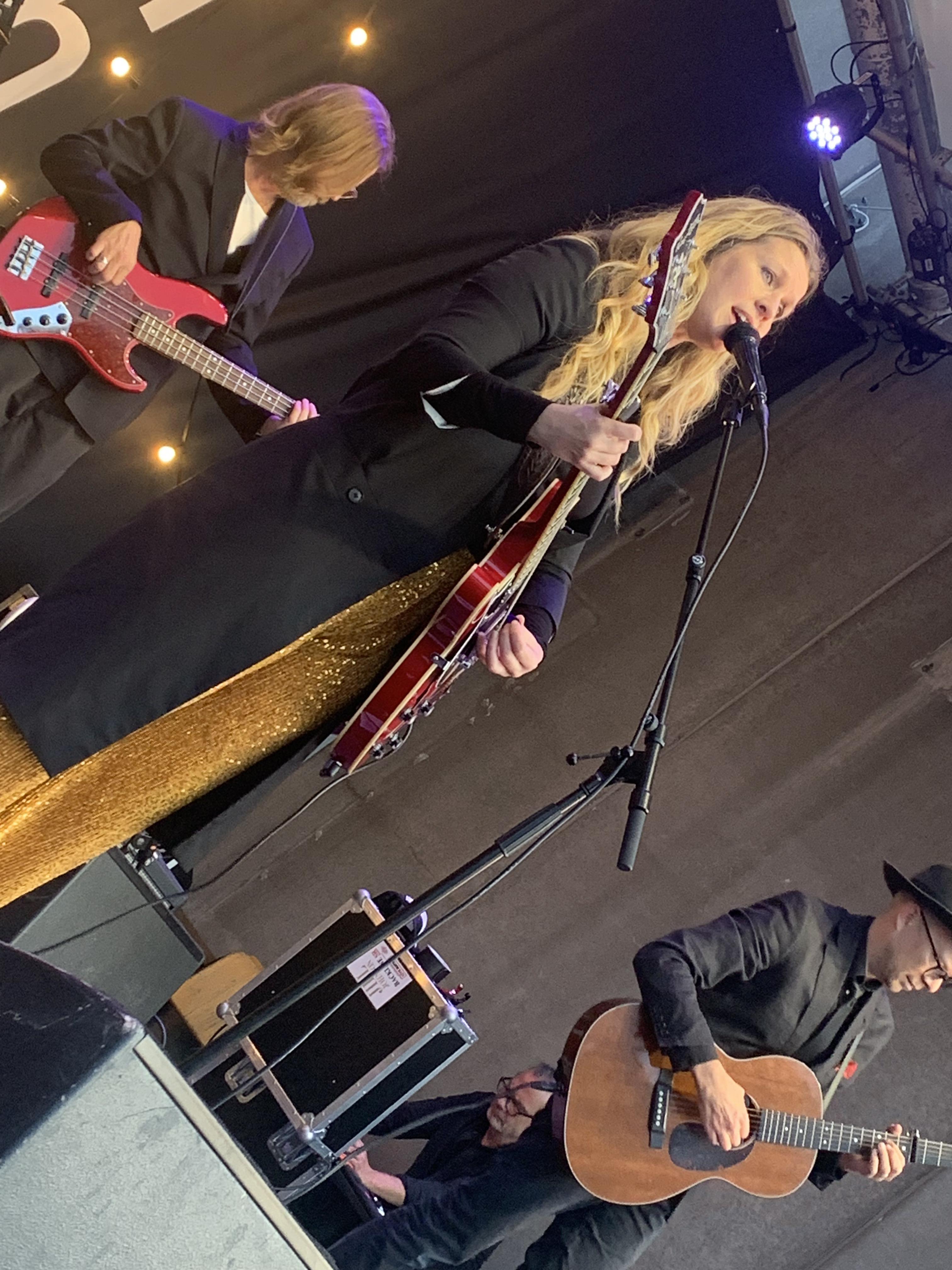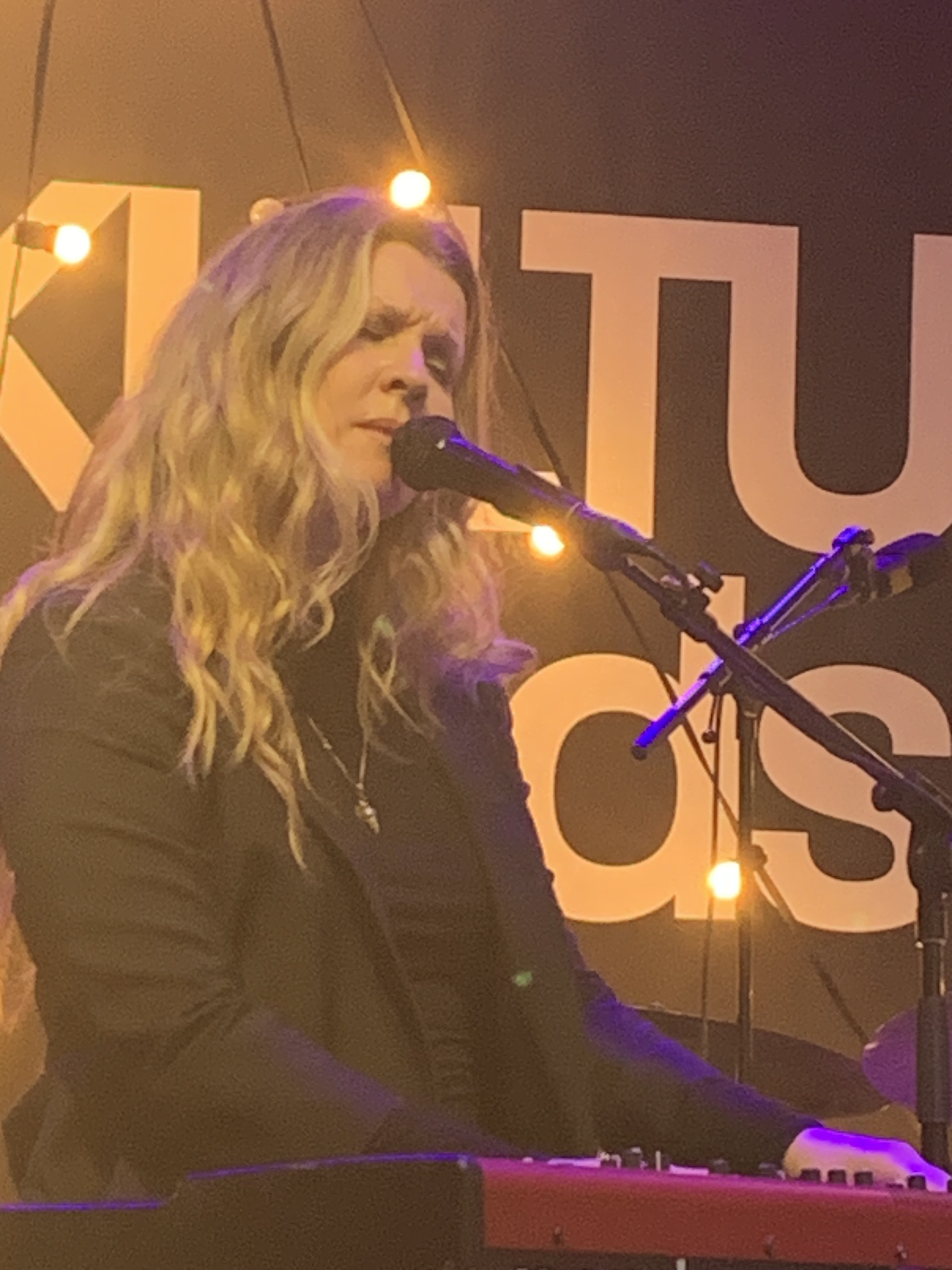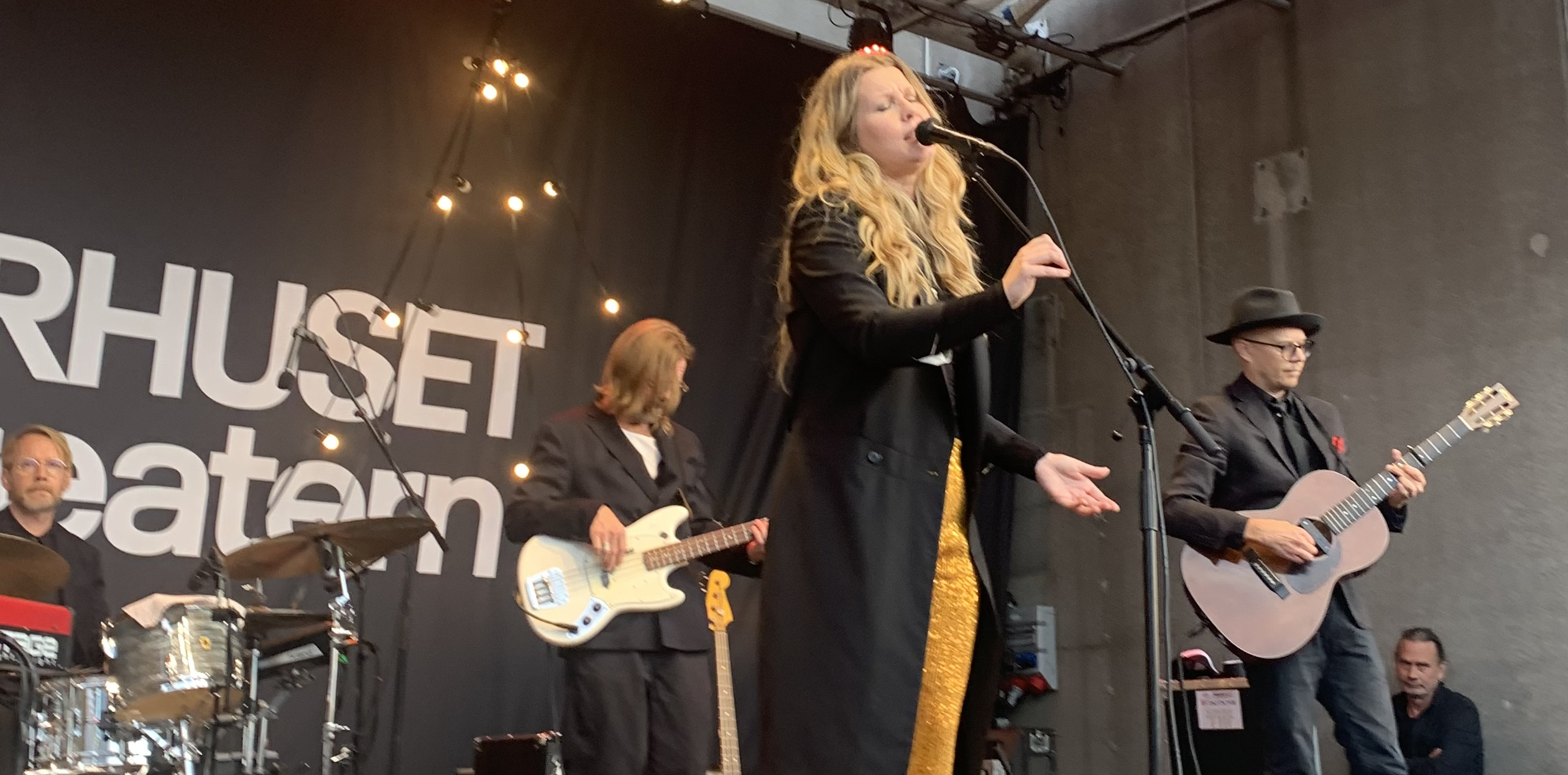Steget från David Bowie – och Laurie Anderson – till Pernilla Andersson är måhända långt. Åtminstone artistiskt. Men från Kulturhusets femte våning är det bara att kliva ut på terrassen för att få sig en gnutta utmärkt underhållning. Jag har följt hennes i 24 år, är förtjust i hennes tilltal som scenartist och tycker att hon har en sällsynt förmåga att göra avtryck med sin musik i radion. Hon är en hårt arbetande artist, kompositör, arrangör och producent. Men hon har också en förmåga att göra sin konserter till något allmängiltigt privat. Hennes berättelser om sina låtar blir också en inblick i kärlek, liv och död, som famnar kärleken till hennes far Kent Andersson och hans resa in i Alzheimersoch senare död. Det blir turnéminnen, skilsmässa, allvar och humor under denna nära nog uppsluppna men närvarande timme, som dessutom inkluderar fina hyllningar till bandmedlemmarna: Fredrik Rönnqvist, hennes trogne följeslagare sedan mitten av 90-talet, trummisen Mikael Häggström och basisten Jerker Odelholm. Den förstnämnde fyller denna dag 50 år och föräras en Borsalino. En självklar prydnad för en man som har vett att klä sig synnerligen elegant och gärna bär hatt på scen. Men… de två i rytmsektionen har också nyligen firat sina 50 år och då det dessutom är turnéavslut får även de var sin Borsalino.