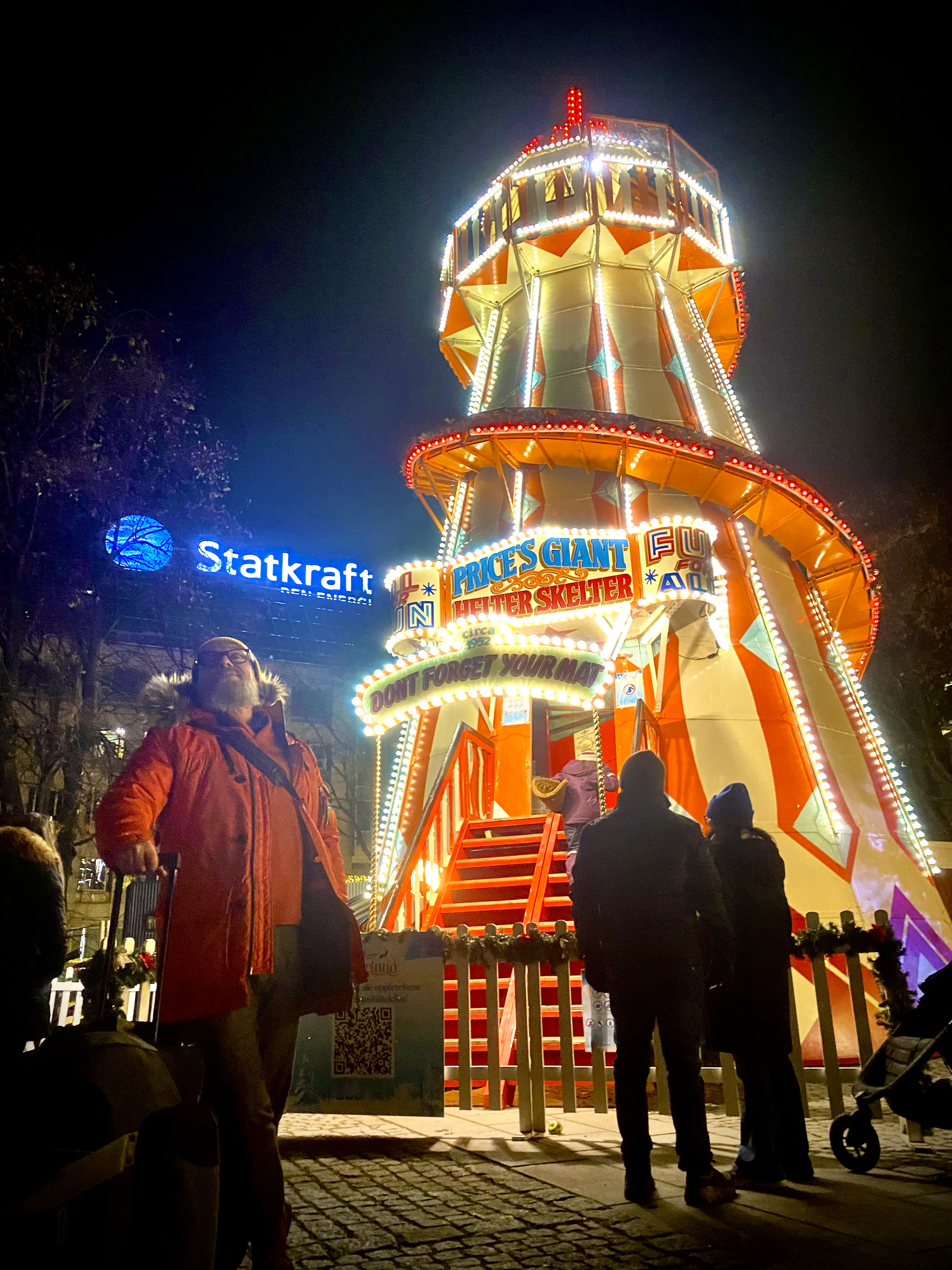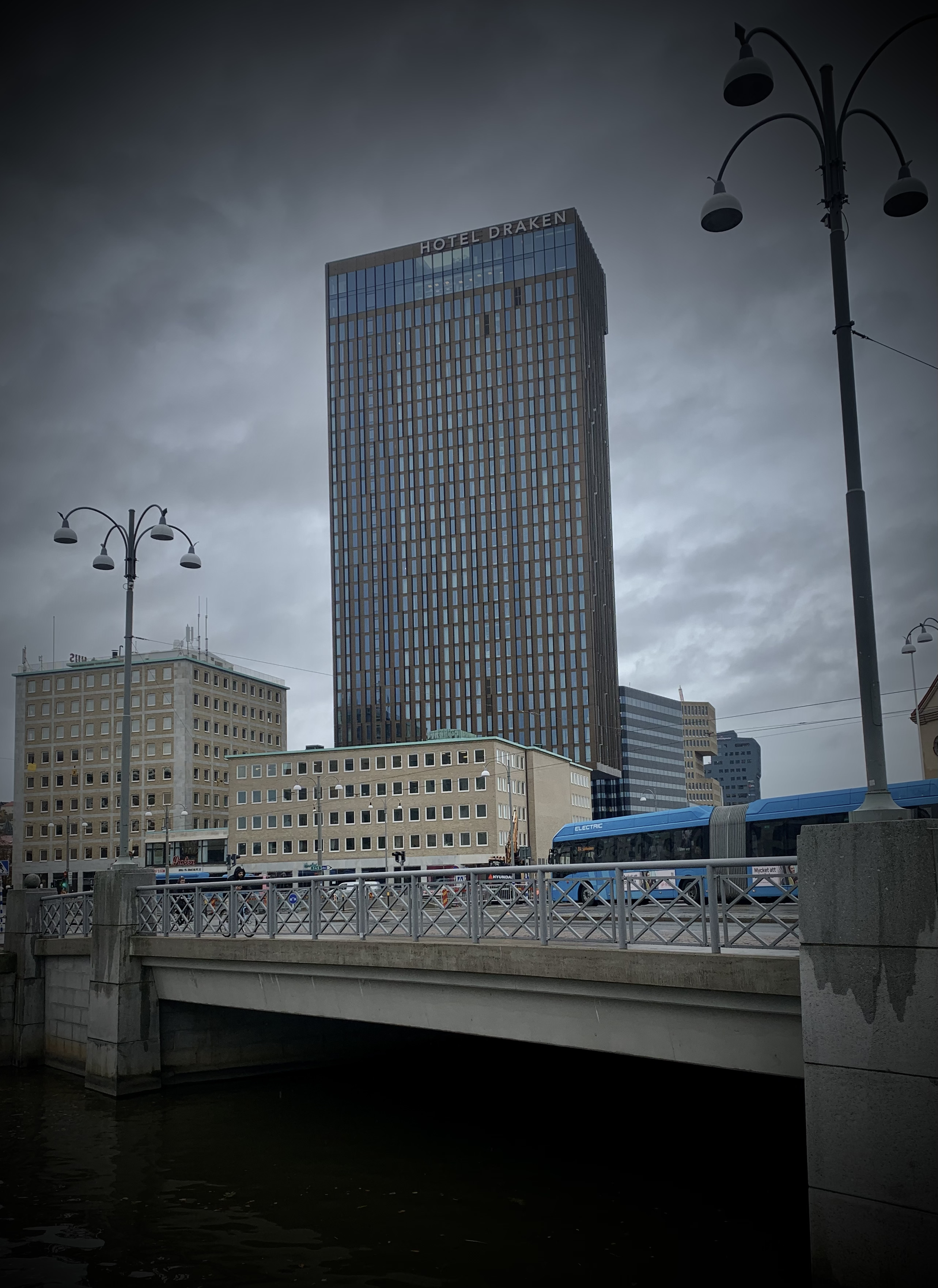 Jag betalade, tackade varmt, lovade att återkomma och smet sedan in på toaletten som bjuder på en utsikt som heter duga. Så mot hissen som i ilfart tar dig ner till bottenvåningen, väl ute ut den konstatera jag en rejäl kö för att åka upp – ungefär som till en Lisebergsattraktion. Så runt lite grand, säger hej, går trappan upp för att gå till garderoben. Smiter in i den syntpark som står i foajén till bion där aktade elektroniska musiker duellerar i konsten att ratta ljud. Hämtar ut min brandgula Tenson Himalaya, som skyddar mot väder och vind plus att kapuschongen håller kubben på plats. Jag får vänta på vagnen, men kommer sedan hem för att avsluta en intensiv dag.