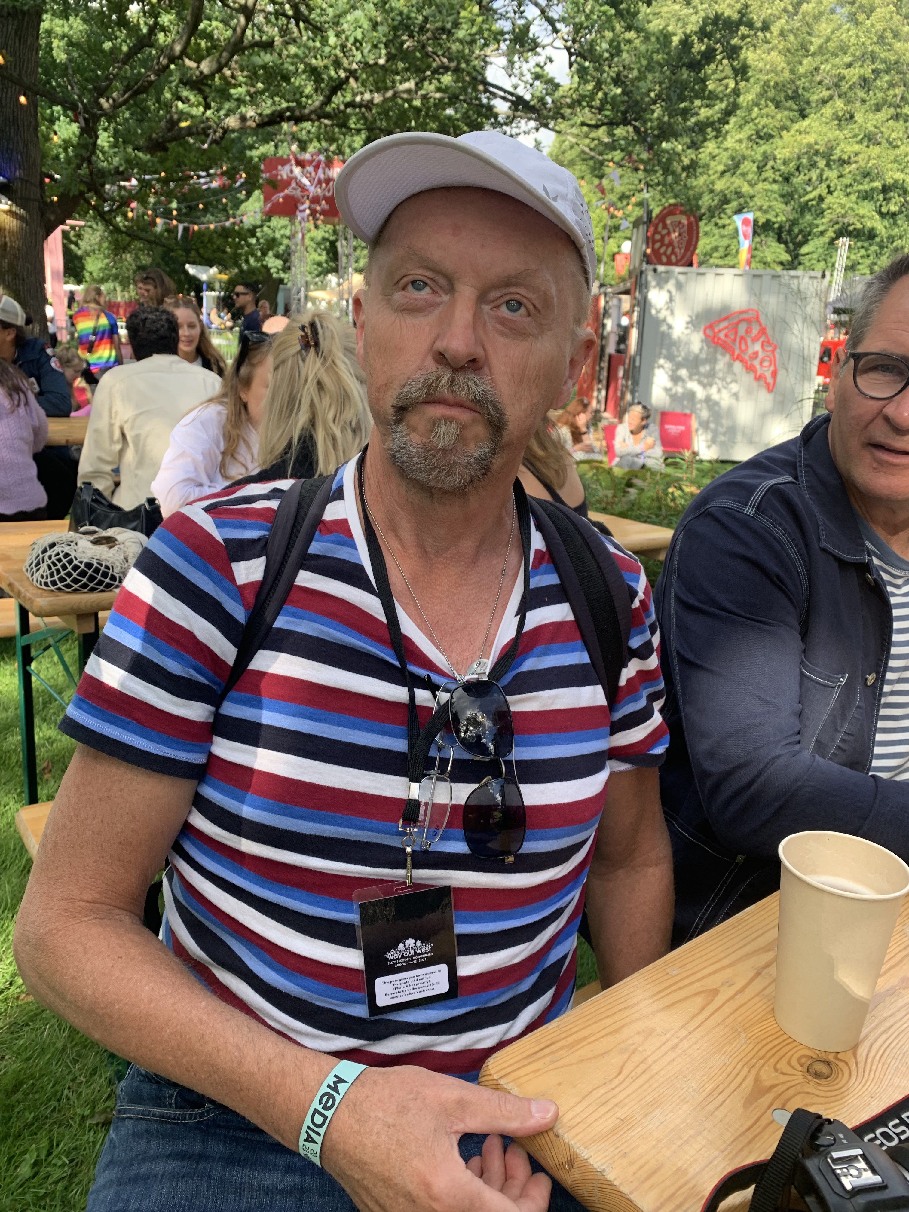 Lördag – Aftonbladets fotograf Anders Deros tillhör en av de flitigaste i diket under Way out West. Hustrun med före detta läraren, min vän sedan gymnasietiden, Eva Gometz. Musikälskande politikern Leif Pagrotsky missar sällan ett Way out West. Håkan Hellström-gitarristen Simon Ljungman hann med ett peace and love innan konserten. Indiemästaren och oklanderligt klädde (alltid kostym på Way out West) Terry Ericsson höll fanan högt. Elsa Gometz (ja, dotter till Eva och som av en slump gymnasiekamrat med min ena son, då det begav sig), nyexaminerad sjuksköterska. Musikälskaren, fotografen och förre TV4-medarbetaren Michael Kleber missade inte mycket på Way out West. Förre ad:n, musikkonnässören Håkan Sandsjö tar tillfället i akt att både lyssna på favoriter, njuta av nytt och träffa vänner. Efter 23 år har Stefan Sporsén hoppat av Håkan Hellströms band för egna projekt. På Way out West gästade han José González på scen. Timmar innan finalspelningen lyckades Labbe Grimelund, Håkan Hellströms och Bongo Riots trummis, stanna för en kort pratstund. Mästerfotograf Johan Bergmark älskar rock’n’roll. Här flankerad av Håkan Sandsjön, Brian Fuller från Austin, Texas, och undertecknad.