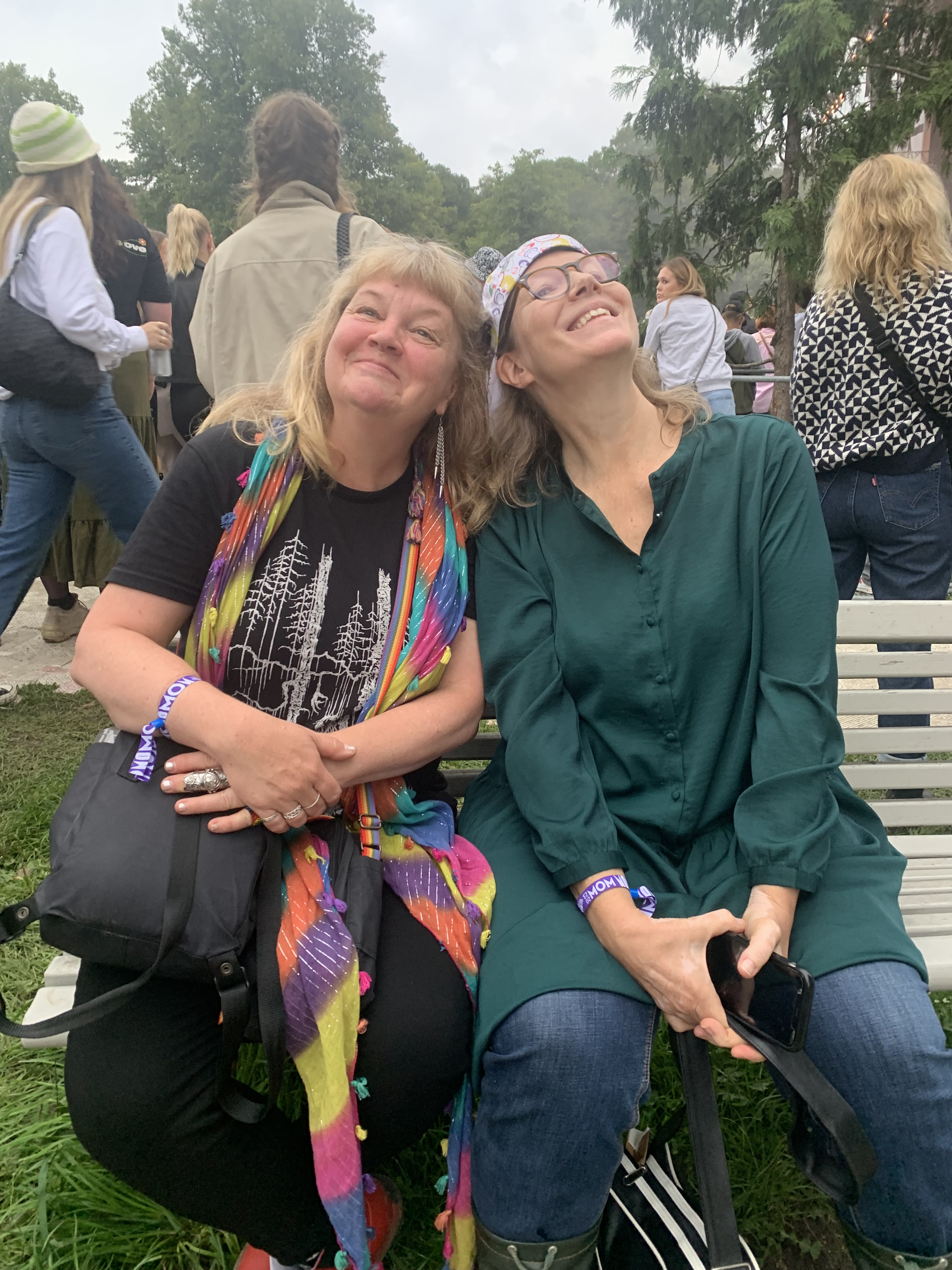 Z dröjer och jag försöker vara tålmodig. Köerna är gigantiska. Alla ska ha mat och dryck innan konserten drar igång. Vi är totalt 18000 på plats. Efter långt tid kommer hon med famnen full av mat och dryck. Vi bestämmer oss för att tråckla oss upp på läktaren, där vi kan ha chans att få sitta. Precis då vi lämnar vår plats kommer Henrik tillbaka med en remsa tejp. Han fixar skorna i ett nafs. Jag kan gå. Jag kan se. Jag kan höra.