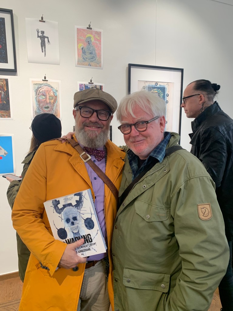 För en knapp månad sedan var det boksläpp på Seriehörnan i Göteborg av Lars Sundestrands bok. Nog vecka senare var det vernissage på Freddie Wadlings konst på Art photo gallery, hörnet Olivedalsgatan/Alfhemsgatan i Göteborg. Det var förstås en tanke. På väggarna Freddies konst, som spänner över så mycket från collage – faktiskt minnande om Tom Benson (som också var Freddies vän) – till skräckmålningar i färgstark krita.