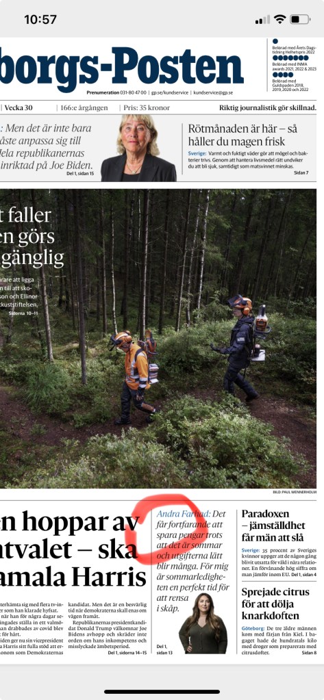 Nå… vi litade inte på SJ, vi undviker flyg. Det blev Hilda, som tog oss nordost upp till huvudstaden. Men först efter ett morgonbad och ett gympass ute i Hovås. Jag har en operation som väntar, ett knä som spökar. Jag behöver vara så stark det går till dess det är dags.