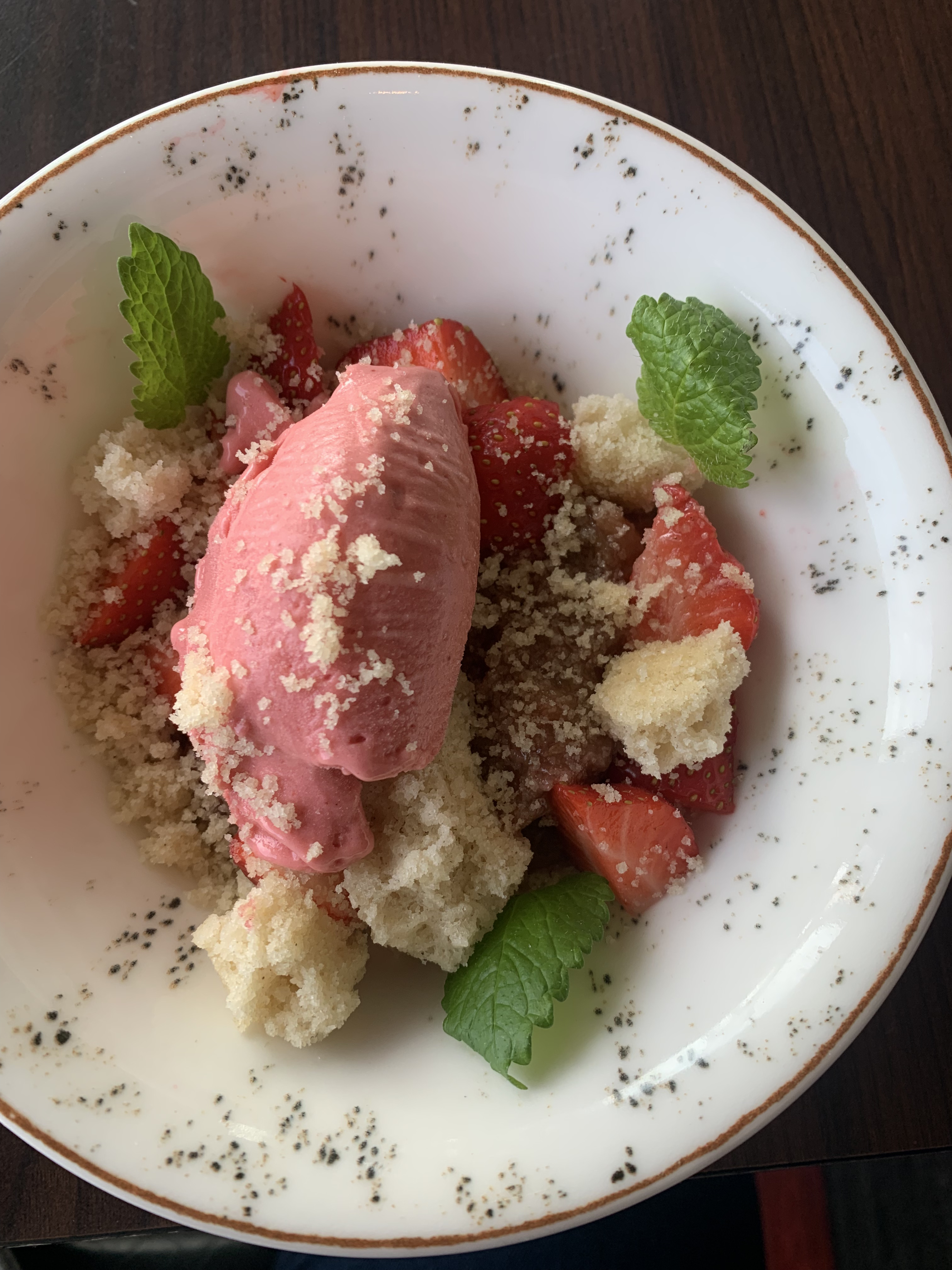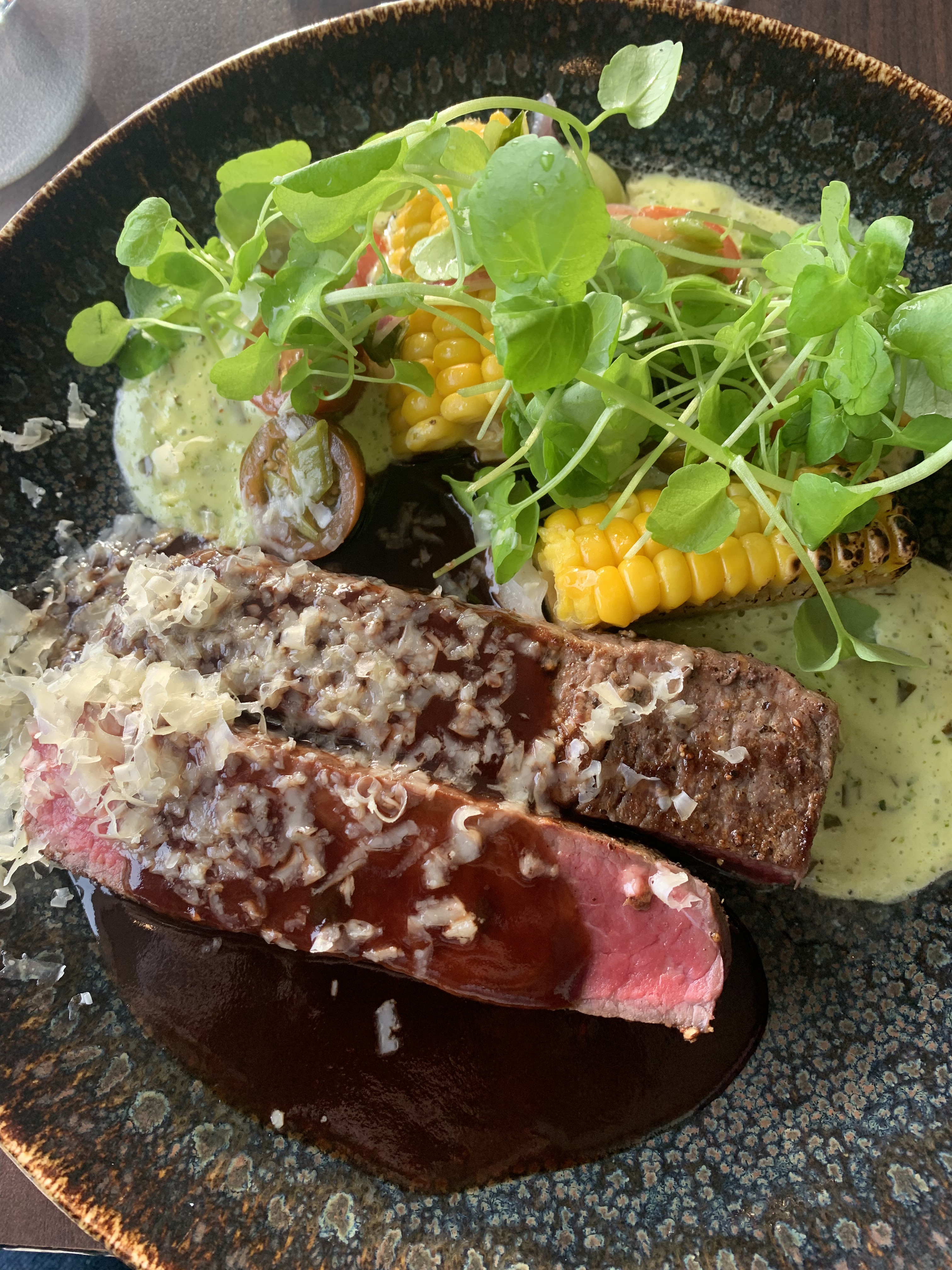 Så vi går slokörade tillbaka och tänker, att bryggan kan vi åtminstone gå ut på och hoppa i ifrån. Det sitter ett sällskap med öl och mat, trevligt. Lite danskt, så där. Vi frågar om de vet om det finns någon trappa på bryggan och om det går att bada därifrån. Svaret kommer på danska, så Z får vädra sitt hemspråk. En man med barn kommer in från bryggan och han ger oss tipset om att det finns räddningsstegar, så upp kommer vi alltid. Det blir bad. Tack och lov. Skönt att få svalka ned oss innan hemfärd. Torra går vi till Holmen Kök och Bar för en pyttipanna. Lite segt kött, men god och krämig ändå. Lite vatten att dricka (hade varit godare med öl) och kaffe med en tiramisu, som vi delade Nu var vi redo för hemresa.