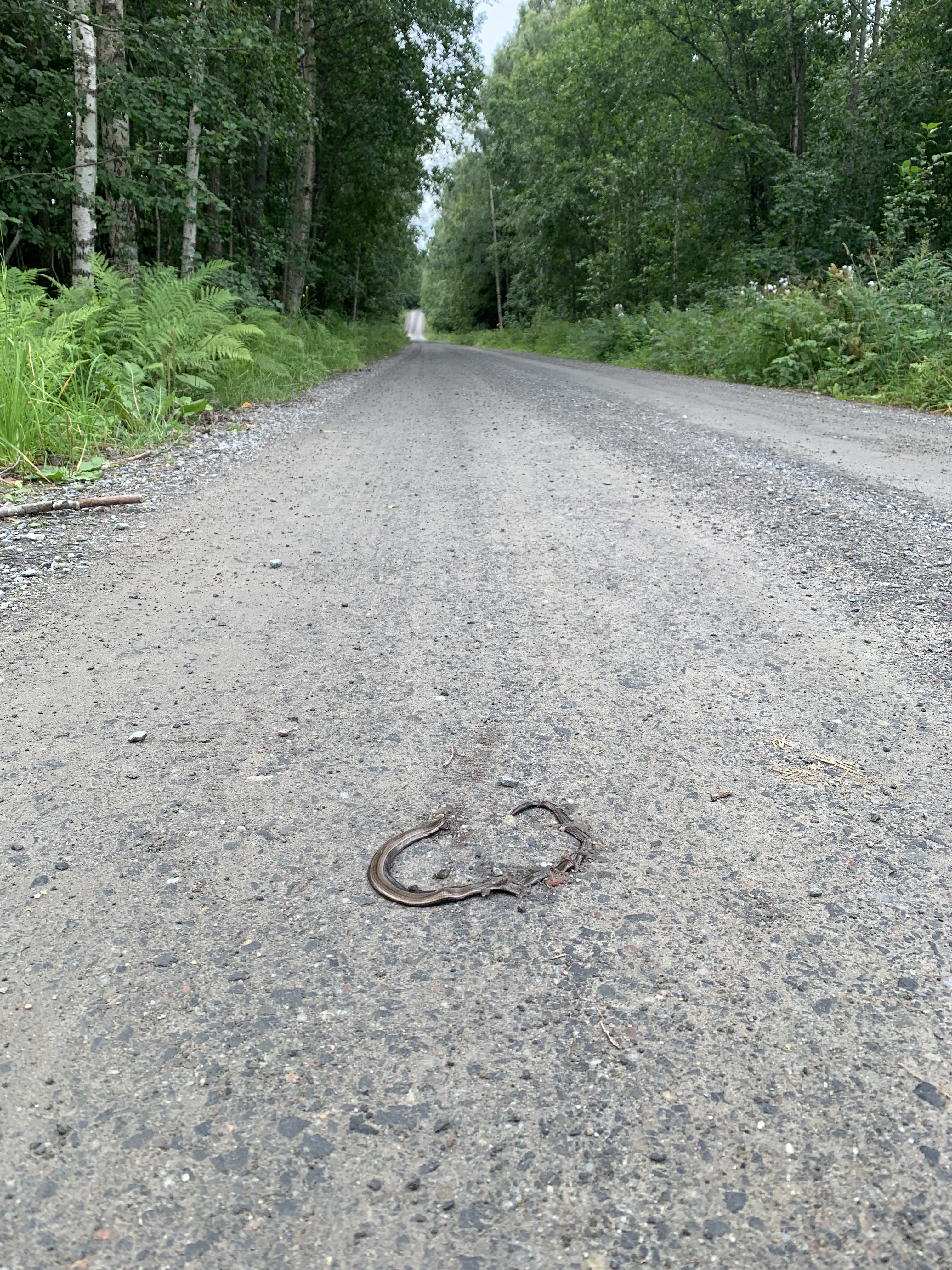 Vildmarken gör sig på mind. En hare korsar vårt spår, grodor likaså. På en höjd spejar en rådjursbock.