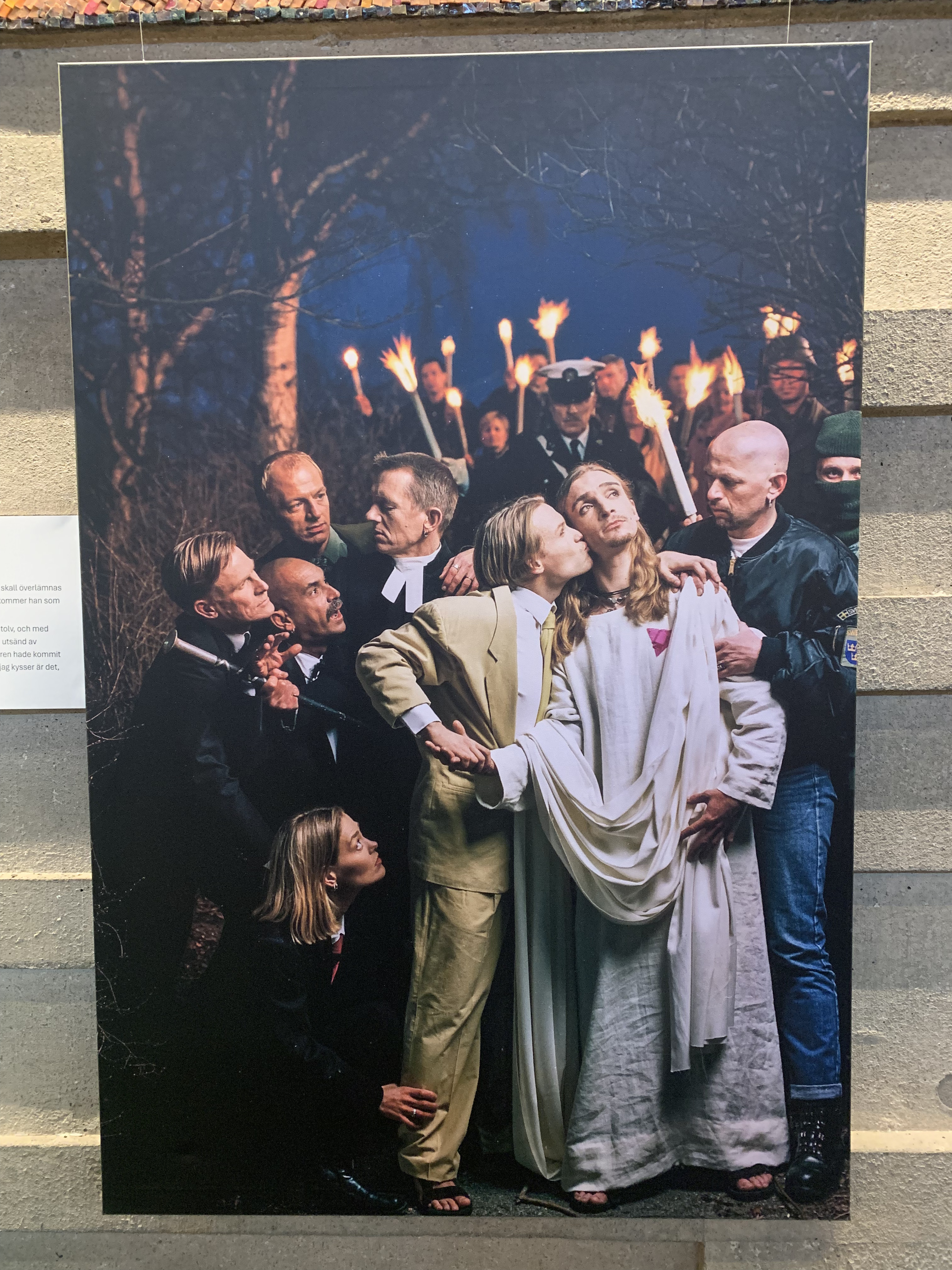 Men för mig gick det inte att i lugn och ro ta in denna hennes så starka och talande konstfotografier. Jag återvände idag. Fick andakten, kunde läsa bibelorden vid varje bild. Och just minnet av de protesterande i Annedalskyrkan blir extra starkt vid bilden ”Veropet” där hon citerar Matteusevangeliet 23:13 ”Ve er, skriftlärda och fariséer, ni hycklare som stänger himmelriket för människorna. Ni går inte själva in, och dem som vill komma dit in släpper ni inte in.”.
