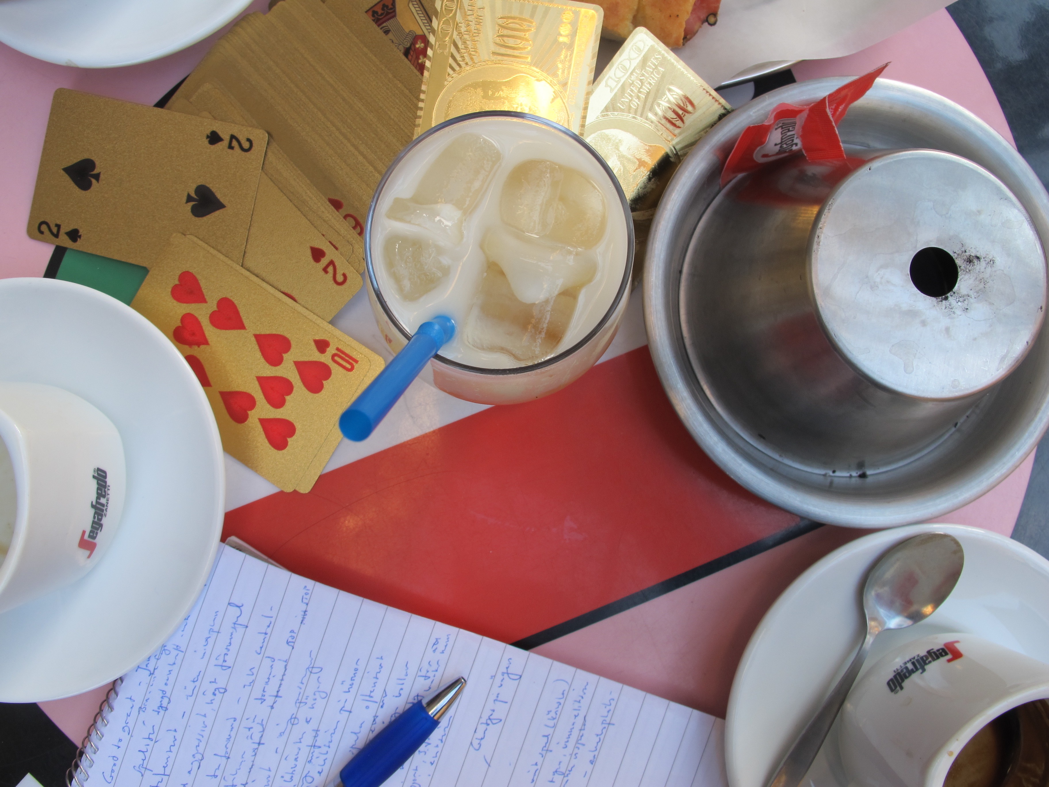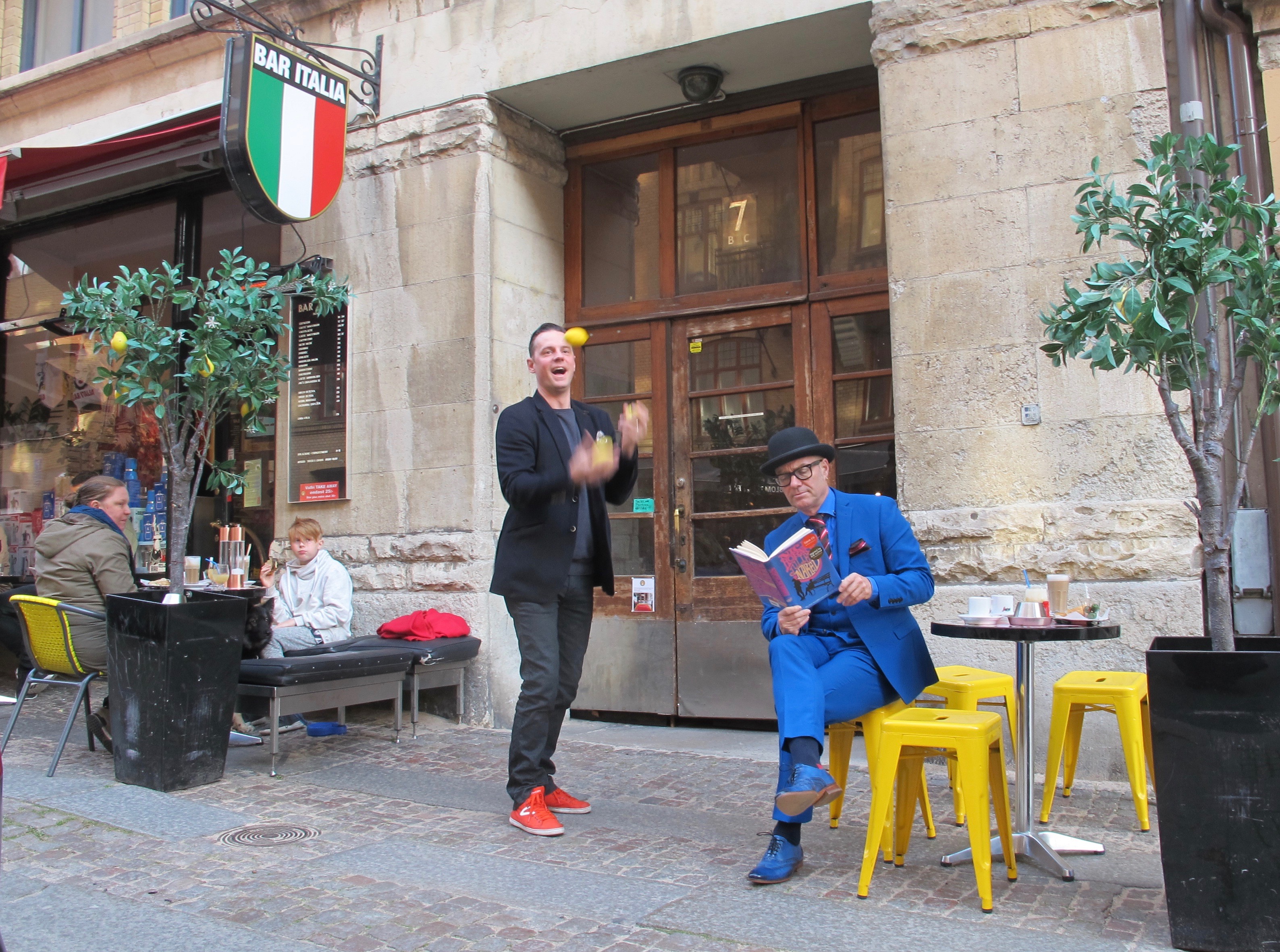 På vägen börjar en försiktigt känsla av hunger infinna sig och han viker av på ett mindre torg, som egentligen mest består av en parkeringsplats, för att gå in på ett hyfsat nyöppnat kafé som drivs av en vän.