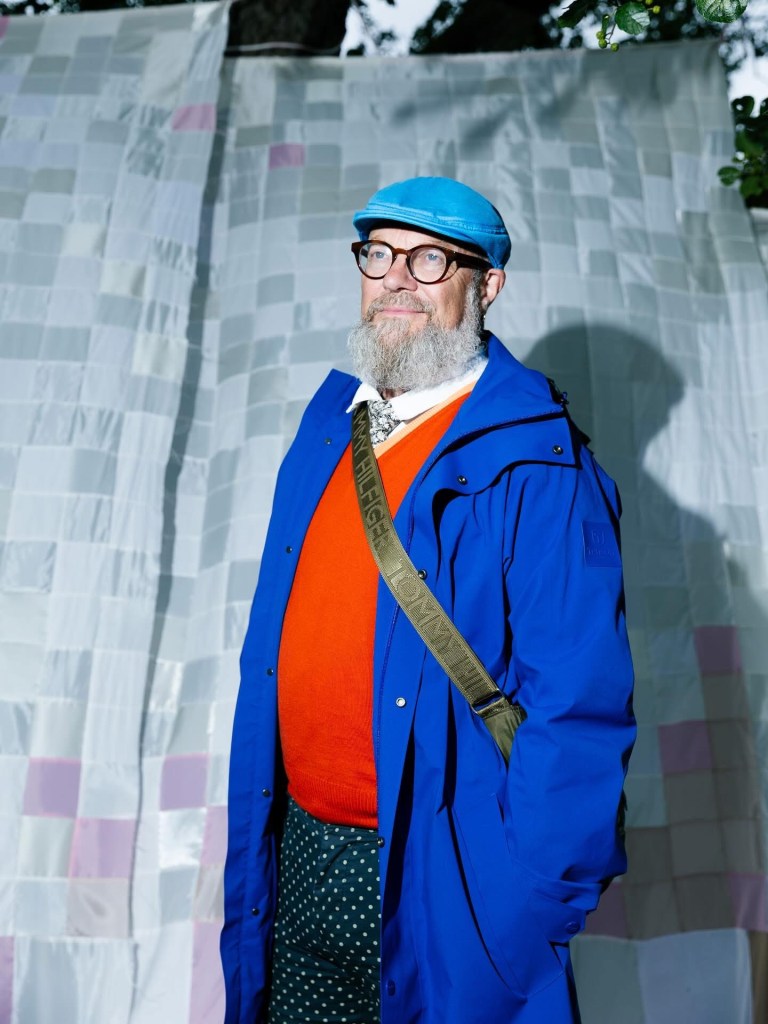 Den kostymen, från 2018, fotograferades av min reskamrat Peter Birgerstam. Väl upplagd på sociala medier fångade mästerfotografen Elisabeth Ohlson (hon som sorgligt avled förra hösten alldeles för ung efter en tids sjukdom) upp den och ville ha mig till sin ateljé i Stockholm för en fotosession. Det blev av i februari 2019. Oerhört smickrande.