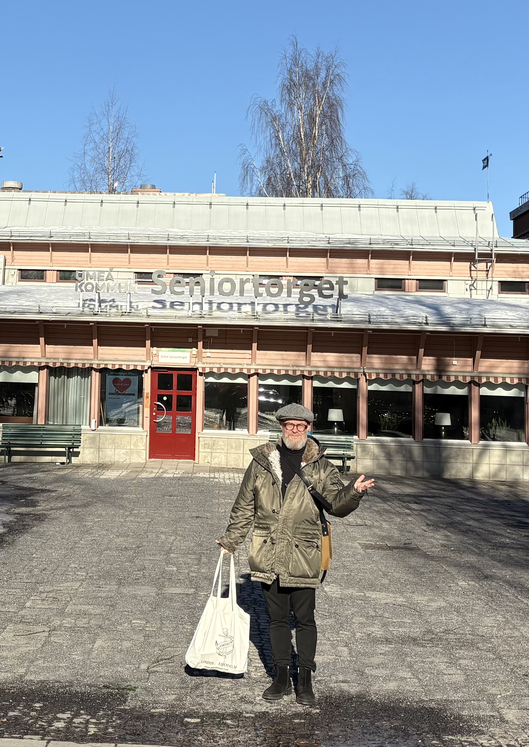 Solen har trängt undan det gråa. Umeå sträcker upp sig som vore det en vårdag. Rådhusesplanaden kantas av folk, som surrar som yra bin väckta för tidigt. Vid går i samlad tropp upp mot Centralstation där Köksbaren ligger. Det är där vi ska träffa även sonens svärfar för lunch. Han jobbar en liten bit därifrån. Hon har precis tagit ut sin pension och njuter försiktigt livets otium, som jag.