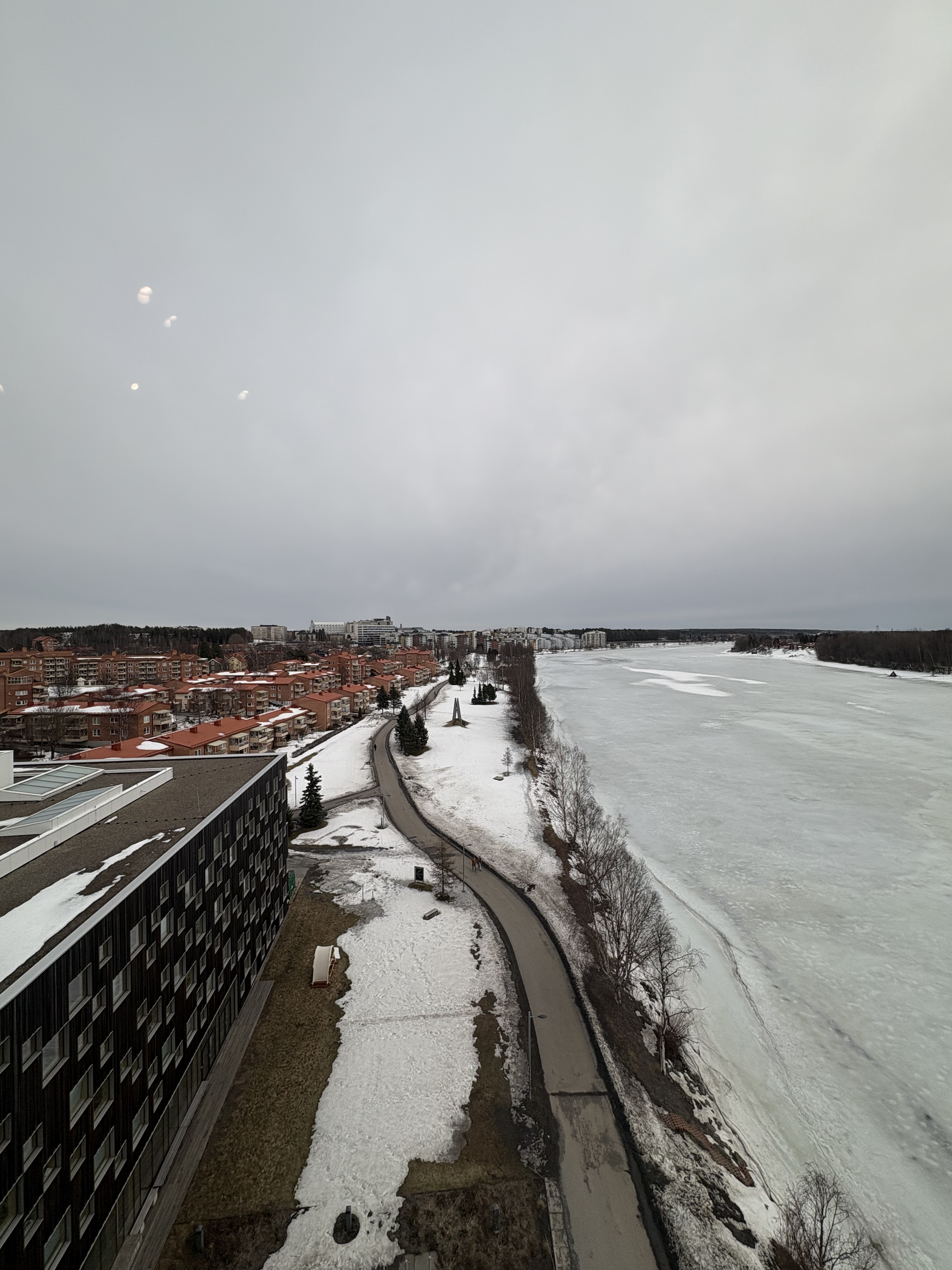 Jag erkänner. Jag vaknar bakfull. Några glas för mycket för den snart 70-årige mannen (bara ett och ett halvt år bort!) kräver sitt pris. Men det var trevligt. Solen skiner förföriskt. Men också bedrägligt. Det blåser isande vindar över Umeälven gråfrusna vatten.
