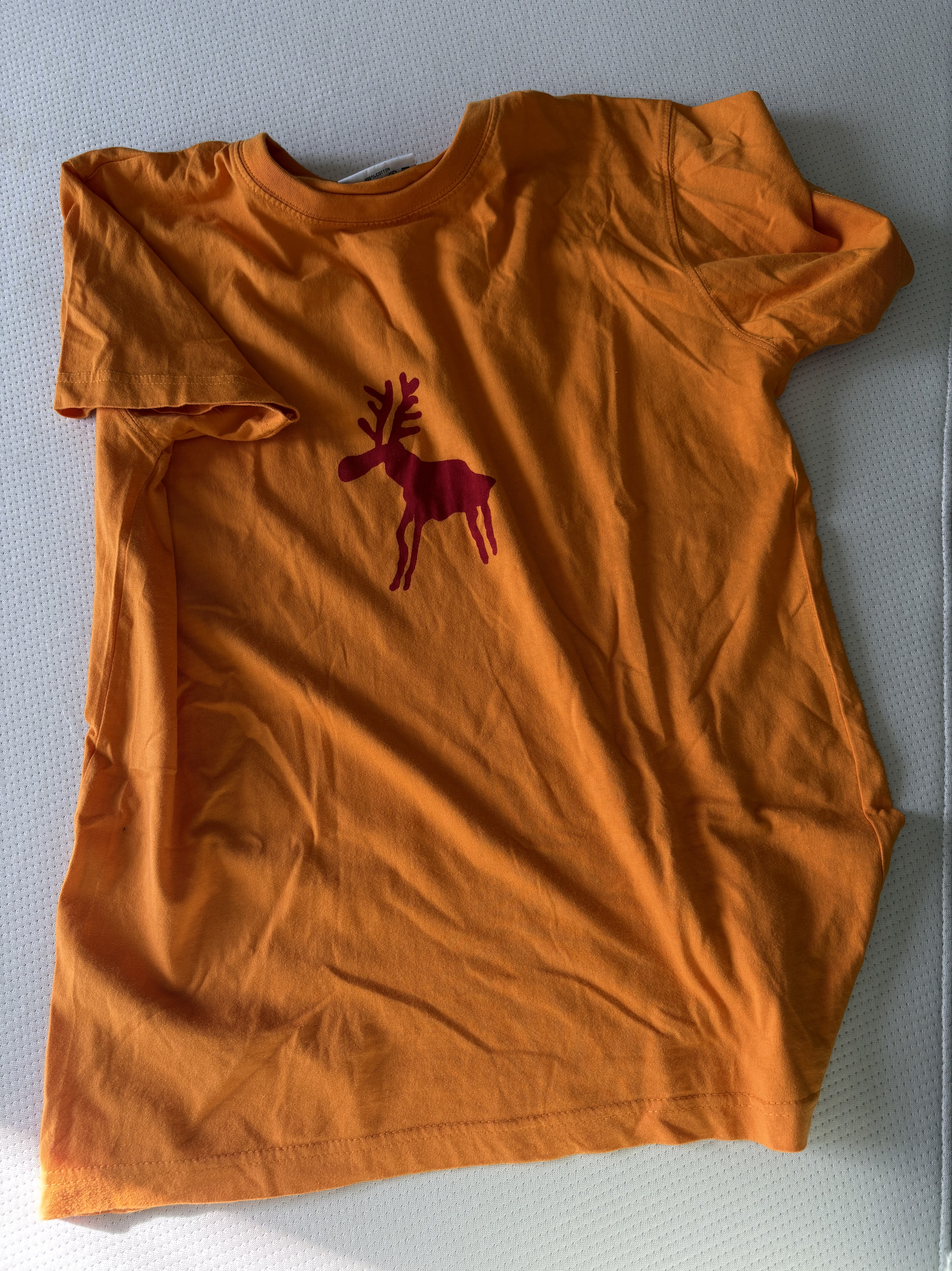 Vi rör oss upp mot Skolgatan och in i Hemslöjden i Umeå, som säljer snygga textilier (tänk Josef Frank, Mumindesign med mera), men kommer ut tomhänta. Strövar vidare mot Rådhusesplanaden där Z går till Systemet för en flaska rom mot sin hosta (det blir några huttar under gång) och min vän och jag till Helens under där hon köper strumpbyxor, som överraskar med halva reapriset. Vi skrattar förvånat och jag säger skämtsamt till expediten att ”Då får det va'”. Går in på Systemet för vin till middagen och sedan upp till Röda korset där jag nu köper strumporna i skyltfönstret, för att min vän senare ska kunna hämta ut dem och posta dem till mig (så dumt, men rart ändå). Det blir också en brandgul t-shirt med en hällristningsliknade älgmotiv för 90 kronor. Den senare hänger på en skyltdocka och jag frågar expediten om även den omfattas av skyltreglerna, det vill säga köp nu, hämta 18 mars… Men, nej. Så hon hjälper till att klä av skyltdockan, konstaterar att den är M och förmodligen ska få plats på min trinda kropp.