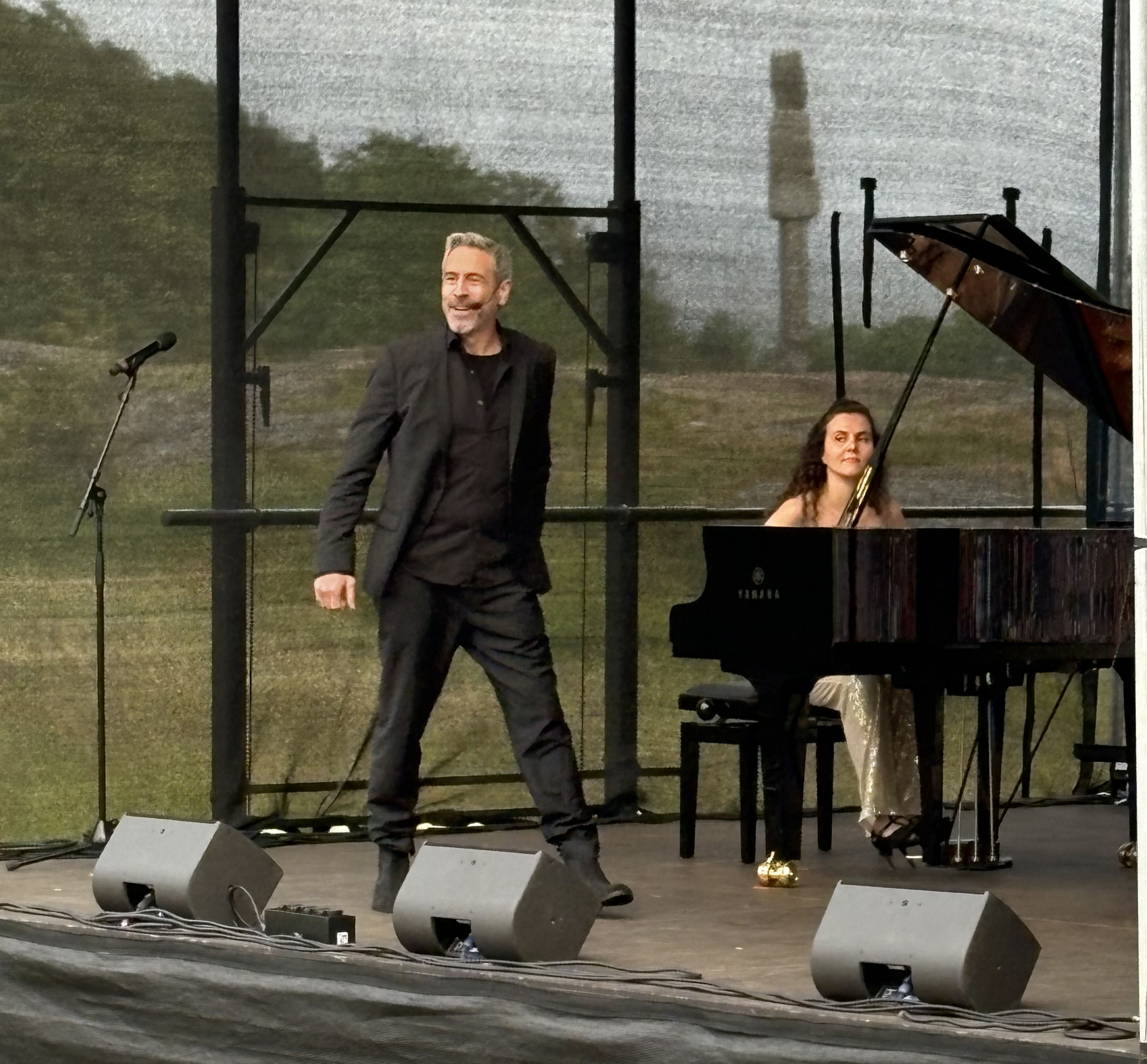 För att ytterligare bjuda på bredd har hon bjudit in tenoren Alexander Grove i musikaliska möten. Som i ömsinta ”Balcony scene (tonight)” ur musikalen ”Westside story”. Även hennes – emellanåt – ackompanjatör och turnéfrände David Carbe dyker upp som, bokstavligen, en gubbe ur lådan för ett fartfyllt pianonummer på egen hand.
