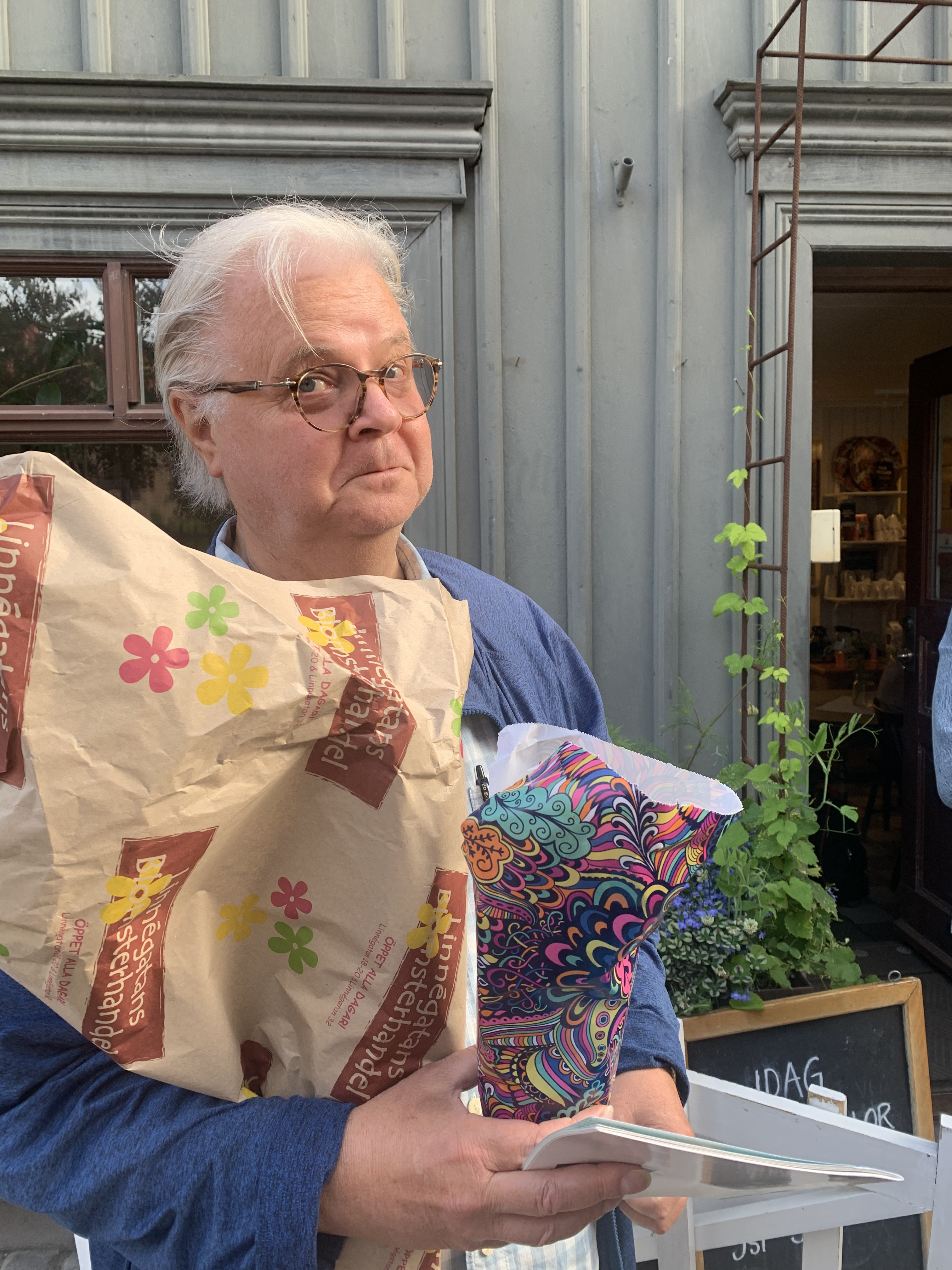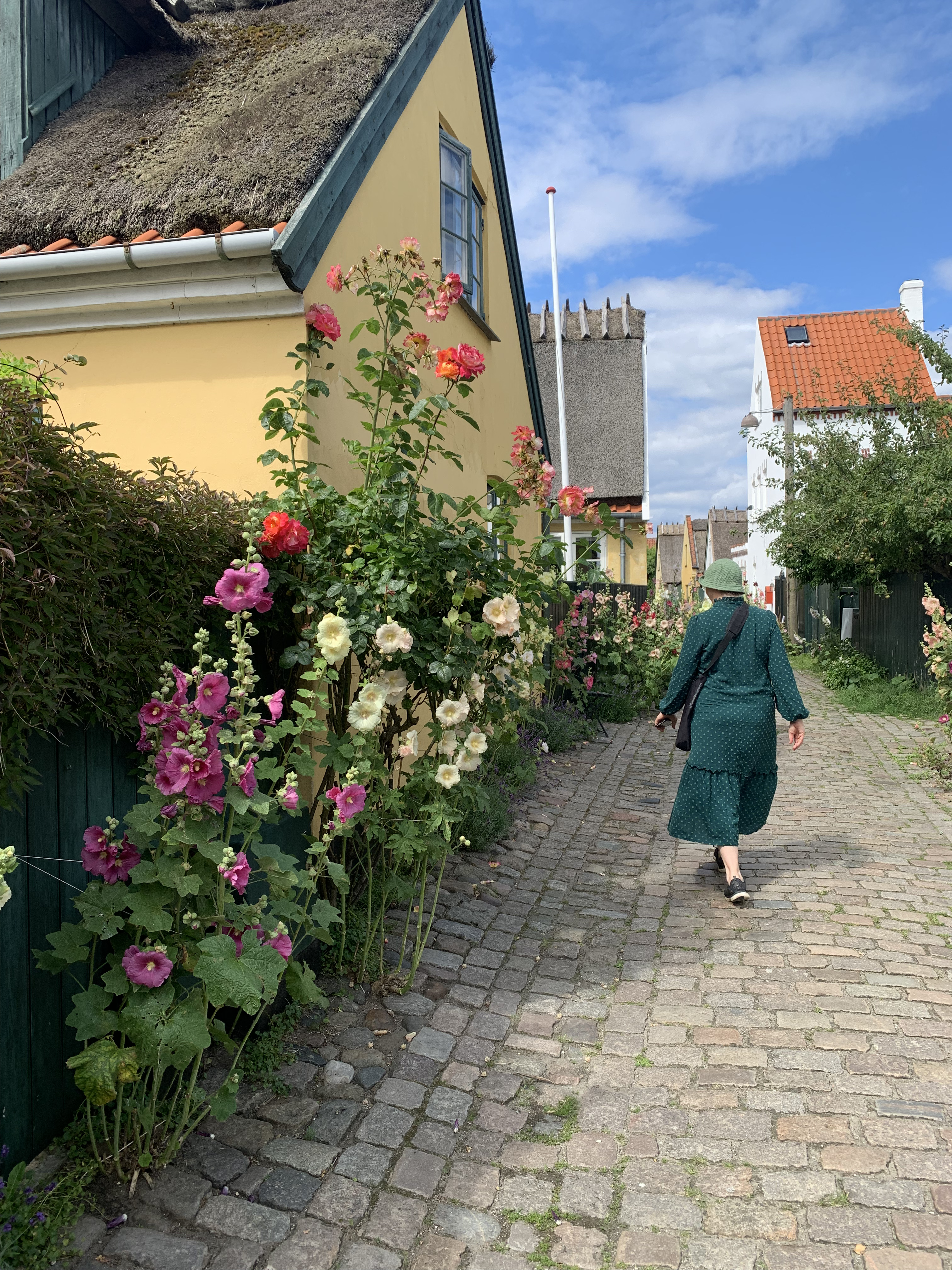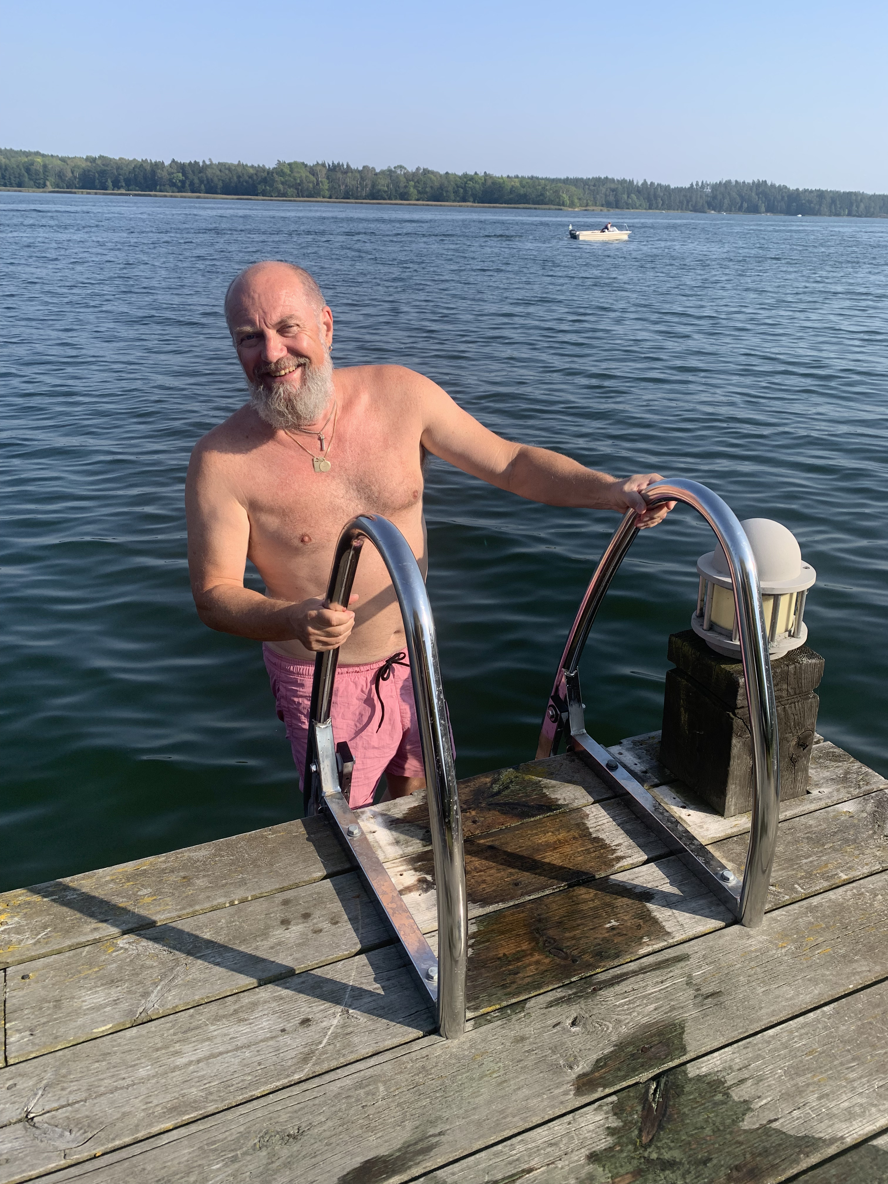 Badar, förstås, i det stormiga och mulna vädret. Skjutsar i ilfart Zeba till tåget. Hon ska till Roskilde. Har fått en biljett plus tältplats av sin storasyster till festivalen som hon inte har varit på sedan 2010, tror jag. Jag blir gräsänkling. Roar mig med allsång med Lasse Kronér på Tjolöholms slott, fikar med vänner, far till Helsingborg för ”Ett resande teater sällskap” med Eva Rydberg och passar på att hälsa på vännen Lars Aldman, som bor där sedan några år. Tar till Varberg med vännen P-O för att se Eldkvarn på sin sista turné… men ingenting stillar saknaden av Zeba. Så blir det äntligen bilen söderut för återförening. Vi har fått låna hennes kusins hus i Virum, strax norr om Lyngby, och ska vara kattvakter. Snart sitter vi på tåget till Malmö för att hälsa på gudsonen med käraste och dotter plus min bästis Anna, som också är gudsonens mor. Vi får några fina timmar ihop innan vi återvänder till Köpenhamn för en stadspromenad och slutligen huset i Virum. Zebas förra styrmor är fotvårdsspecialist. Lite omsorg om fötterna skadar inte. Inte umgänge heller. Jag går under tiden på loppisar och fyller garderoben. Senare får även jag fotvård. Det dröjer inte länge förrän Fanni och Gustav kommer ner. Det blir loppisar, smørrebrød, bilmuseum, körbärsplockning, bad och umgänge plus släktbesök. När de åkt far vi till Køge för att fira en systerdotter. Hamburgare på en amerikansk diner och bad. Zeba och jag tar en tur förbi Dragør, hygger oss där, hon köper stockrosor, jag något på en loppis, och jag badar i kallingarna. Sedan väntar middag hos forna styvmodern. Dagen efter tar vi bilen söderut mot Skovtårnet, det spektakulära utkikstornet i trä i Camp Adventure på södra Själland. Vi är tidigt där, efter att ha tagit ett morgondopp vid stranden i Skogdsborg, slipper trängsel. Det blir promenad i den vackra parken, fram till tornet och utsikten. Hänförande. Bredvid finns glampingmöjligheter, vi kikar in i ett av ”tälten”, och ett blomsterfält. Mycket för ögat. Vi far österut mot Stevsnforts kallakrigetmuseum, men är för sena. Stängningsdags har påbörjats. Det blir istället svindlande Stevns klint, med Højerup kirke balanserandes på randen till avgrunden. Nås av beskedet att Ulf Dageby hastigt har gått bort. Blir tagen. Skriver om honom på min blogg. Paul, Sara och Ivar kommer på besök. Hon ska till Rumänien på jobb, flyger från Kastrup, så det blir perfekt med ett stopp i Virum med umgänge. Återigen blir det loppisar, mat och bad. När jag lämnat Sara på Kastrup är det dags för Tobias ankomst. Zebas son ska förenas med familjen och vi möter upp på Hovebanegaarden, gör Köpenhamn och senare går vi på zoo. När Ivar och Paul är lämnade vi färjan i Helsingør gör resterande trion sightseeing i Köpenhamn, buss (usel) och båt (toppen). Dagen efter börjar med bad och senare Holteloppisen innan vi sveper ut på Reffen och Holmen för promenader och mat. Så dags för hemresa med en överlastad bil. Lite umgänge i Göteborg, omhändertagande av äpplen för mos och must och sedan iväg till Kramfors och Ådalen. Ja, ett nytt äventyr väntar där jag ska bo hos min gymnasiekamrat Grzegorz, känna av den historiska trakten, bad i Ångermanälven och se Tomas Ledins bygdespel. Det blir fina dagar med extra allt innan den långa tågresan hem. Nu väntar jul i juli, som traditionen bjuder. Alla ska med.