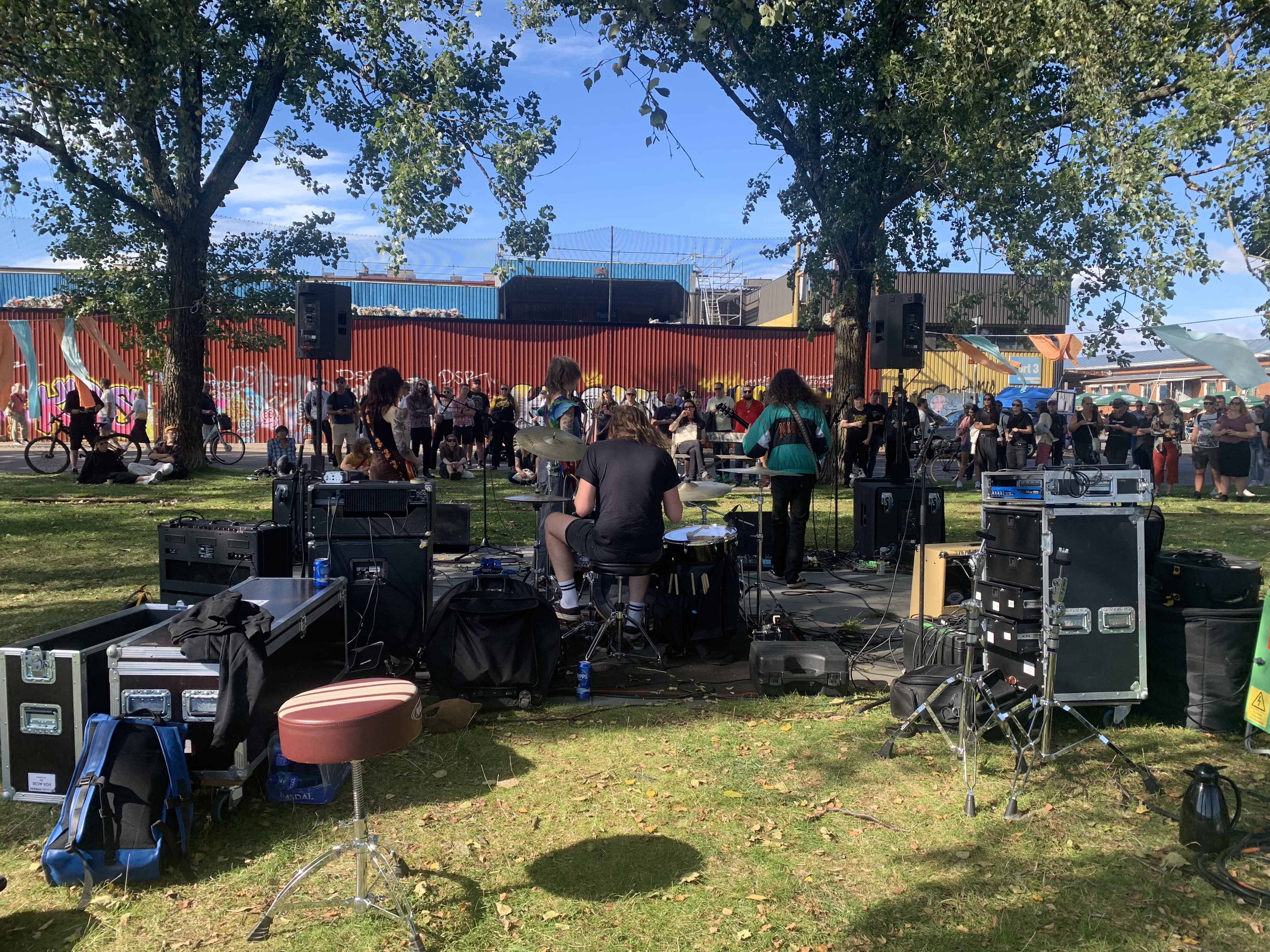 Resterna av Göteborgs kulturkalas hålls. Jag får chansen att 1 september se Sisters of Invention, Paperwing och Rasmus Blomberg. Tre lokala favoriter på ett bräde. Trevligt. Äter lunch med Paul, koreanskt mitt emot operan. Äter lunch med Gustav, mat köpt i Saluhallen men som äts utanför densamma. Far till huvudstaden för att närvara vid nypremiären av ”Änglagård”, som jag ännu inte sett. Blir positivt överraskad. Har sällskap av en god vän, forne radioprofilen Leif Hedegärd. Passar dagen efter på att träffa min faster, som fyllde 90 år i april, och som bonus var min yngsta kusin Maria med. En fin dag med mat, umgänge och bad. Hon är fantastisk, min faster. Kristallklar och alert. Avslutar kvällen med att gå på Wannadies på Mosebacketerrassen tillsammans med min vän och kollega Lars Lindström, som är min värd i Stockholm och tillika från bandets hemstad Wannadies. Hinner knappt hem förrän jag ska på hockeyläger i Bollnäs. Åker förbi min vän Ola i Skattungbyn för ett bad i Oreälven innan äventyret i Hälsingland väntar. Hinner hälsa på Melker, granne till Ola, får röda vinbär av honom och ett par vita rock’n’rollskor av Ola. Så hockey. Spelar bra med ett bra lag. Alltid stärkande inför säsongen. Hinner med bad i Varpen och några loppisar innan hockeyn är över och färden ned mot Göteborg väntar genom ett allt mer höstlikt Sverige. Badar, fikar med vänner, umgås med familj. Går på premiären av ”Gatsby”. Badar mer. Drar på mig en förkylning, som övergår i feber. Inte bra. Ligger däckad hela veckan inför Mikaels och Sabinas bröllop. Det som de unga tu jobbat så inför, med benägen hjälp av Zeba. Jag skulle också funnits till, men ligger nedbäddad. Missar också ”Orup bara”, premiären på Draken. Tar febernedsättande och kan medverka vid vigseln i Hagakyrkan, som blir en vacker och rörande tillställning. Hänger med till sittningen i Norska huset och är med några timmar innan febern tar över. Firar Zebas och min bröllopsdag i sängen, ensam. På måndagen är det Zebas tur att bli sjuk. I corona. Jag har testat negativt. Nu är jag frisk. Smiter iväg på Bokmässan, träffar författande vänner. Hör ifrån BBC, som vaknat ur radioskuggan, som meddelar att programmet ”Paddy and Chris: road tripping” nu ska sändas. Inser att vi i Sverige inte har någon chans att se den. Kollar med BBC om dels bilder från i våras, dels en länk till programmet. Radiotystnaden slås på igen.