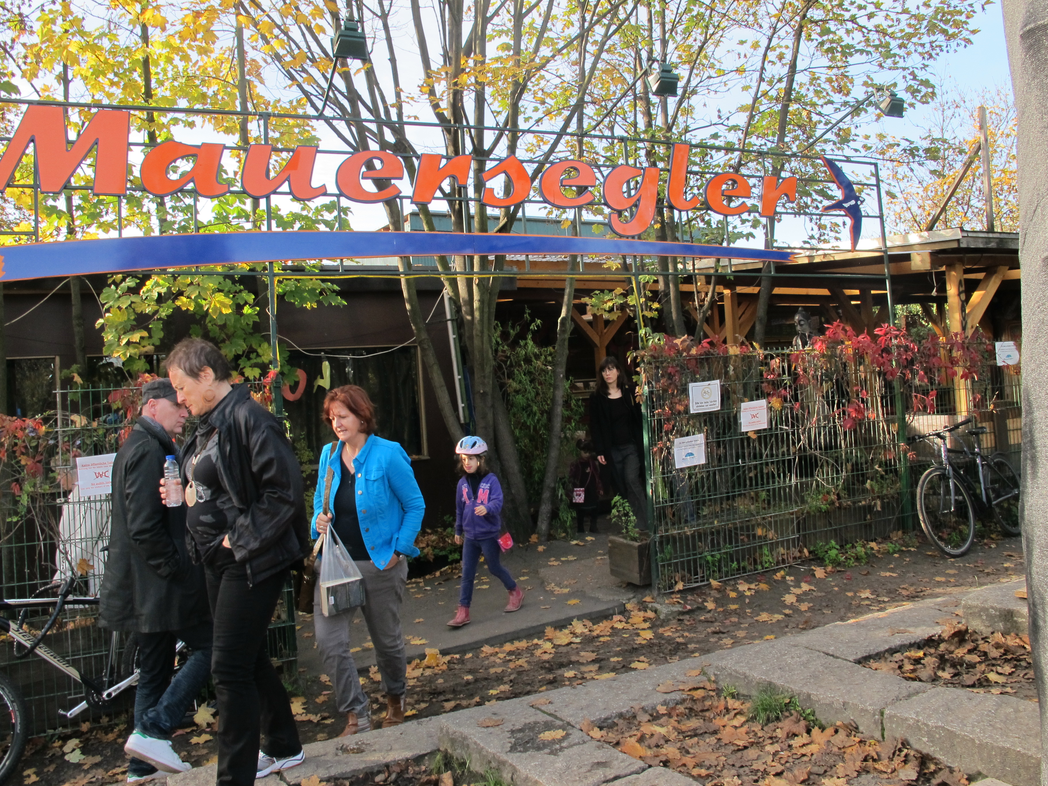Vi promenerar i det vackra novembervädret, som snarare andas september än murrig höst. Vi går upp mot Friedrichstrasse, viker av på Oranienburgerstrasse, för där har P dy varit på något slags konstnärskollektivistisk gård med sprakande människor som hämtade från ”Mad Max” och med klotter, graffiti och muralmålningar. De sistnämnda är de rester som vi hittar. Kvarteret har stängt i väntan på något nytt, något föränderligt.