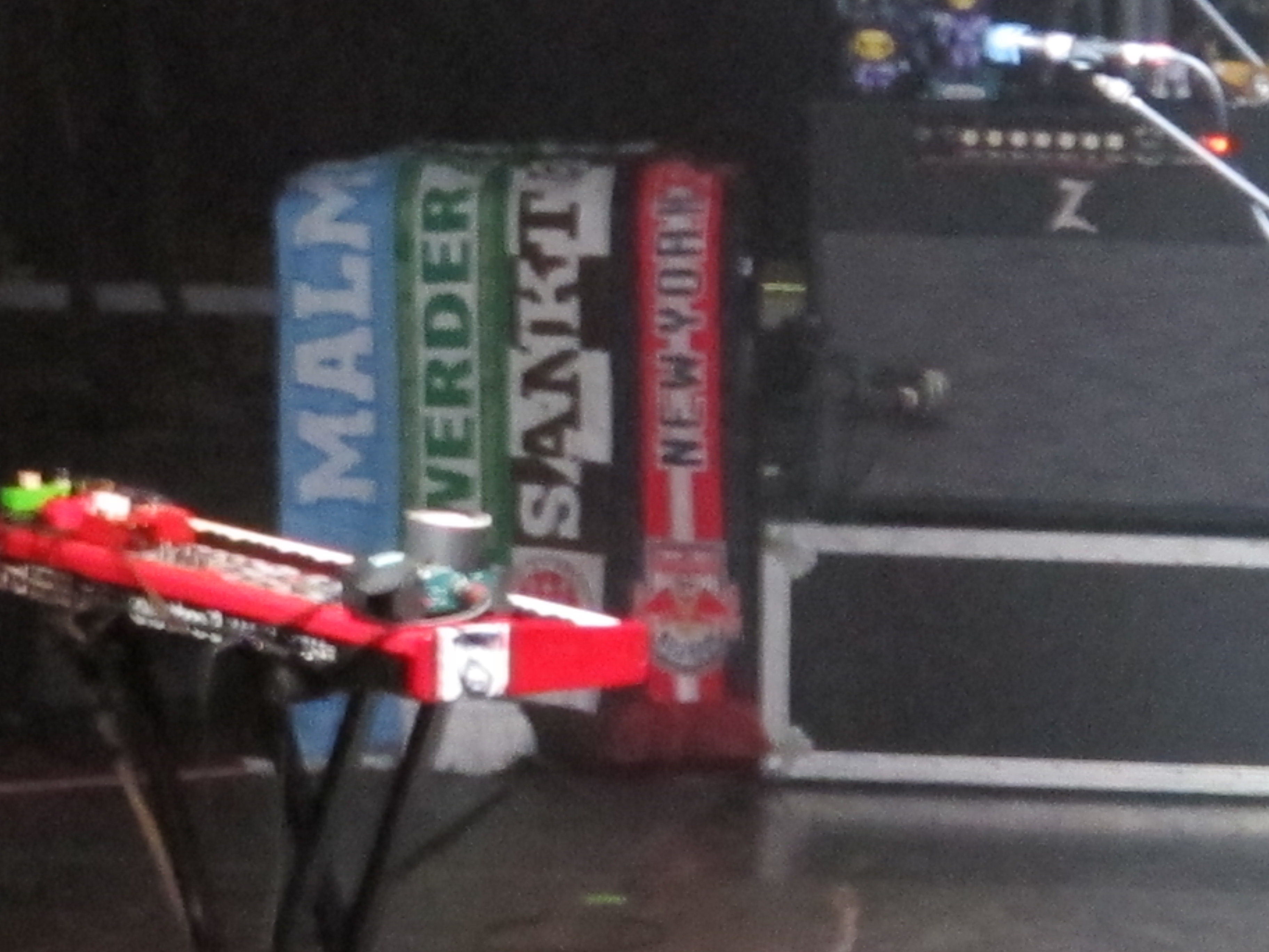 Gitarristen Alex Rosamilia har supporterhalsdukar hängande över sin ena stärkare, där valet av en MFF-halsduk överraskar oss rejält.