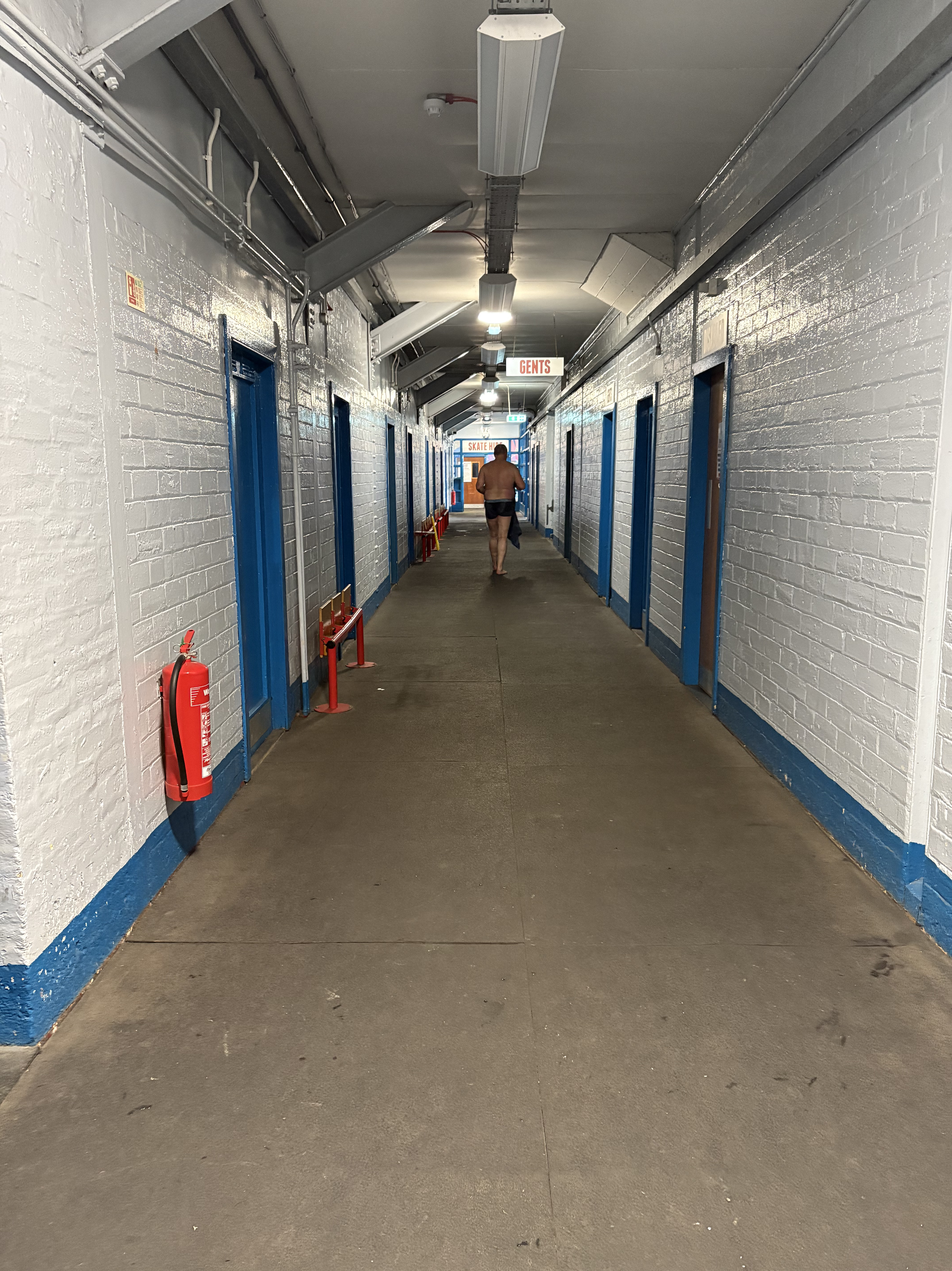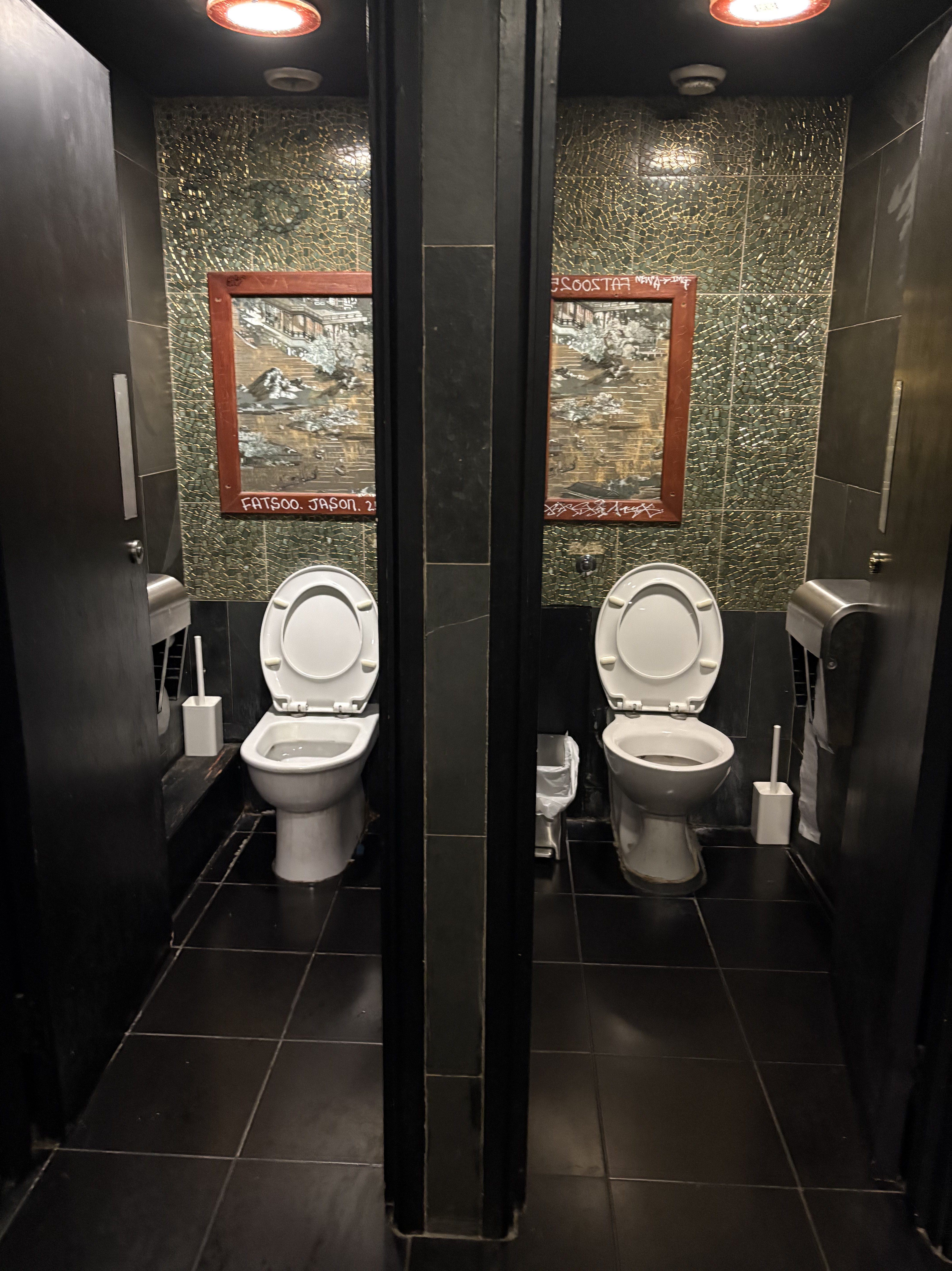Vi är förbryllade. Var ska Lavender spela? Går tillbaka till vakten, som lugnt förklarar att jämte damernas finns en trappa ner och där ska konserten hållas.