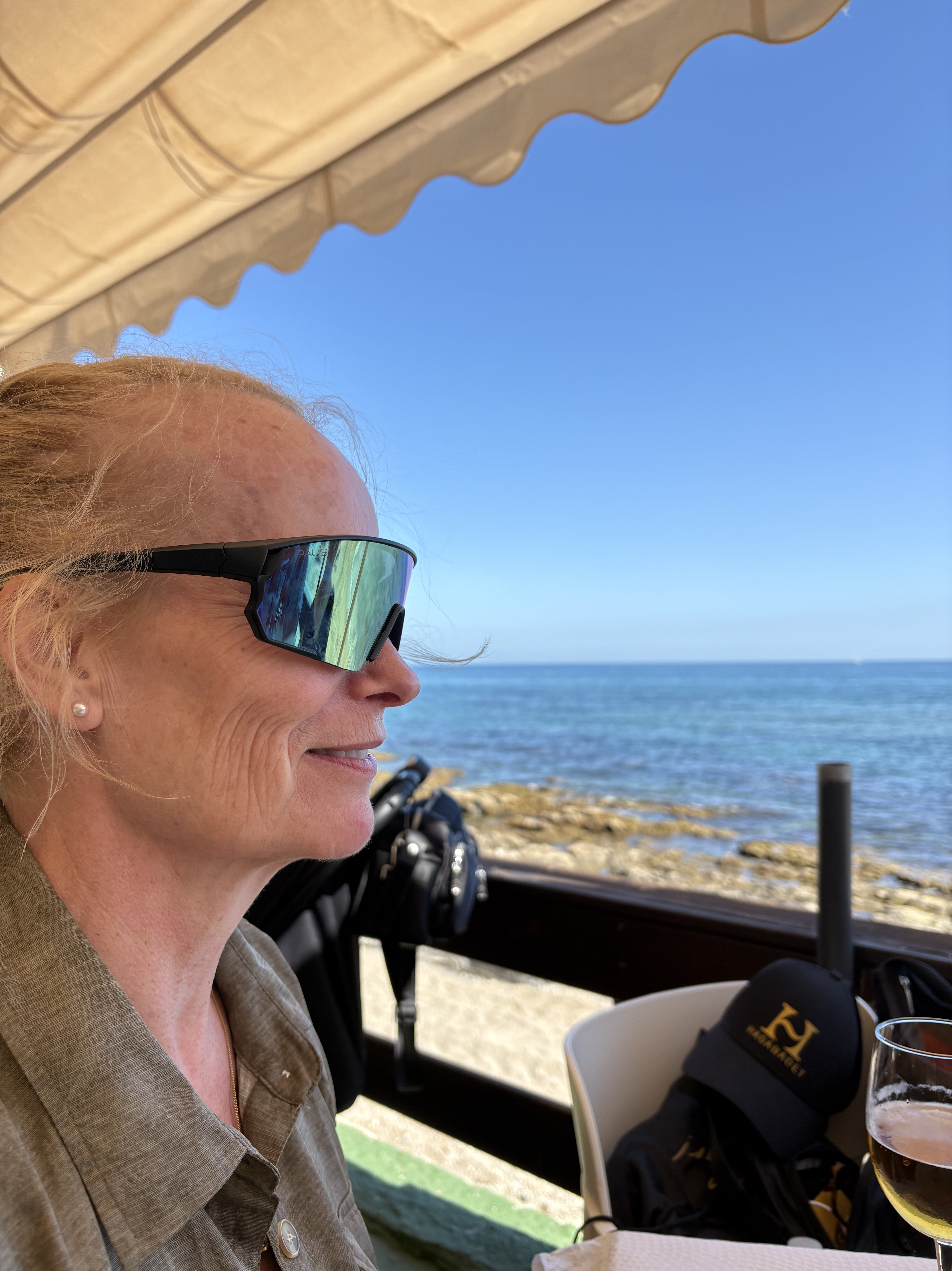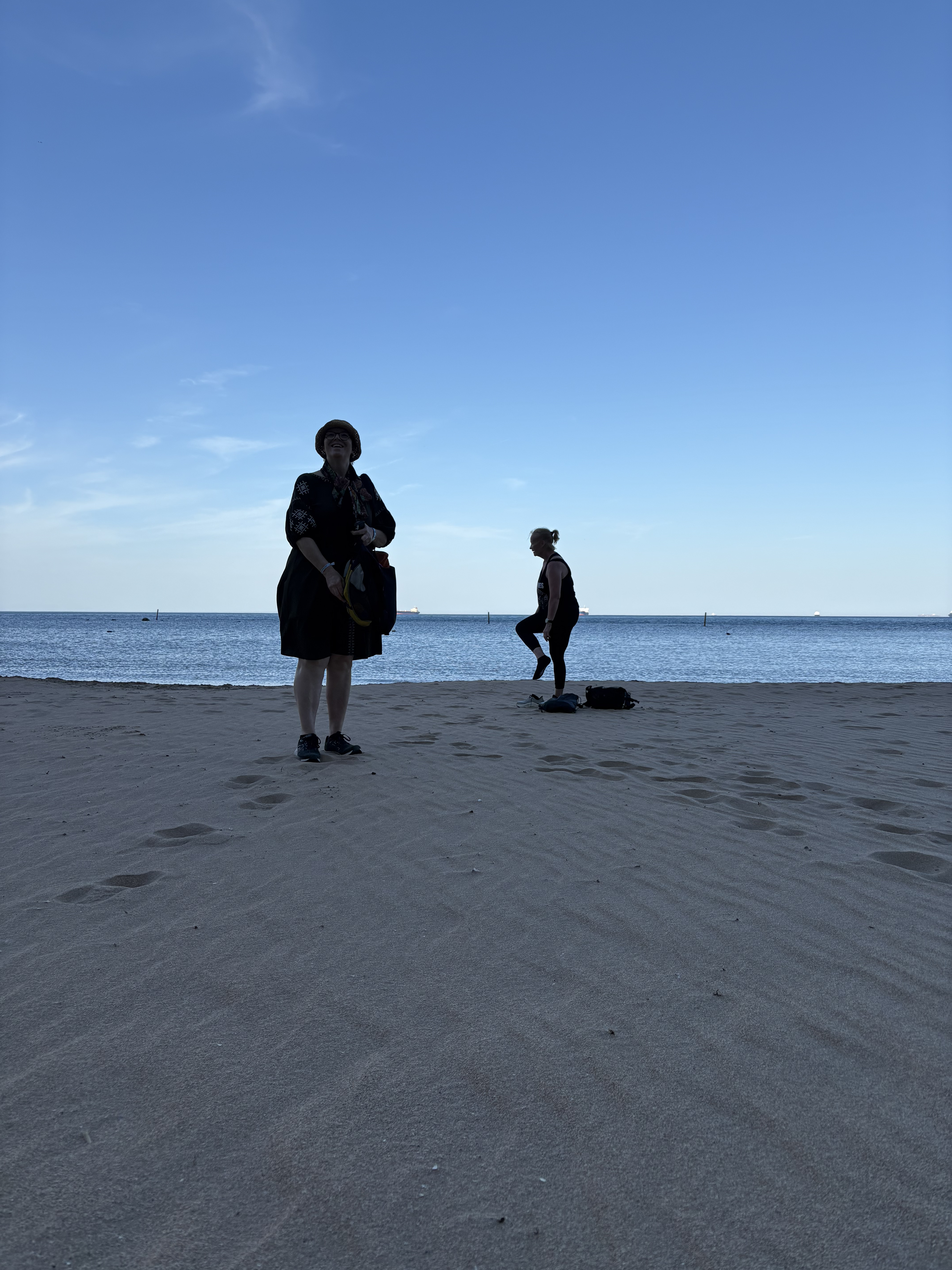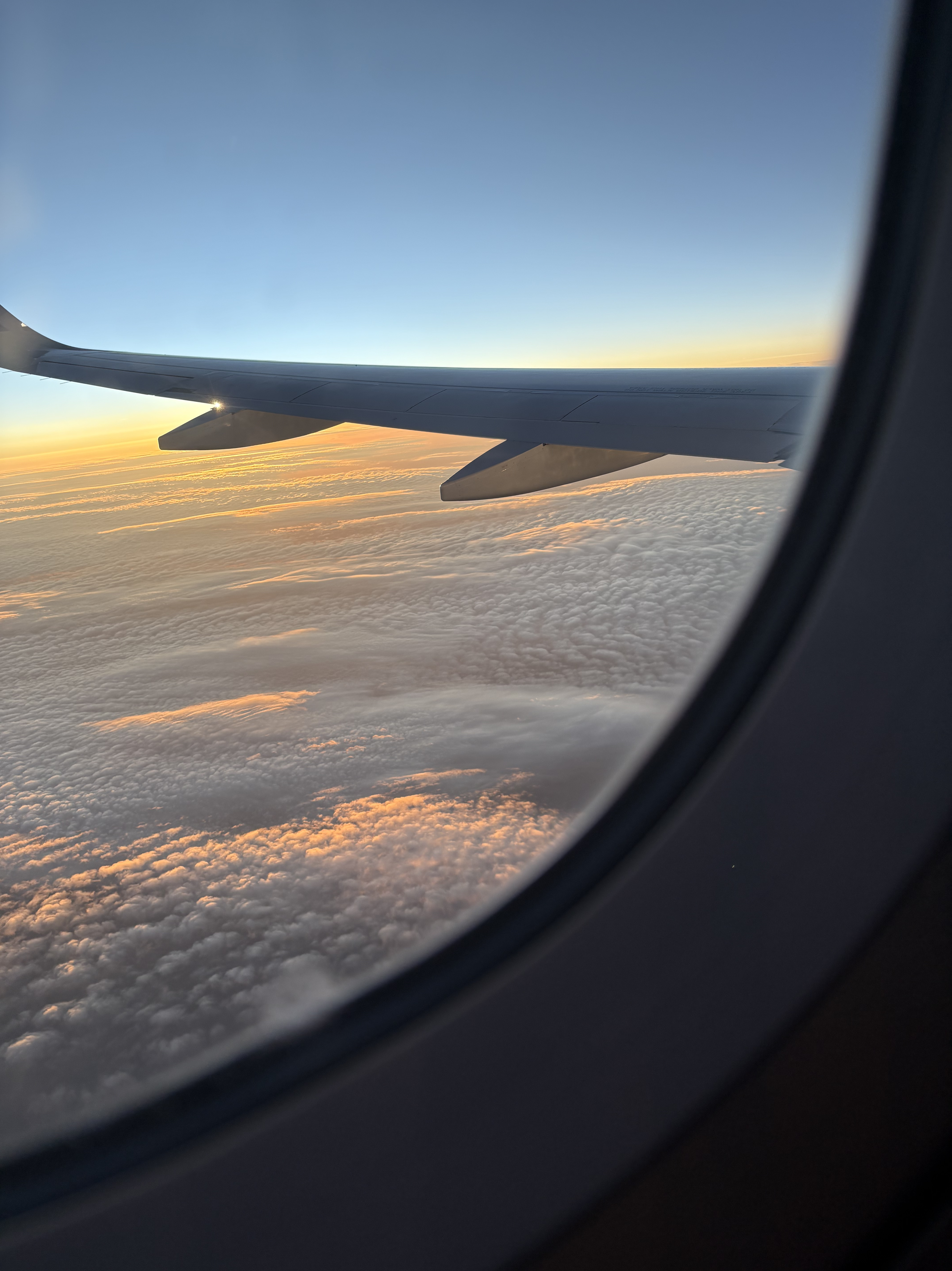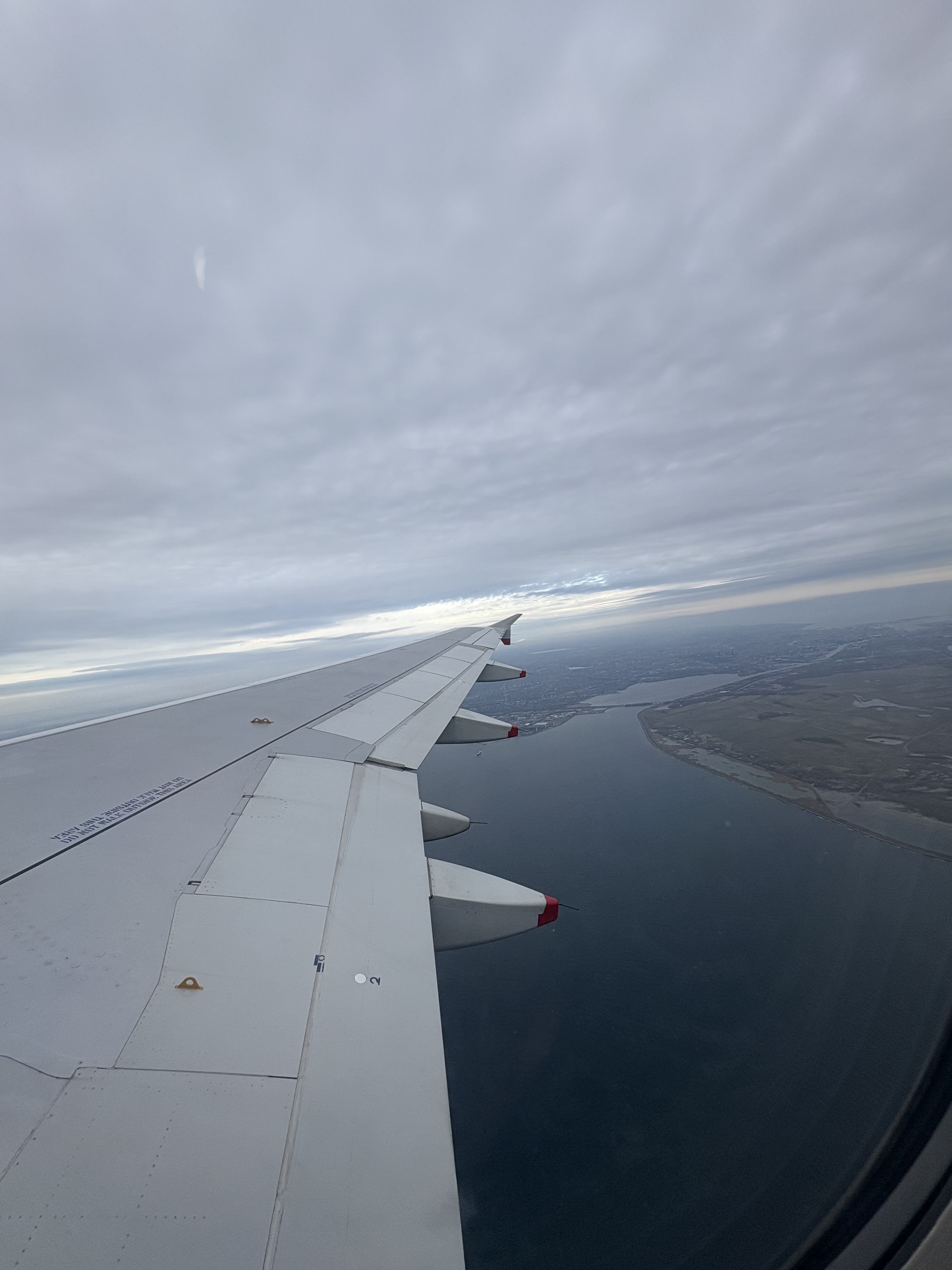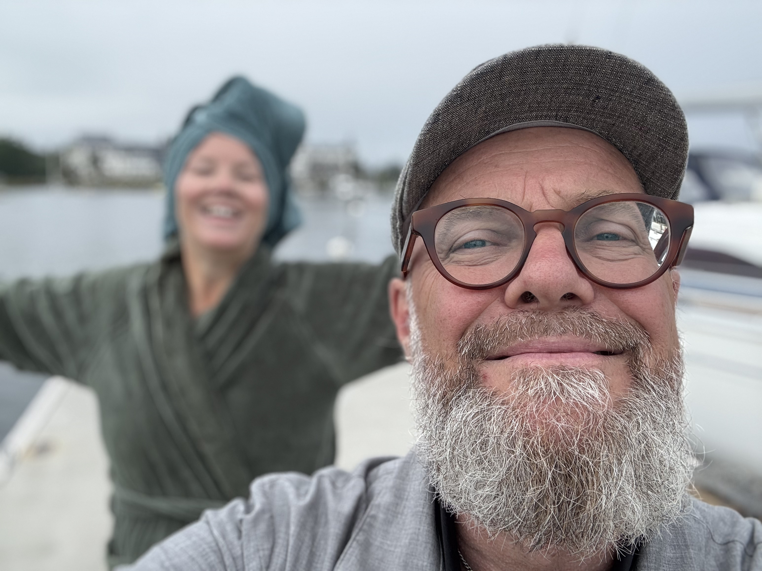Checkar ut och mot Kastrup. Jag har fått övningar för mitt knä av fysioterapeuten och ett råd om att ha på mitt knäskydd – ett Baurefeind Genutrain som jag haft för att stärka vid en tidigare ledbandsskada. Ett brett gummiband är också nedpackat. Fortfarande ska jag ta det försiktigt med promenerande. Men säg det till flygplatserna. Vi går och går, checkar in bagage och går och går för att komma till säkerhetskontrollen och går och går för att komma till gaten. Innan dess går och går vi runt för att fördriva tid. Vi bestämmer oss för att äta för att inte helt hamna ur fas. Det blir den här gången i Kastrups Tivoli Food Hall, smørrebrød igen och en øl. Vi vänder oss till ett kafé runt hörnet för en kopp kaffe och möjligheten att äta upp de goda wienerbröden från igår. Just är står delar av Roxette, så det blir ett trevligt samtal innan take off. Z dokumenterar, förstås.